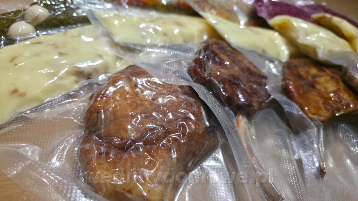 Pakowanie próżniowe metodą wac powoduje wyssanie powietrza z opakowań . Skutkiem tego jest obkórczenie opakowania powodujące ściśniecie produktu, co powoduje wyciskanie z produktu materii płynnych . Ilość wyciśnietego płynu zależna jest od ilości wody w produkcie jak również od wielkości próżni jaką wytwarzają pakowarki. Wielkość próżni jak również ilość wody w produkcie wpływają na trwałość zamkniętego produktu . By produkt był bardziej trwały dozowanie wody ograniczyć , zamykać wychłodzony temp . 4 -6 st C (tej drugiej wartości nie przekraczać. ) nie zamykać mokrych lub wilgotnych asortymentów. Produkty zamykać co najmniej 24 godz po obróbce cieplnej i wychłodzeniu . Zwłoka ta wpłynie na zmniejszenie ilości azotynów w produktach użytych do peklowania. Wychłodzone produkty wyjęte z lodówki w cieplych waruhkach rosieją , dlatego wyjmujemy je malymi partiami i od razu zamykamy, jak potrzeba to wycieramy do sucha.