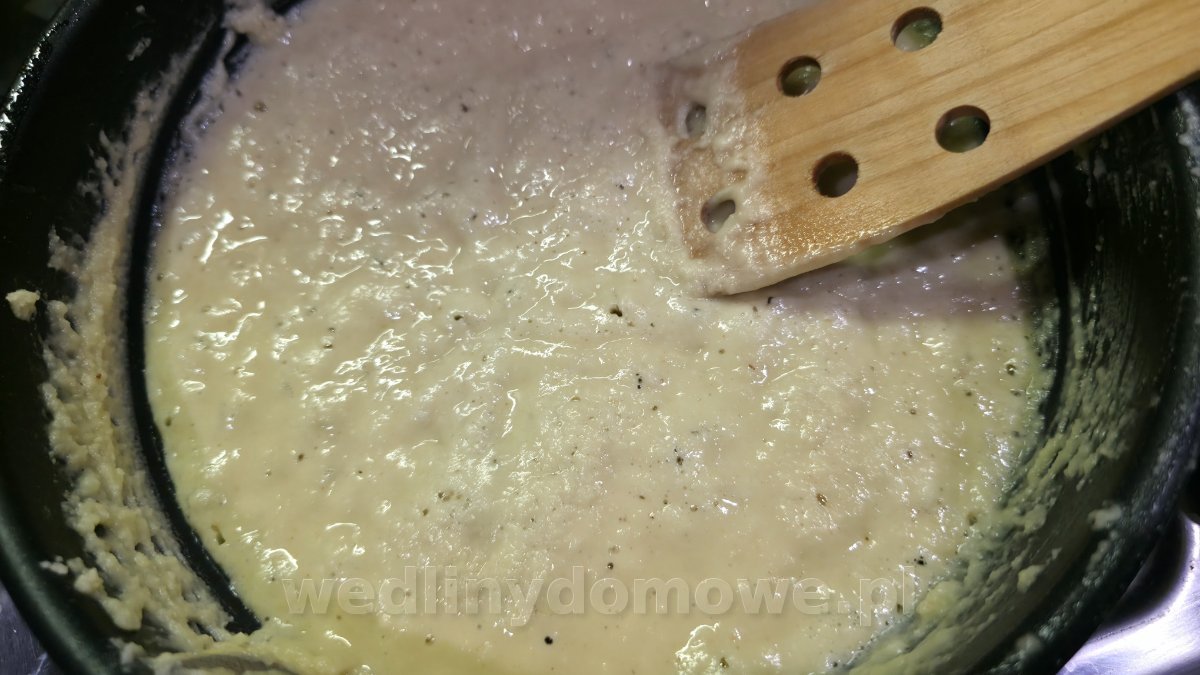 Po wydobycie się wszystkich aromatów z poprzednich przyprawy dochodzimy do kulminacja i przyprawiamy wg.własnego smaku. -grubo świeżo mielony czarnym pieprzem(klasyk) oraz - solą( nie pomylić z tak tu na forum wszech obecną Peklosolą) podczas próbowania pamiętamy o zasadzie: Nie wkładamy do potrawy łyżki którą próbowaliśmy tą potrawę bez ponownego jej umycia Gotujemy dalej
