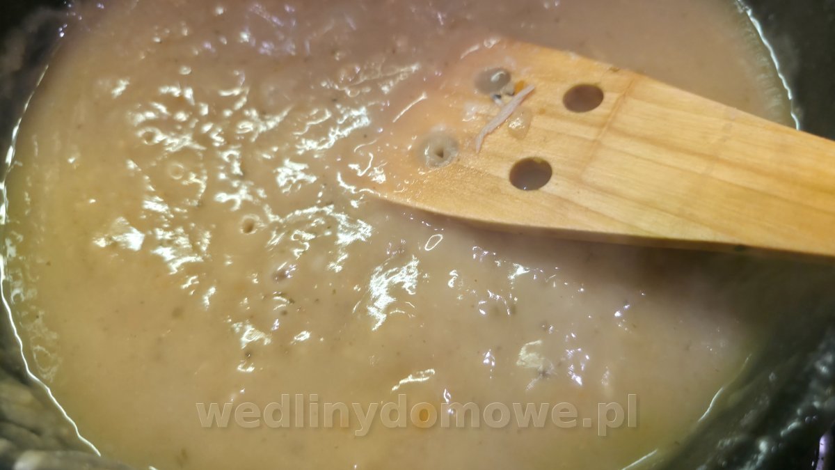 Kiedy warzywka zmiękną to nadchodzi wstępna kulminacja smaków czyli. Przyprawy -dodajemy liście laurowe -ziele angielskie -majeranek.Dużo. Tak dużo przetartego w dłoniach majeranku że jeżeli mamy kota w domu to zacznie patrzeć podejrzanie. Całość mieszamy,przykrywamy garnek pokrywką aby nie stracić wydobywającego się aromatu z przypraw i gotujemy nadal.