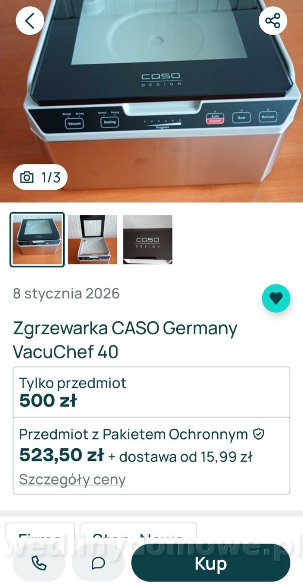 Nowa pakowarka w dobrej cenie. https://www.olx.pl/d/oferta/zgrzewarka-caso-germany-vacuchef-40-CID99-ID18BjX6.html
