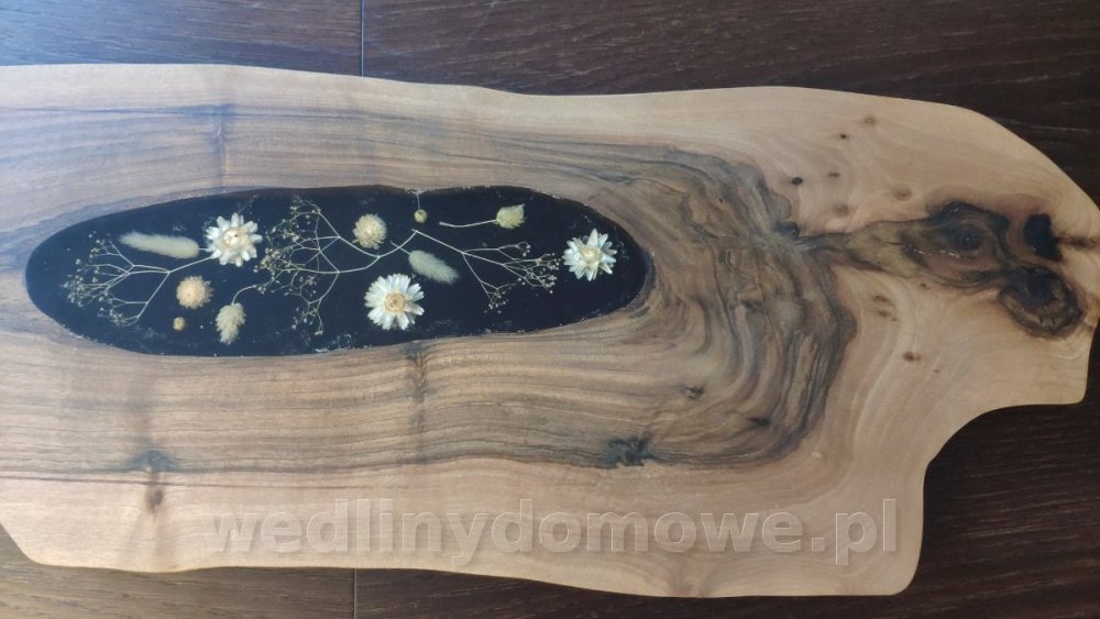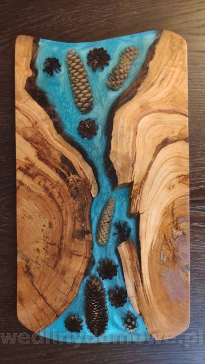 W pracy z drewnem jestem samouk nie miałem nikogo kto się zna na tym. Wiedzę czerpię z różnych grup o drewnie i żywicy. Do tej pory robiłem biżuterie, deski do krojenia i tace do podawania, zegary, miski. W planach stoliki kawowe lampy i inne rzeczy. Jeszcze kilka zdjęć z moich realizacji. Dobry pomysł z działem z wyrobami.