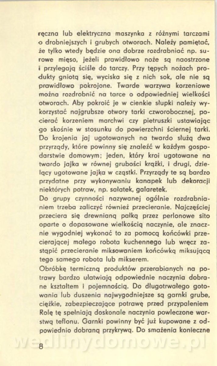 Obróbka cieplna i punkt krytyczny w produkcji parówek W procesie wytwarzania wędlin drobnorozdrobnionych, takich jak parówki, obróbka cieplna to jeden z najważniejszych etapów całego procesu. To właśnie wtedy produkt zostaje utrwalony – mięso zmienia strukturę, nabiera właściwej barwy i smaku, a przede wszystkim niszczone są bakterie chorobotwórcze, które mogłyby stanowić zagrożenie dla zdrowia. Parówki zazwyczaj parzy się w temperaturze 75–78°C, aż w jądrze najgrubszego wyrobu osiągnie się co najmniej 72°C. Ten moment to tzw. punkt krytyczny (CCP) – najważniejszy etap z punktu widzenia bezpieczeństwa żywności. Zbyt niska temperatura lub zbyt krótki czas parzenia może sprawić, że część drobnoustrojów przetrwa (np. Listeria, Salmonella), co w efekcie prowadzi do psucia się wędliny lub nawet zatrucia pokarmowego. Z kolei zbyt mocna obróbka pogarsza jakość – parówki mogą się rozpadać, pękać, tracić soczystość i smak. Dlatego podczas obróbki cieplnej należy: kontrolować temperaturę wody/parzelni oraz temperaturę wewnątrz parówki, utrzymywać temperaturę wewnętrzną min. 72°C przez 10 minut po zakończeniu parzenia szybko schłodzić wyroby – najpierw pod bieżącą wodą, potem w chłodnym miejscu, aż osiągną poniżej 10°C w ciągu 2 godzin. Bezpieczeństwo w domowej produkcji wędlin drobnorozdrobnionych Warto pamiętać, że nawet przy produkcji amatorskiej czy domowej obowiązują te same zasady, co w profesjonalnych zakładach. Nie chodzi tu jedynie o przestrzeganie norm, ale przede wszystkim o dbałość o zdrowie naszych bliskich – dzieci, wnuków czy znajomych, którym często z dumą przekazujemy własne wyroby. Mięso oraz wyroby drobnorozdrobnione, takie jak parówki czy kiełbasy, są szczególnie podatne na rozwój drobnoustrojów. Dlatego prawidłowe parzenie i szybkie schładzanie produktu to nie przesada, lecz podstawowy warunek bezpieczeństwa. Domowa produkcja może być w pełni bezpieczna i smaczna, jeśli zachowamy kilka prostych, ale kluczowych zasad. Trzeba jednak mieć świadomość, że w warunkach amatorskich pracujemy często w bardziej prymitywnych warunkach, wykorzystując sprzęt o ograniczonej precyzji – termometry kuchenne, małe parzelniki czy domowe chłodziarki. Do tego dochodzi niewystarczająca wiedza technologiczna, co w połączeniu może prowadzić do poważnych błędów. Zbyt niska temperatura parzenia, nieodpowiednie chłodzenie, brak higieny lub przechowywanie w zbyt wysokiej temperaturze to czynniki, które mogą skutkować rozwojem bakterii chorobotwórczych i zagrożeniem zdrowia. Dlatego każdy domowy wędliniarz powinien traktować zasady higieny i obróbki cieplnej z taką samą powagą, jak profesjonaliści. Prosty sprzęt nie zwalnia z dokładności – wystarczy dbałość o czystość, kontrola temperatury i cierpliwość, by uzyskać wyrób bezpieczny, trwały i naprawdę smaczny.