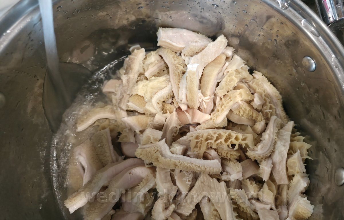 Przygotowanie: Oczyszczam flaki z niepożądanych pozostałości następnie kroimy na zadawalającą nas wielkość wrzucamy do gara i -płuczemy kilkukrotnie,parzymy,płuczemy, znów...ogólnie bawimy się w SPA dla wnętrzności.Flaki po takim traktowaniu mają być tak czyste że mogłyby prowadzić program,,Perfekcyjna pani domu-wersja rzeźnicza". cdn.