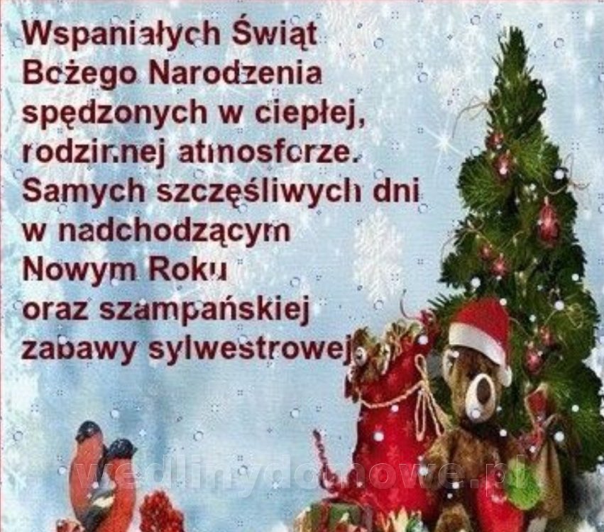 Niech te Święta Bożego Narodzenia przyniosą Wam chwile pełne ciepła, rodzinnego zacisza i niezapomnianych wspomnień. Życzę Wam, aby każdy dzień Nowego Roku był krokiem do spełnienia wszelkich marzeń. Jola i Mariusz