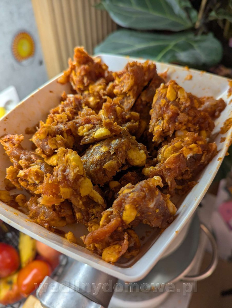 Dzień dobry, to mój pierwszy post, więc chciałbym wszystkich serdecznie powitać! Robi mi się chorizo wykonane zgodnie z tym przepisem(dzięki redzed), natomiast popełniłem jakiś błąd i chciałbym zapytać o możliwą przyczynę. Zmiany w stosunku do przepisu: 27g/kg peklosoli, kultury shi59, cukier 2,5g/kg i wino nie młode(2020) czerwone wytrawne w ilości by zrobić papkę z papryki. Mielone mięso podmrożone z zamrożoną słoniną na maszynce jak zelmer 5 siatka najgrubsza(takie trójkąty), dodane składniki, wymieszane szybko, do worka foliowego i do lodówki. Następnego dnia napełniane tą samą maszynką w jelita wiankowe i fermentowane 48 godzin(21-23stC, 85-95RH). Teraz problem: Zmielone mięso po wyjęciu z lodówki było już sklejone(może nie piłeczka pingpongowa, ale wyraźnie). Po ponownym mieleniu, napełnieniu i fermentacji mięso się juz nie skleiło ponownie. Jaka może być przyczyna takiego stanu i jakie to niesie konsekwencje?
