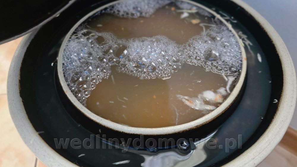 Z załączonego zdjęcia widać kożuch na powierzchni kapusty, prawdopodobnie podczas kiszenia (fermentacji). Taki kożuch to najprawdopodobniej pleśń kożuchowa (lub drożdże kożuchujące), która powstaje w warunkach tlenowych. Nie jest to zazwyczaj pleśń szkodliwa (jak te kolorowe, puchate), ale jest to sygnał, że: Kapusta nie jest wystarczająco przykryta płynem (sokiem). Kiszenie to proces beztlenowy, a obecność powietrza na powierzchni sprzyja rozwojowi tej mikroflory. Temperatura może być zbyt wysoka, co przyspiesza ich rozwój. 🛠️ Co można zrobić: Usuń ostrożnie kożuch: Zbieramy go łyżką lub czystą szmatką/ręcznikiem papierowym, starając się nie zamieszać go z resztą kapusty. Dobij kapustę: Postaraj się docisnąć kapustę, aby cała była zanurzona pod powierzchnią soku. Możesz użyć kamienia lub specjalnego obciążnika do kiszenia. To odetnie dostęp powietrza. Utrzymuj niższą temperaturę: Jeśli to możliwe, przenieś kapustę w chłodniejsze miejsce, aby spowolnić proces fermentacji i ewentualny rozwój niepożądanych mikroorganizmów. Jeśli sama kapusta pod spodem pachnie i smakuje dobrze (kwaśno, nie zgniło, nie ma obcych, nieprzyjemnych zapachów), jest po usunięciu kożucha i dalszym dbaniu o jej zanurzenie. Czy chciałbyś, abym poszukał informacji o najlepszych metodach przechowywania kiszonej kapusty, aby uniknąć powstawania kożucha? kKuczem do udanego kiszenia jest brak dostępu tlenu i higiena. Oto najważniejsze zasady, które pomogą uniknąć powstawania kożucha fermentacyjnego lub pleśni na kiszonej kapuście: 1. Pełne zanurzenie w soku (solance): To jest najważniejsza zasada. Kapusta musi być całkowicie przykryta sokiem, ponieważ tlen na powierzchni sprzyja rozwojowi drożdży kożuchujących i pleśni. Dobijanie: Regularnie dociskaj kapustę, zwłaszcza na początku fermentacji, aby wydobyć jak najwięcej soku i upewnić się, że cała kapusta jest pod płynem. Obciążenie: Używać obciążnika (kamień, talerzyk, słoik z wodą), który utrzyma kapustę w całości pod powierzchnią płynu. Jeśli soku jest za mało, można dolać 2% solanki (20 g soli niejodowanej na 1 litr przegotowanej, ostudzonej wody). 2. Higiena i czystość: Wyparzanie: Używać tylko czystych i wyparzonych naczyń (słoików, beczek, narzędzi). Resztki brudu lub pleśni mogą stać się zarzewiem rozwoju niepożądanych mikroorganizmów. Używać świeżych i nieuszkodzonych warzyw. 3. Optymalna temperatura: Fermentacja początkowa: Przez pierwsze ok. 10 dni utrzymać temperaturę w zakresie 18–22°C (temperatura pokojowa). W tym czasie trwa intensywna fermentacja mlekowa. Przechowywanie: Po zakończeniu intensywnej fermentacji (kiedy kapusta przestanie intensywnie bąbelkować), przenieś ją w chłodne i zacienione miejsce, np. do piwnicy lub spiżarni, gdzie temperatura wynosi idealnie około 6°C. Niższa temperatura spowalnia rozwój drożdży i pleśni. 4. Przepuszczanie gazów (odgazowanie): W trakcie fermentacji zbierają się gazy. Należy regularnie przebijać kapustę czystym i długim narzędziem (np. drewnianym szpikulcem) aż do dna, aby umożliwić ujście gazów. To zapobiega wypchnięciu kapusty ponad poziom soku. 💡 Ważna uwaga na przyszłość: Kożuch fermentacyjny a pleśń Jak można zauważyć na zdjęciu, jest to kożuch fermentacyjny (efekt pracy drożdży kożuchujących w obecności tlenu), a nie typowa szkodliwa pleśń. -