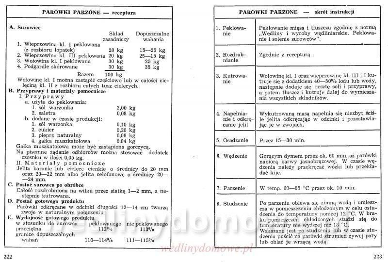 Czyżby nikt nie przeczytał procesu produkcyjnego parówek cieszyńskich? Przed parzeniem jest wędzenie ... w dymie gorącym. 1.W tamtych czasach, w wędzarni nie stosowano wentylatorów mieszających. 2.Utrzymanie równego rozmieszczenia temperatury w wędzarni było kłopotliwe. 3.Parówki cieszyńskie były wyrobem regionalnym. Czyżby wcześniejsi mistrzowie w masarstwie mieli kłopoty w prawidłowym emulgowaniem składników, ratując się niższą temp. obróbki cieplnej? Tym samym przyzwyczajając klientów do określonej konsystencji wyrobu.