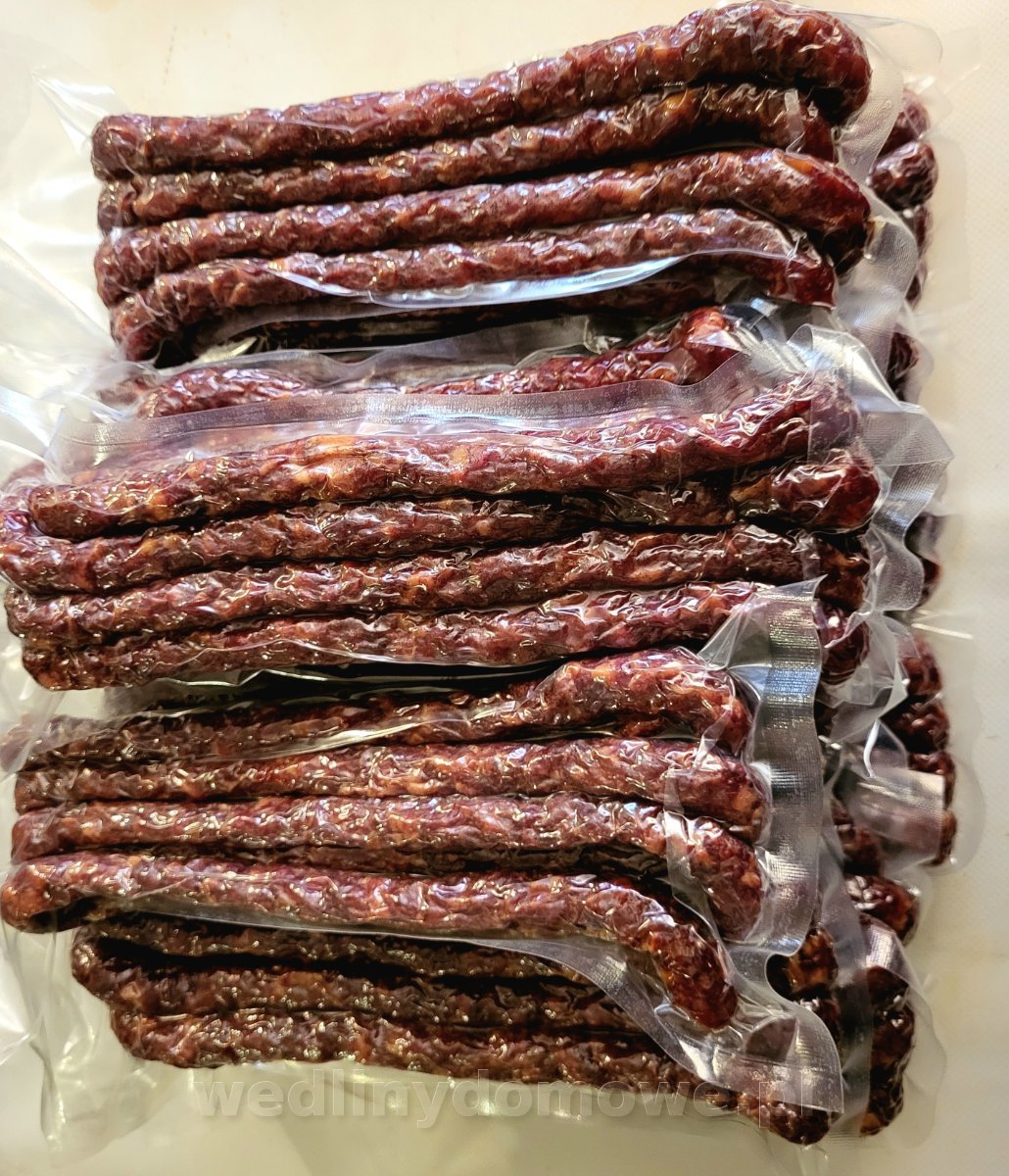 Pomarszczone tak mocno jelito pokazuje bardzo mocne działanie temp. na strukturę kiełbasy. Takie mocne obsuszenie naturalnie uzyskasz po około 14 dniach w naturalnym suszeniu w "warunkach chłodniczych" które nie "zniszczą" aż tak tekstury. Dziurkami się nie przejmuj bo w warunkach domowych nie mamy możliwość odpowietrzenia farszu. Takie minimalne dziurki nie mają wpływu na jakość. Wreszcie ta niszczeszczęsna słonina spowodowała "smalcowatość" (białka nie usieciowały się poprawnie przez co tłuszcz miękki jest niezwiązany/mazisty). Myślę, że temp. 90C będzie wystarczająca.