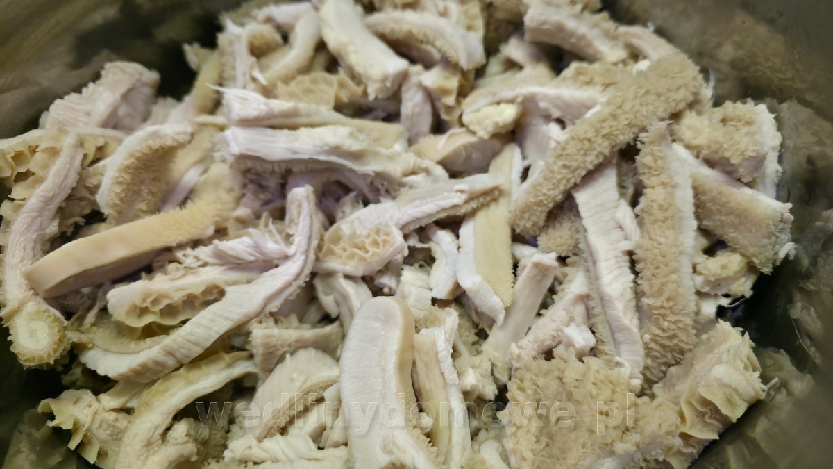 Gotowanie Flaki przekładamy do odpowiedniej wielkości garnka,zalewamy zimną wodą i po zagotowaniu pilnujemy aby tylko pykały tak jak niedzielny rosół który gotujemy kilka godz.Gotujemy tak długo( oj długo) aż zmiękną I przestaną przypominać gumowy dywanik malucha. cdn.