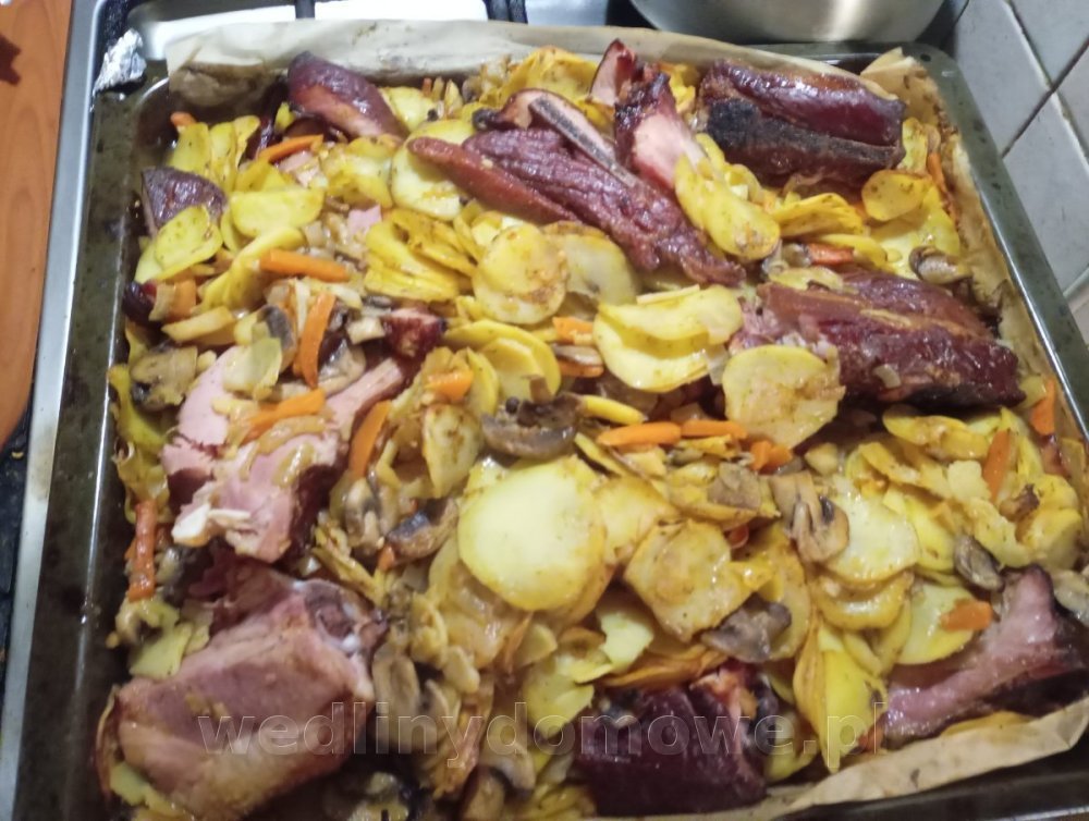 Na niedzielny obiad zrobiliśmy zapiekankę z tego go widać na zdjęciach. Wyszedł fajny bukiet smaku. Użyliśmy gotowych mieszanek przypraw do ziemniaków i żeberek
