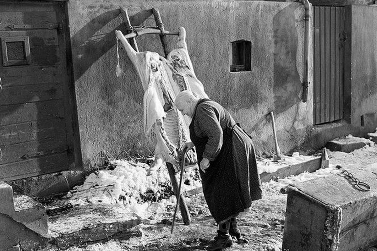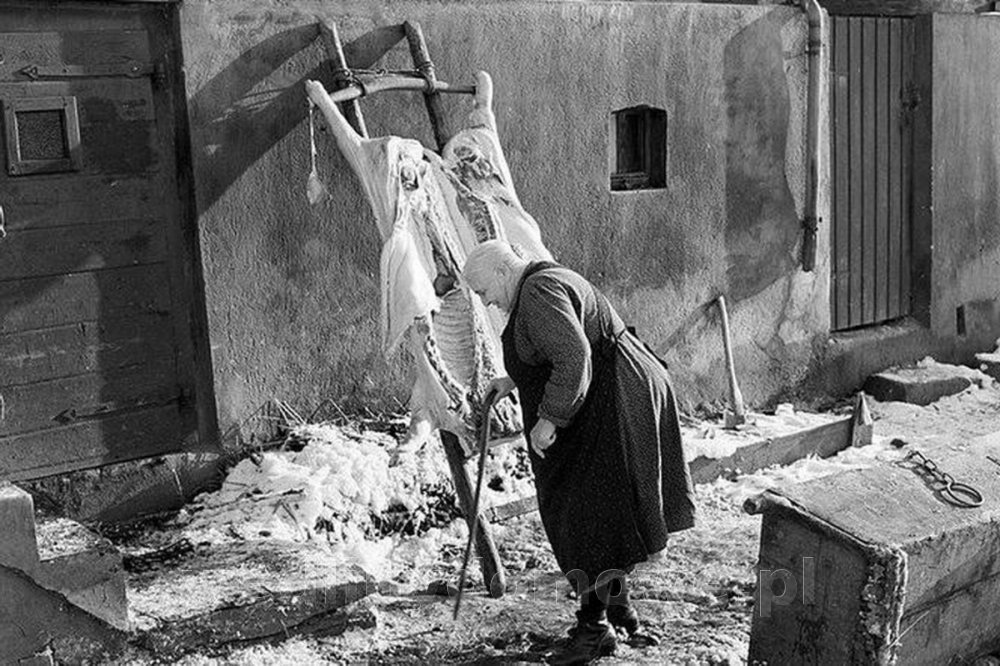 Moje wielkie kociewskie świniobicie Dziś płacimy ciężkie pieniądze za coś, co na Kociewiu – i nie tylko tam – po prostu na wsi, było dostępne na co dzień: chleb na zakwasie, twaróg, mleko prosto od krowy, wędliny i kiełbasy. Ale wędliny i kiełbasy na krzakach nie rosły. Żeby mieć i zjeść, trzeba było zabić świnię. I dziś właśnie o tym. O świniobiciu na Kociewiu. Pani Zosia opowiada O opowieść na ten temat poprosiliśmy panią Zosię, rodowitą Kociewiankę, dawną mieszkankę wsi Lipia Góra leżącej w gminie Morzeszczyn na terenie powiatu tczewskiego. Pani Zosia wcześniej opowiadała nam o swoim weselu. Pierwsze świniobicie w roku mój tata robił przed Wielkanocą. Wiadomo, święta, na stole musiało być – wspomina pani Zosia – potem drugie świniobicie było przed żniwami, bo w domu wtedy było dużo ludzi do pracy i trzeba było ich nakarmić. A potem przed Gwiazdką. Wyjątki były wtedy, gdy w domu zapowiadało się na jakieś wesele, chrzest, czy przyjęciny(zwyczajowa nazwa I Komunii Świętej), wtedy też się świnię zabijało. Zazwyczaj mój tata zabijał świnię sam, a na przykład przed weselami w naszej rodzinie, ściągał rzeźnika i oprócz świni, zabijany był jeszcze cielak. Mięso mieszano, żeby kiełbasy były delikatniejsze. A że roboty było przy świniobiciu dużo, cała rodzina pracowała. Nieważne, dziecko czy dorosły. I na nikim to wrażenia specjalnego nie robiło. Trzeba było zrobić. Trochę techniki – dzisiejszy człowiek dziki Szło szybko. Życie wieprzka kończył cios obuchem siekiery w łeb. Czasem dwa – pani Zosia wzrusza ramionami – Nieważne czy zabijał rzeźnik, czy mój tata. Zwierzę, nie mogło cierpieć. I nie cierpiało. Nie to co w dzisiejszych ubojniach, gdzie się ogłusza świnię prądem i jeszcze żywą czasem topi się we wrzątku. To jest chore. Kiedyś tak nie było. Po ciosie w łeb, tata z wujkiem, albo z moim starszym bratem przenosili ciało do drewnianego koryta, bliżej chlewu. Tam świnia była parzona i tam ją golono. Tępym ostrzem czyszczono skórę. Kiedy już była czysta, wbijano haki w tylne kończyny i wieszano świnię na orczyku łbem w dół. Wtedy spuszczano krew, którą wykorzystywano do kaszanki i czarnego salcesonu. Odcięta głowa lądowała w kotle na ogniu. Z głowizny miał powstać salceson. Mięso na poliki z cielaka lub świni można było pobrać zanim głowa trafiła do wrzątku. U nas najczęściej to mięso trafiało do salcesonu. Po prostu. Potem wycinano wątrobę. Ona też trafiała do wrzątku. Potem będzie do pasztetówki. Po podzieleniu tuszy na szynki, boczki, polędwicę, słoninę, tata zabierał się za robienie kiełbasy. Stópki i golonki były na zylc(galaretę). Ktoś w tym czasie czyścił świńskie jelita, dokładnie płukał z… umówmy się „zawartości”. Miały być flakiem dla kiełbas. Taka prawda – dodaje pani Zosia – Nic się mogło zmarnować. Ze świni nie zostawało dużo. Trzeba było wykorzystać i przerobić jak najwięcej. Bo marnotrawstwo jedzenia to grzech. Wszystkie ręce na pokład. Tak, te małe też Trzeba było zmielić mięso i to było zadanie dla najmłodszych. Kręcenie korbą od maszynki. Aż ręce bolały. Zmieniałam się z młodszą siostrą. Wszyscy to robiliśmy jako dzieci – wspomina pani Zosia – Nikt się nie krygował, ani specjalnie nie krzywił. To było normalne. Dzieci pomagały w gospodarstwie nie tylko przy świniobiciu. W codziennej pracy też. Po szkole i w wakacje. Od pracy w domu nigdy nie było wczasów. Gdy mięso było zmielone, tata doprawiał je czosnkiem, solą, pieprzem, w zależności od rodzaju kiełbasy również gorczycą, majerankiem. Sam bardzo ostrożnie wypełniał flaki. Część przyprawionego mięsa trafiała w weki(słoiki) i do kotła z gorącą wodą, żeby się zamknęły. Zawekowane kiełbasy w słoikach mogły stać całą zimę. Kiełbasy we flakach trafiały na drewniane drągi i do domowej wędzarni. Na końcu parzono pasztetówki, kaszanki i salcesony. Część mięsa była peklowana w beczce do wędzenia później. Było o wiele łatwiej przechowywać mięso, gdy pojawiły się zamrażarki. Ze słoniny topiło się szmalec. Mama dodawała do niego skrzeczki (skwarki), cebulę, a czasem jabłko. Taki smalec nadawał się i na pajdę chleba i na kartofle. Wieczorna uczta To był cały boży dzień pracy. Dla wielu ludzi. Ale też i spokój, że robota jest dobrze wykonana i rodzina ma jedzenie. Po robocie, gdy już i koryto było wyszorowane i wszystkie balie, miski, wiadra, maszynki do mielenia, wszyscy razem siadaliśmy do stołu. Czasem mama przygotowywała móżdżek z jajkami smażony na patelni – wspomina pani Zosia – Ja tego nigdy nie jadłam, ale mój tata, bracia, wujkowie czy dziadek zajadali się i mówili, że to rarytas i pod wódkę idealne. Dopóki wszyscy byliśmy w domu, to i dzielić wyrobami nie było jak. Ale jak już wyszłam za mąż, czy potem moja siostra, czy bracia i nie mieszkaliśmy w rodzinnym domu, to tata zawsze nas po równo obdzielił. Tak się robiło. Spisała: Karolina Łucja Białke Mówiła: Pani Zofia(nazwisko do wiadomości redakcji)
