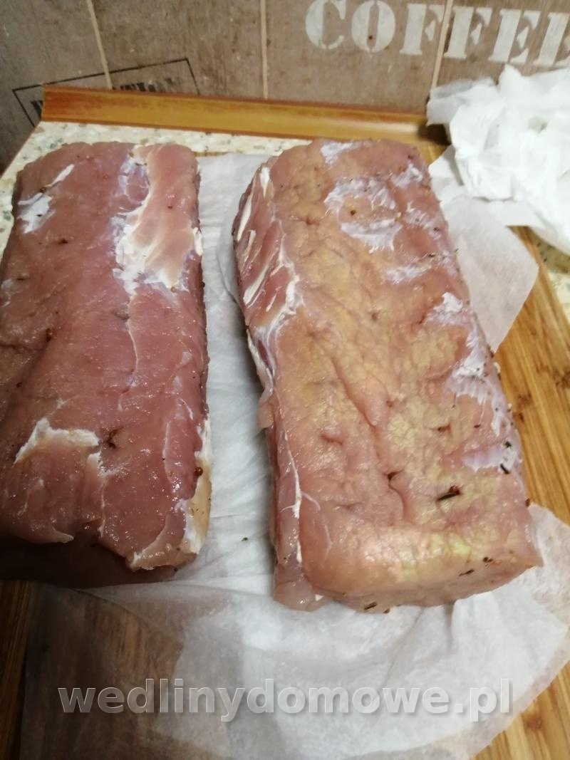 2. Witam wszystkich Dzisiaj skoro świt chciałem przystąpić do obróbki schabu po peklowaniu, wyciągając kawałki z solanki zalwazylem ze jeden z kawałków opalizujena na zielono drugi jest ok. Samo mięso jest zwarte nie śmierdzi ani nie jest maziowate, solanka czysta i klarowna skla solanki na 2,65kg mięsa 1,09l wody i 100gram soli peklowej pół lyzeczki cukru 2 ząbki czosnku parę kulek ziela pieprzu czarnego i kolendry lyzeczka tymianku. Proszę o pomoc czy mięso się zepsuło czy to normalne pierwszy raz mi się przytrafiła taka sytuacja, dziękuję za wszelką odpowiedź