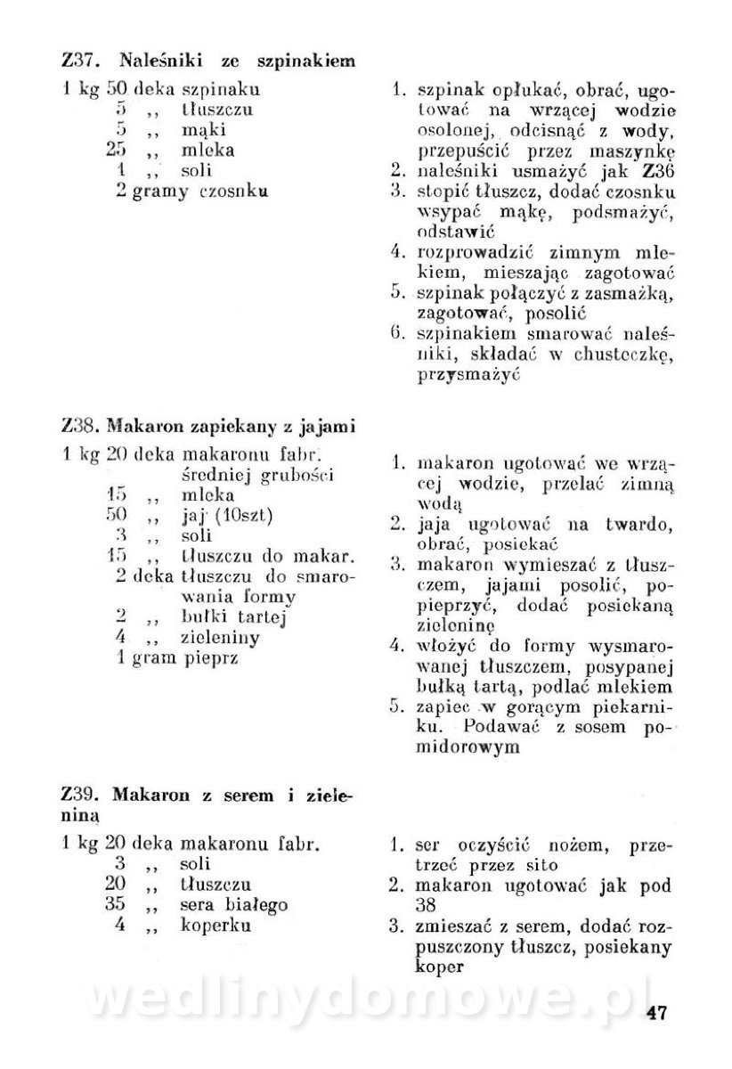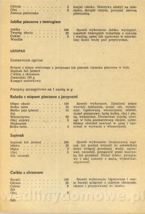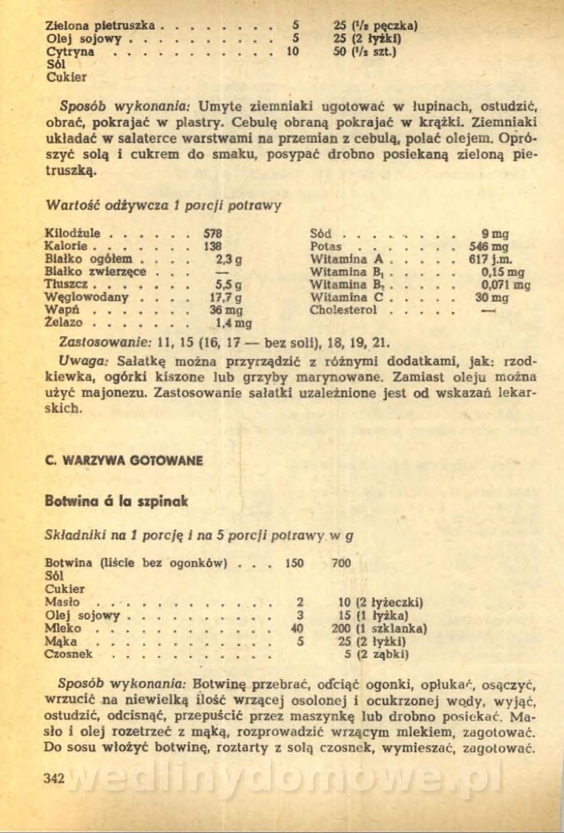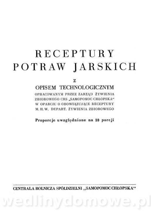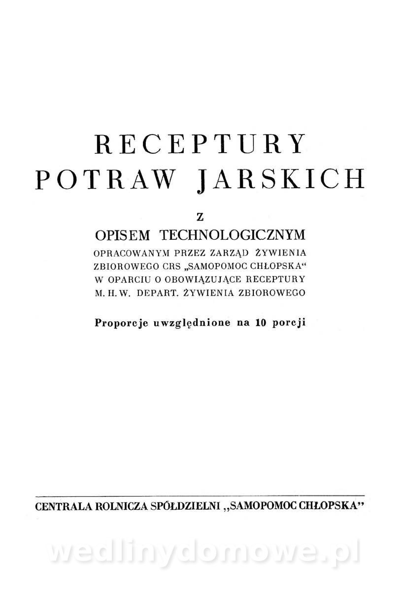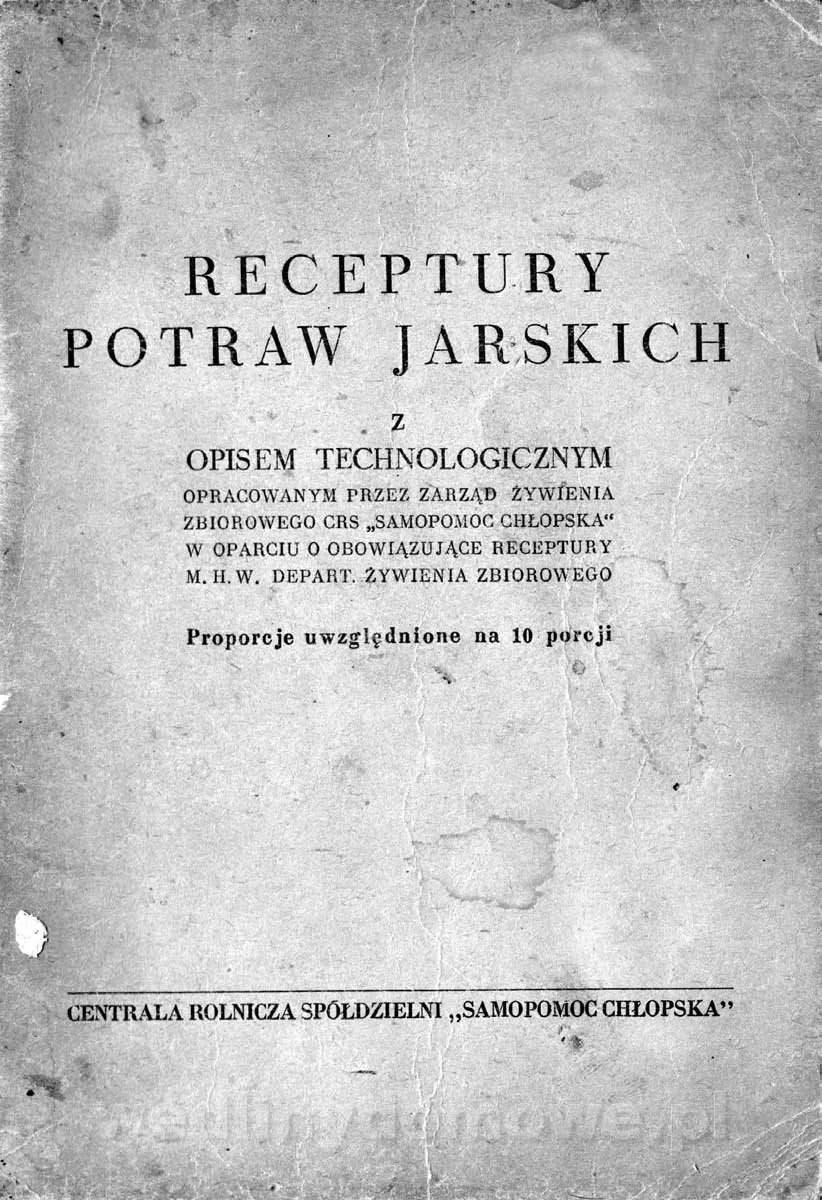 [Rok 1952][CRS "Samopomoc Chłopska"] Receptury potraw jarskich.