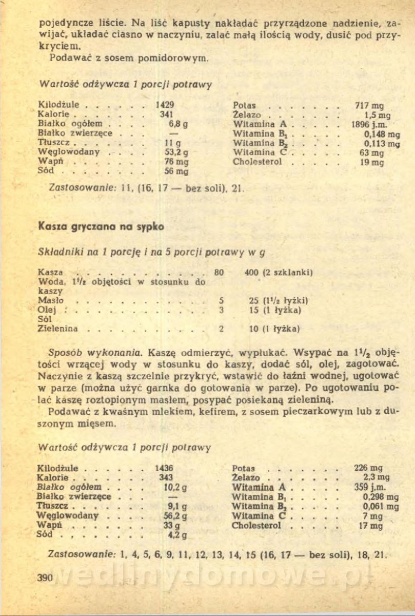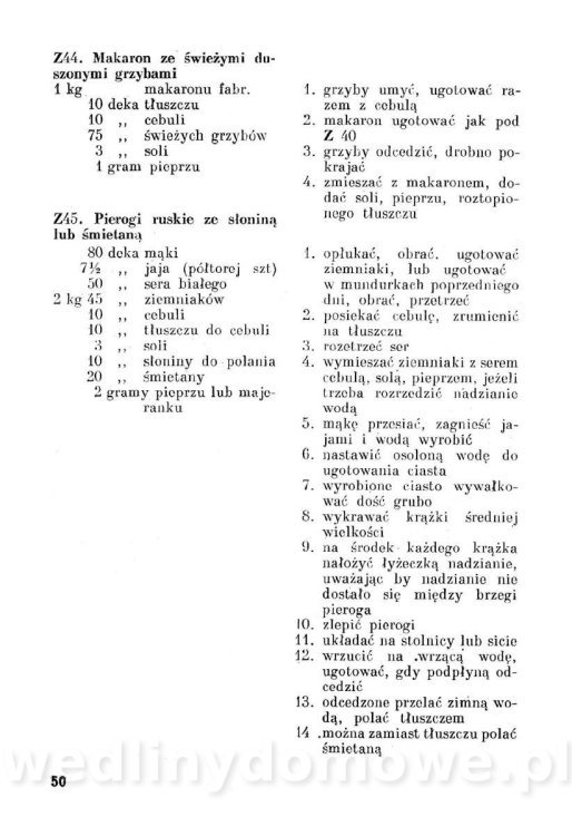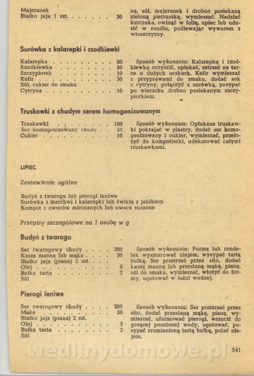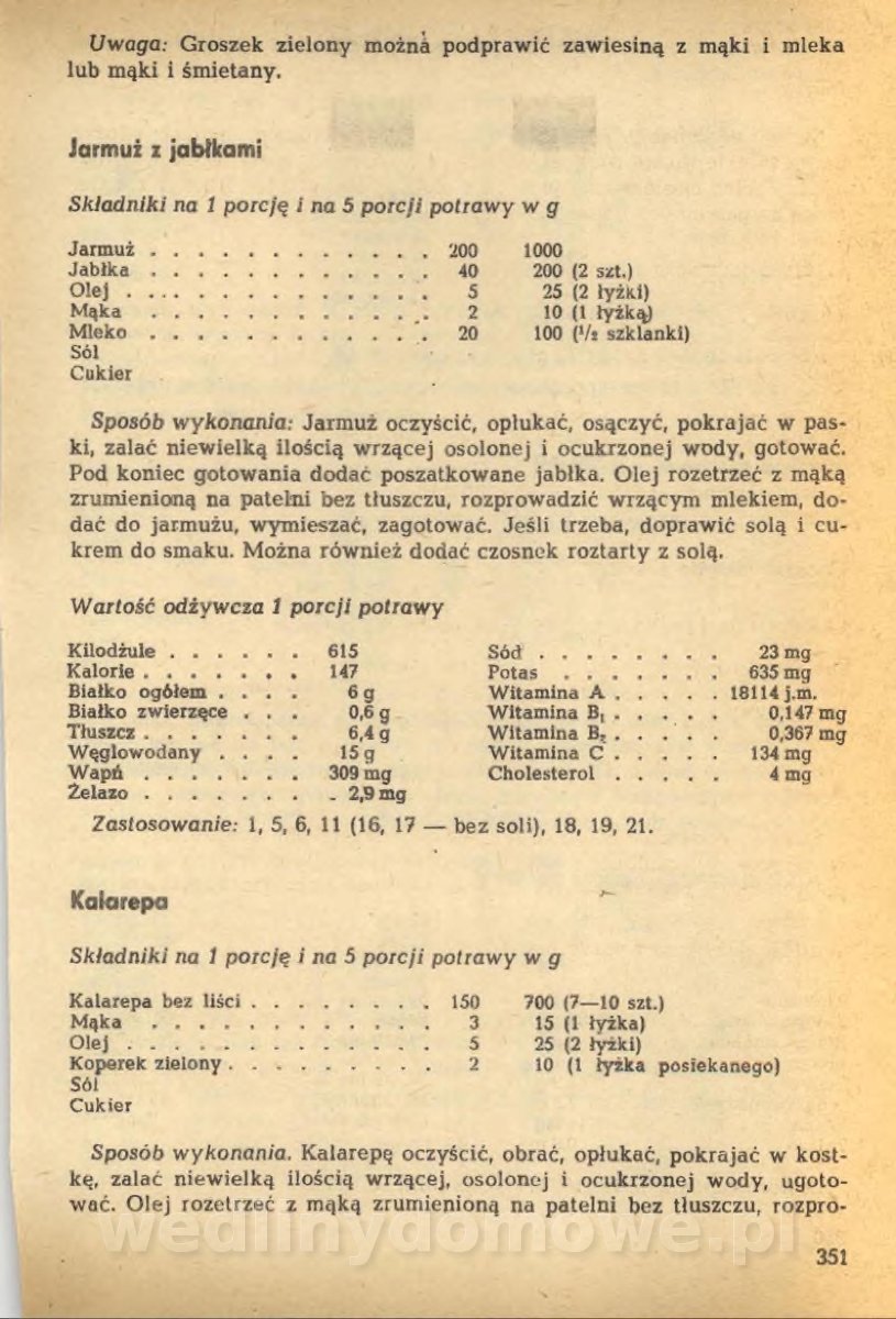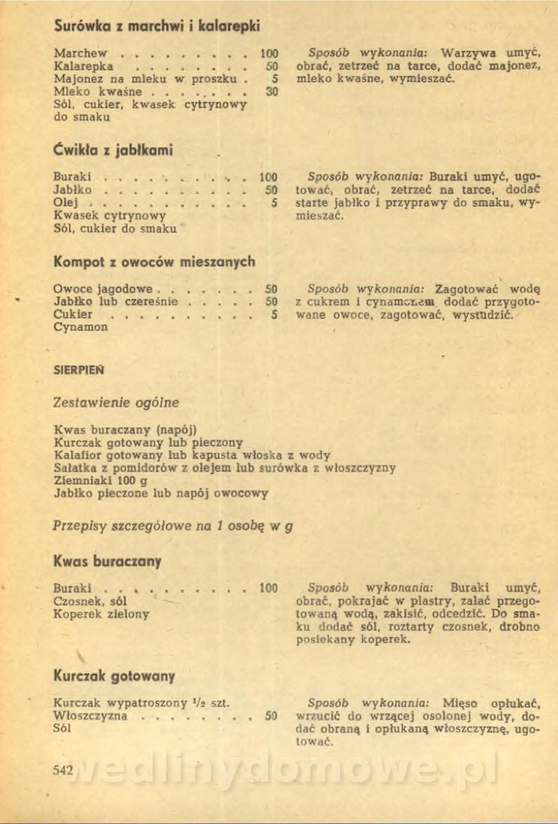 [Rok 1952][CRS "Samopomoc Chłopska"] Receptury potraw jarskich.