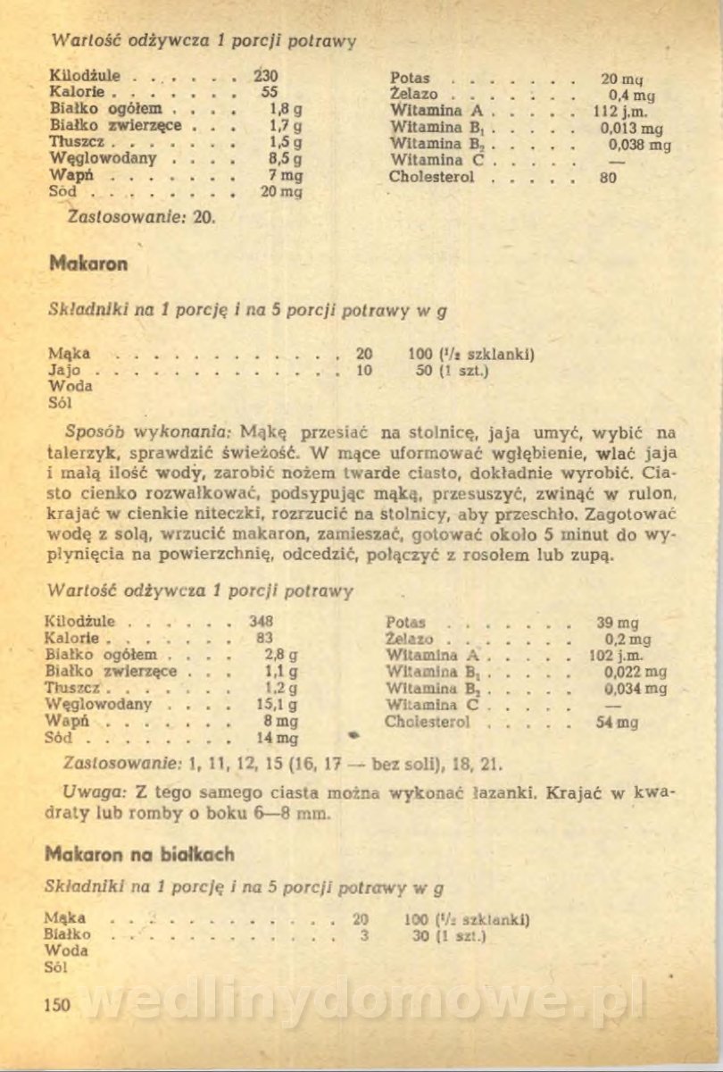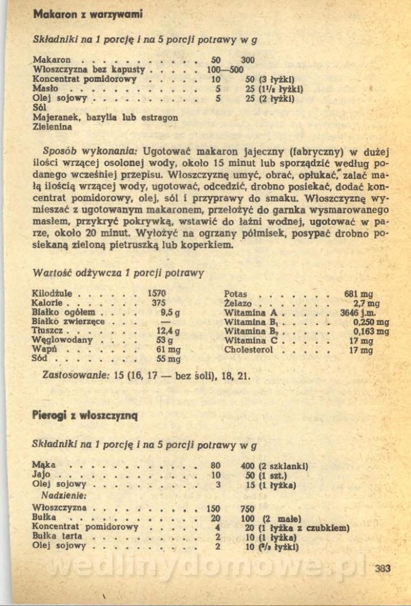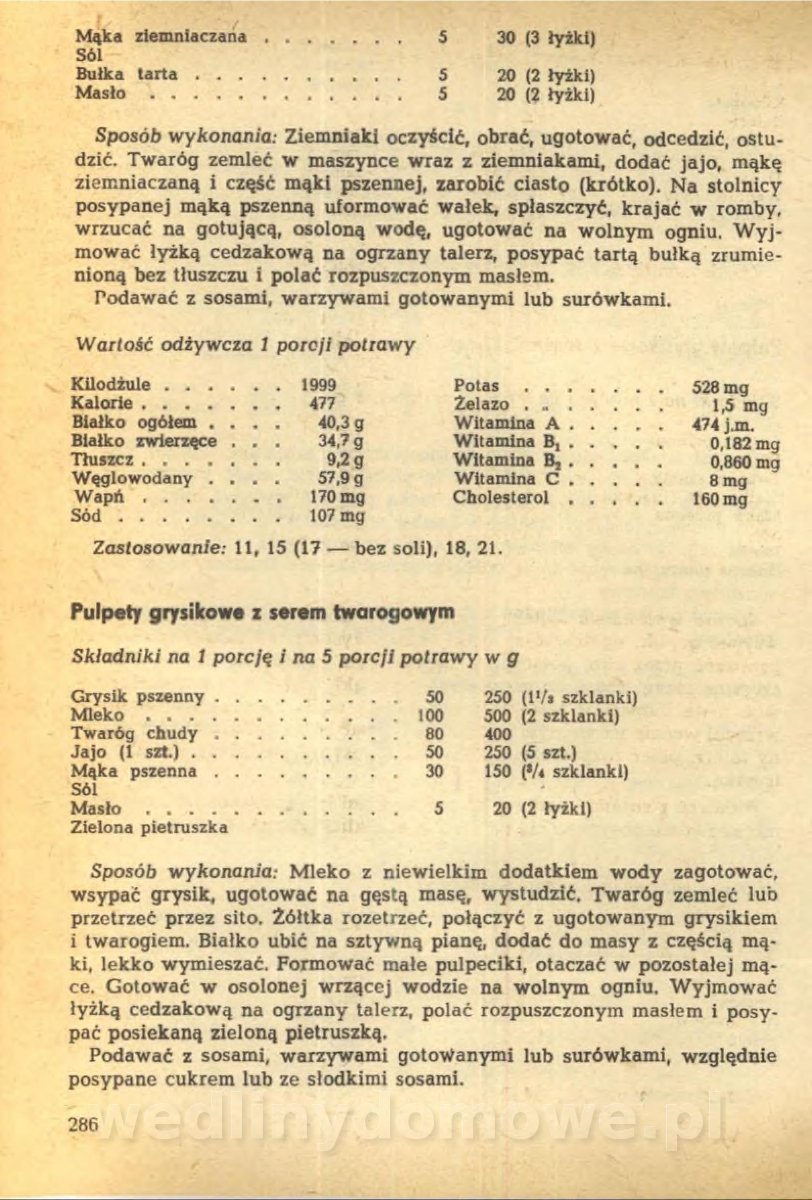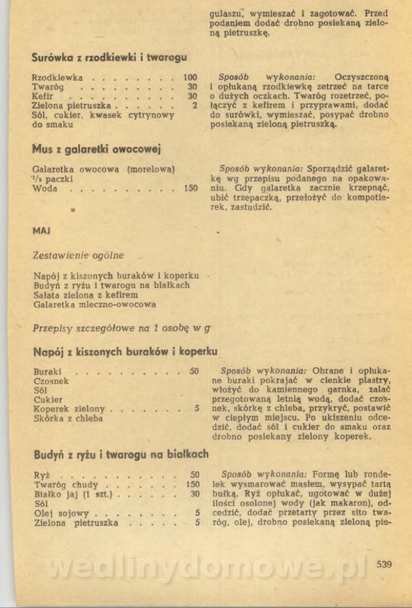 [Rok 1952][CRS "Samopomoc Chłopska"] Receptury potraw jarskich.