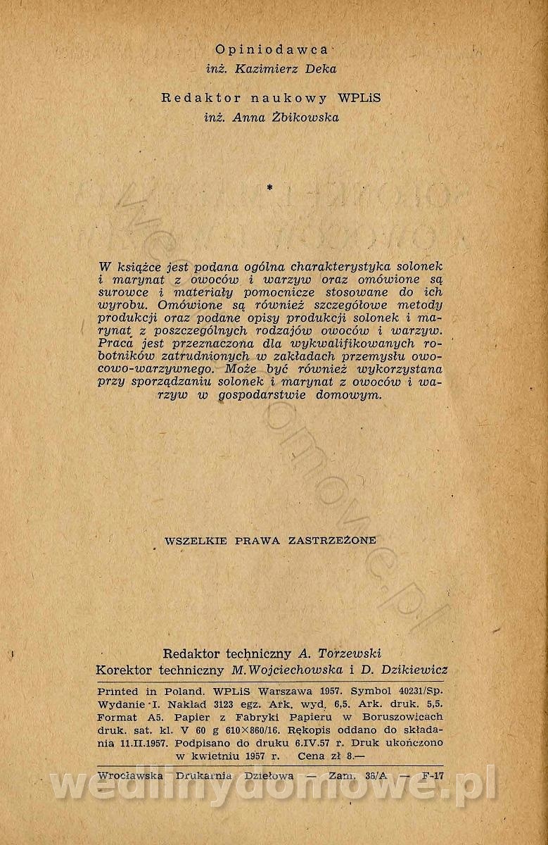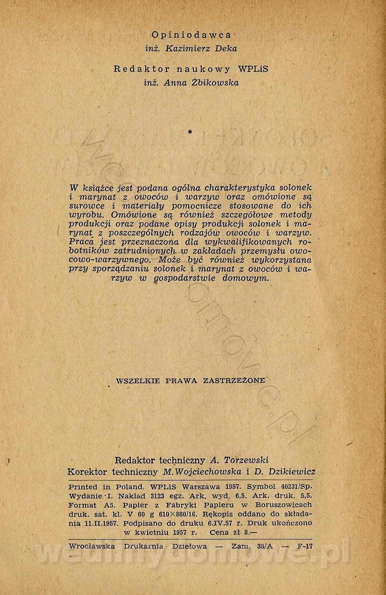 [Rok 1957] Solonki i marynaty z owoców i warzyw