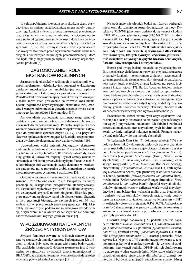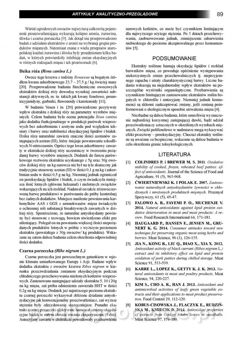 Charakterystyka i zagospodarowanie podrobów jako ubocznych jadalnych surowców rzeźnych Podroby jeszcze do niedawna były mało docenianym surowcem spożywczym. Niechlubnie nazywano je nawet jedzeniem dla ubogich. Do tej grupy surowców mięsnych zaliczane są między innymi organy wewnętrzne, takie jak wątroba, serce, nerki, płuca, żołądki oraz twarde części zwierzęcia, w tym kurze łapki. Obecnie w zakładach mięsnych wykorzystywane są jako cenny półprodukt w produkcji tzw. wyrobów podrobowych, zaś w gastronomii sięgają po nie szefowie kuchni wielu prestiżowych restauracji, którzy próbują przedstawić je w nowych ciekawych odsłonach. Dotyczy to zwłaszcza niektórych z nich np. móżdżków, które nie dość, że dostarczają walorów smakowych, to są również źródłem selenu i miedzi, czyli składników mineralnych koniecznych dla prawidłowego funkcjonowania układu odpornościowego. W niektórych kuchniach świata (np. kuchni chińskiej) uważane są za ekskluzywne smakołyki, czy też tak jak we Francji wątroba gęsia, znana konsumentom jako „foie gras”. Poszczególne grupy podrobów jako uboczne surowce rzeźne pozyskiwane ze zwierząt hodowlanych pozyskuje się w trakcie ich uboju i przetwarzania. Wykorzystywane są głównie w postaci podrobów wieprzowych, cielęcych, wołowych, owczych, drobiowych oraz końskich. Podroby definiowane jako „uboczne surowce rzeźne” są cennymi surowcami wykorzystywanymi w wielu branżach (m.in. w przemyśle farmaceutycznym oraz spożywczym). W przemyśle mięsnym wykorzystywane są we wszystkich trzech podsektorach produkcyjnych: jako elementy kulinarne, surowce w przetwórstwie mięsnym tj. w produkcji wędlin podrobowych oraz jako surowce w innych sektorach przemysłu (np. w branży farmaceutycznej). Do podrobów zalicza się jadalne narządy wewnętrzne zwierząt rzeźnych, m.in.: wątroby, żołądki, nerki, płuca, serca, mózgi, ozory, grasice oraz inne części ciała zwierząt niebędące mięśniami i kośćmi. Najczęściej w konsumpcji wykorzystywane są narządy pochodzące od świń, kur, kaczek, krów i jagniąt. Podroby są surowcami o wyższej w porównaniu do tkanki mięśniowej, zawartości niektórych składników mineralnych i witamin. Dzięki czemu elementy te cechuje atrakcyjna wartość odżywcza i pokarmowa. Z wytwarzaniem produktów i potraw z podrobów, obok wysokiej wartości odżywczej, przemawia również ich niska cena. Obecnie obserwuje się wzrost poziomu spożycia wędlin wyprodukowanych na bazie podrobów, dlatego też prowadzone badania i analizy powinny obejmować jak największa pulę czynników genetycznych i środowiskowych wpływających na jakość podrobów. Rodzaje, właściwości, wartości odżywcze i zdrowotne podrobów Podroby znane są od dawna, lecz ich popularność wznosi się i opada cyklicznie na fali obowiązujących trendów kulinarnych. Różnorodność podrobów jest bardzo duża, a ich cechy organoleptyczne i wartość odżywcza są uwarunkowane rodzajem narządu oraz jego pochodzeniem. Podroby dzieli się na 3 klasy na podstawie ich przydatności kulinarnej i walorów odżywczych: • Klasa I: wątroba, nerki, ozory, mózgi, serca, • Klasa II: płuca, śledziona, żołądki, flaki, wieprzowe nogi i głowy, • Klasa III: głowy, nogi cielęce i wołowe, wymiona. Do najczęściej spożywanych i najbardziej znanych podrobów należą: • wątróbka - pozyskiwana z drobiu, świń, krów oraz cieląt. Wątróbki konsumpcyjne powinny mieć barwę od fioletowo- brązowej do brunatno-brązowej, przy czym najciemniejsza jest wątróbka wołowa, zaś wątróbka drobiowa i cielęca charakteryzują się najjaśniejszą barwą i największą delikatnością, • żołądki - najbardziej znane są żołądki drobiowe: kurze, indycze, kacze, • nerki - potocznie zwane są cynadrami, dostępne w sprzedaży są najczęściej nerki wieprzowe, jagnięce oraz wołowe. Nerki wołowe są niezwykle twarde i wymagają długiego gotowania. Barwa nerek różni się w zależności od gatunku zwierząt, • płuca - charakteryzują się bladoróżową barwą i dużą sprężystością, co jest warunkowane wysoką zawartością tkanki łącznej. Są dość twarde i wymagają długiej obróbki termicznej, • serca - przybierają barwę od jasnoczerwonej do wiśniowej, serca drobiowe i cielęce są delikatniejsze niż wieprzowe i wołowe, • flaki - uzyskuje się je z wewnętrznej warstwy mięśniowej żołądków wołowych lub rzadziej wieprzowych, • ozorki - czyli języki łącznie z mięśniami podjęzycznymi, języki wołowe są grube i jędrne, podobnie języki owiec i kóz, jednak są one mniejsze zaś języki wieprzowe są długie i gładkie, • śledziony - wykorzystuje się je najczęściej do produkcji wyrobów wędliniarskich i salcesonu. Podroby są bogate w pełnowartościowe białko, witaminy i składniki mineralne, a ich zawartość jest uzależniona od rodzaju podrobów (tab.1). Najwyższą wartością odżywczą charakteryzują się: wątroba, mózg, nerki, ozory, serca i płuca. Podroby to doskonałe źródło witaminy A, witaminy B12, witaminy B2, niacyny szczególnie dużo zawiera ich wątróbka. 100 g wątróbki pokrywa dzienne zapotrzebowanie osoby dorosłej na witaminę A i witaminę B12 w ponad 1000%, zaś najbogatsza w witaminę A jest wątróbka cielęca, natomiast najwyższą zawartością witaminy B12 charakteryzuje się wątróbka wołowa. Witamina A wpływa korzystnie na wzrok oraz łagodzi stany zapalne, zmniejszając ryzyko wystąpienia chorób wywoływanych przez stres oksydacyjny i stany zapalne. Dodatkowo witamina A poprawia odporność i wpływa korzystnie na skórę. Dzięki zawartości witamin z grupy B podroby wspomagają funkcjonowanie układu nerwowego i chronią przed rozwojem otępienia, choroby Alzhaimera oraz depresji. W podrobach znajdują się też znaczne ilości składników mineralnych: żelaza, fosforu, miedzi i cynku. W