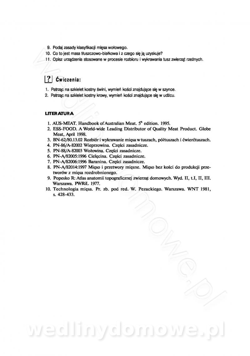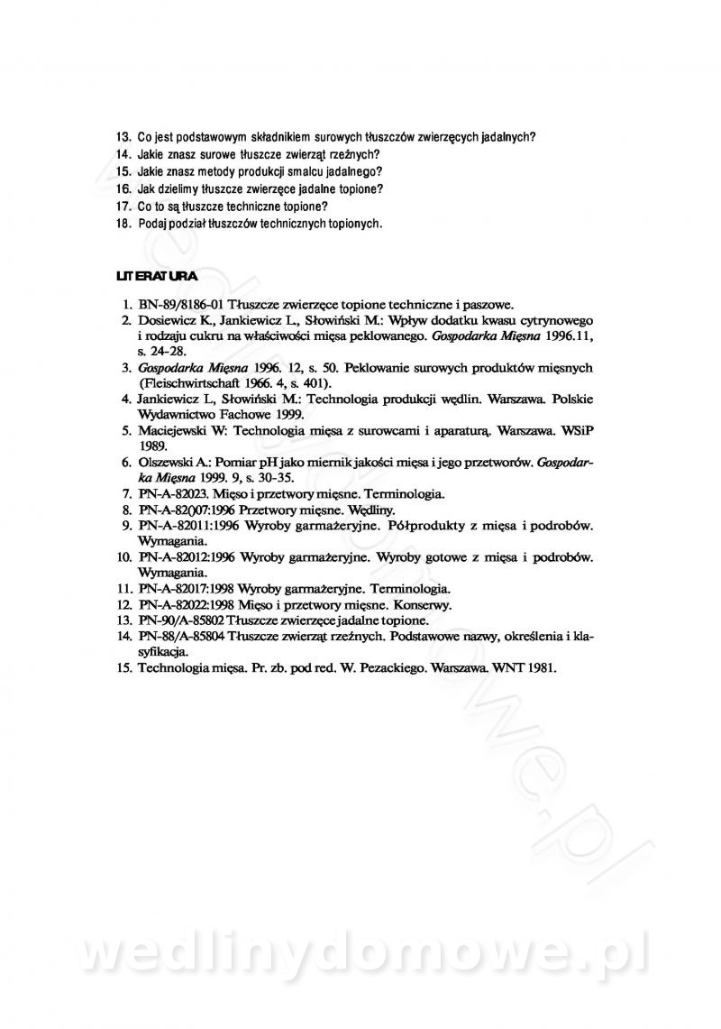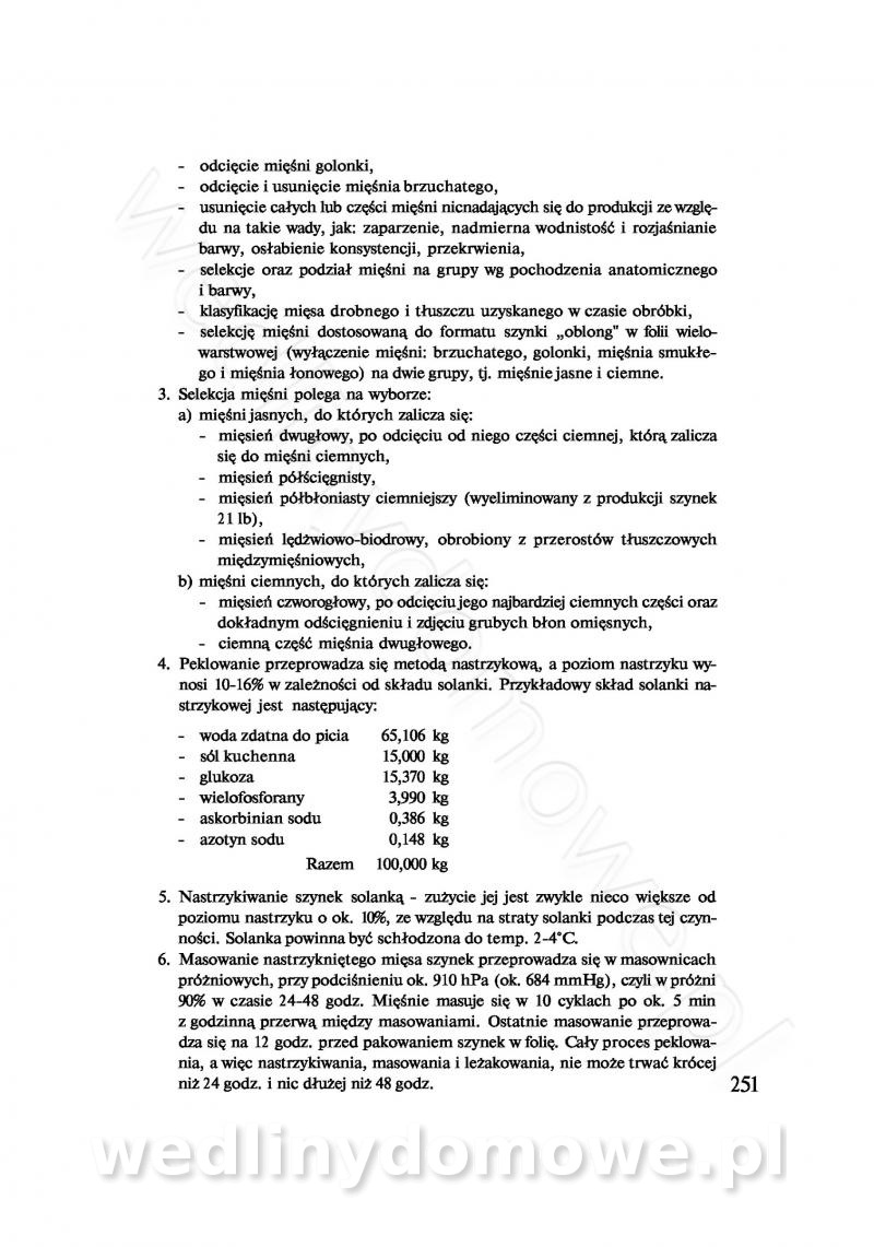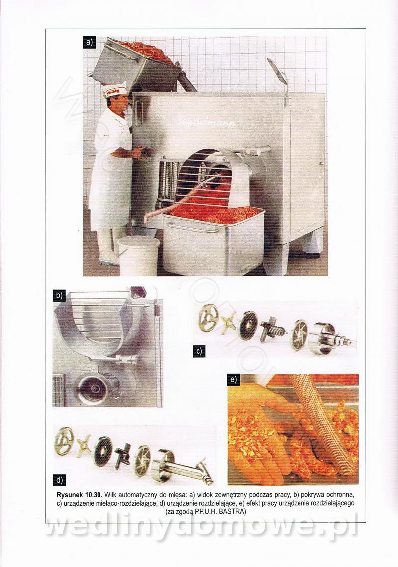 Kiełbasa a’la BMW Kontynuujemy zatem serię wyrobów motoryzacyjnych. Dzisiaj na warsztat bierzemy BMW. Będą nam potrzebne: dwie polędwiczki wieprzowe,polędwica z jałówki lub jakaś mniejsza wołowa,peklosól – 20 g/kg,jelita wieprzowe – gruba kiełbaśnica lub jelito proste wieprzowe (średnica zależy od średnicy naszego wsadu). Na początek peklowanie. Posypujemy mięso peklosolą - 20 g na kilogram, dokładnie nacieramy i zostawiamy je w lodówce, w spokoju na 4-5 dni. W tym czasie powinniśmy (rękoma w sterylnych rękawiczkach) masować polędwiczki kilka razy. Upeklowane pięknie mięso, wyjmujemy z lodówki i każdą polędwiczkę wieprzową tniemy wzdłuż na cztery części, a polędwicę wołową na trójkąty o mniej więcej takim samym przekroju jak ćwiartki polędwic wieprzowych. Teraz musimy skleić ze sobą poszczególne kawałki polędwic, układając jednocześnie wzór m-ki BMW. Bierzemy cztery kawałki na każdą kiełbasę i naprzemiennie (kolorami) układamy bawarski wzór, przesypując dokładnie miejsca połączeń żelatyną spożywczą. I w ten oto sposób, „ćwiartki” zostały naturalnie sklejone w całość. Teraz czas na zawinięcie sklejonych kawałków w folię i włożenie ich do lodówki, by żelatyna dobrze związała. Znając średnicę naszych kiełbasek (wsadów) możemy przygotować jelita wieprzowe zarówno jeśli chodzi o średnicę, jak i długość batonów. Pamiętajmy aby jelita dobrze umyć i wymoczyć przez około 20 minut. Po kilku godzinach wyjmujemy opakowane w folię, związane żelatyną kawałki polędwic i wpychamy je do przygotowanych jelit wieprzowych. Aby ułatwić sobie pracę, możemy delikatnie posmarować powierzchnię polędwic olejem lub smalcem. Kiełbasę wieszamy w temperaturze pokojowej na 1 godzinę i następnie wkładamy do piekarnika, by podpiekać ją przez dwie godziny w temperaturze 60 st.C. Prosto z piekarnika, kiełbasę wkładamy do wędzarni i wędzimy przez godzinę w temperaturze 40 st.C. O jakości i wyglądzie kiełbasy niech świadczy jej przekrój. Kiełbasę, zamiast zapiekania w piekarniku, można również poddać parzeniu w gorącej wodzie tak, jak kiełbasę o tej samej średnicy pamiętając jednak, by polędwiczek nie przeparzyć. Już można jeść. Jako, że jest to kiełbasa dla zmotoryzowanych, zaleca się spożywanie dużych jej ilości we wnętrzu samochodu. Pozdrawiam i smacznego: Autor: pachom