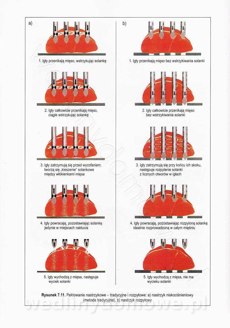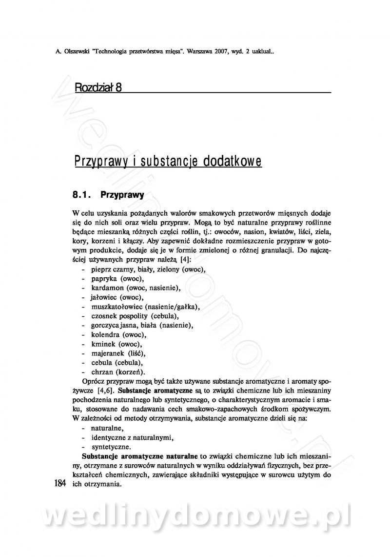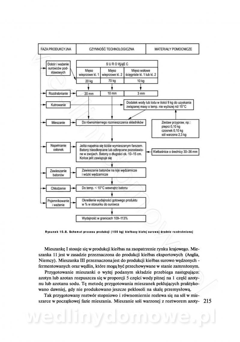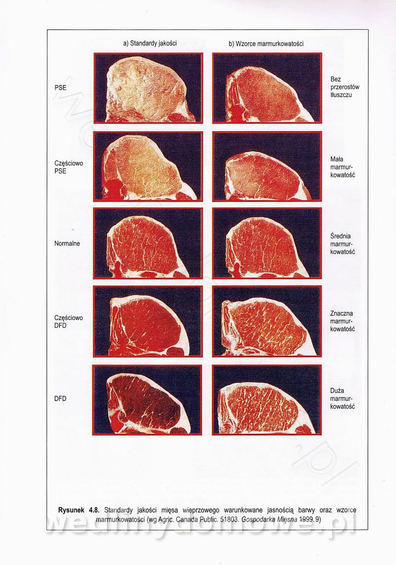 Kiełbasa a’la BMW Kontynuujemy zatem serię wyrobów motoryzacyjnych. Dzisiaj na warsztat bierzemy BMW. Będą nam potrzebne: dwie polędwiczki wieprzowe,polędwica z jałówki lub jakaś mniejsza wołowa,peklosól – 20 g/kg,jelita wieprzowe – gruba kiełbaśnica lub jelito proste wieprzowe (średnica zależy od średnicy naszego wsadu). Na początek peklowanie. Posypujemy mięso peklosolą - 20 g na kilogram, dokładnie nacieramy i zostawiamy je w lodówce, w spokoju na 4-5 dni. W tym czasie powinniśmy (rękoma w sterylnych rękawiczkach) masować polędwiczki kilka razy. Upeklowane pięknie mięso, wyjmujemy z lodówki i każdą polędwiczkę wieprzową tniemy wzdłuż na cztery części, a polędwicę wołową na trójkąty o mniej więcej takim samym przekroju jak ćwiartki polędwic wieprzowych. Teraz musimy skleić ze sobą poszczególne kawałki polędwic, układając jednocześnie wzór m-ki BMW. Bierzemy cztery kawałki na każdą kiełbasę i naprzemiennie (kolorami) układamy bawarski wzór, przesypując dokładnie miejsca połączeń żelatyną spożywczą. I w ten oto sposób, „ćwiartki” zostały naturalnie sklejone w całość. Teraz czas na zawinięcie sklejonych kawałków w folię i włożenie ich do lodówki, by żelatyna dobrze związała. Znając średnicę naszych kiełbasek (wsadów) możemy przygotować jelita wieprzowe zarówno jeśli chodzi o średnicę, jak i długość batonów. Pamiętajmy aby jelita dobrze umyć i wymoczyć przez około 20 minut. Po kilku godzinach wyjmujemy opakowane w folię, związane żelatyną kawałki polędwic i wpychamy je do przygotowanych jelit wieprzowych. Aby ułatwić sobie pracę, możemy delikatnie posmarować powierzchnię polędwic olejem lub smalcem. Kiełbasę wieszamy w temperaturze pokojowej na 1 godzinę i następnie wkładamy do piekarnika, by podpiekać ją przez dwie godziny w temperaturze 60 st.C. Prosto z piekarnika, kiełbasę wkładamy do wędzarni i wędzimy przez godzinę w temperaturze 40 st.C. O jakości i wyglądzie kiełbasy niech świadczy jej przekrój. Kiełbasę, zamiast zapiekania w piekarniku, można również poddać parzeniu w gorącej wodzie tak, jak kiełbasę o tej samej średnicy pamiętając jednak, by polędwiczek nie przeparzyć. Już można jeść. Jako, że jest to kiełbasa dla zmotoryzowanych, zaleca się spożywanie dużych jej ilości we wnętrzu samochodu. Pozdrawiam i smacznego: Autor: pachom