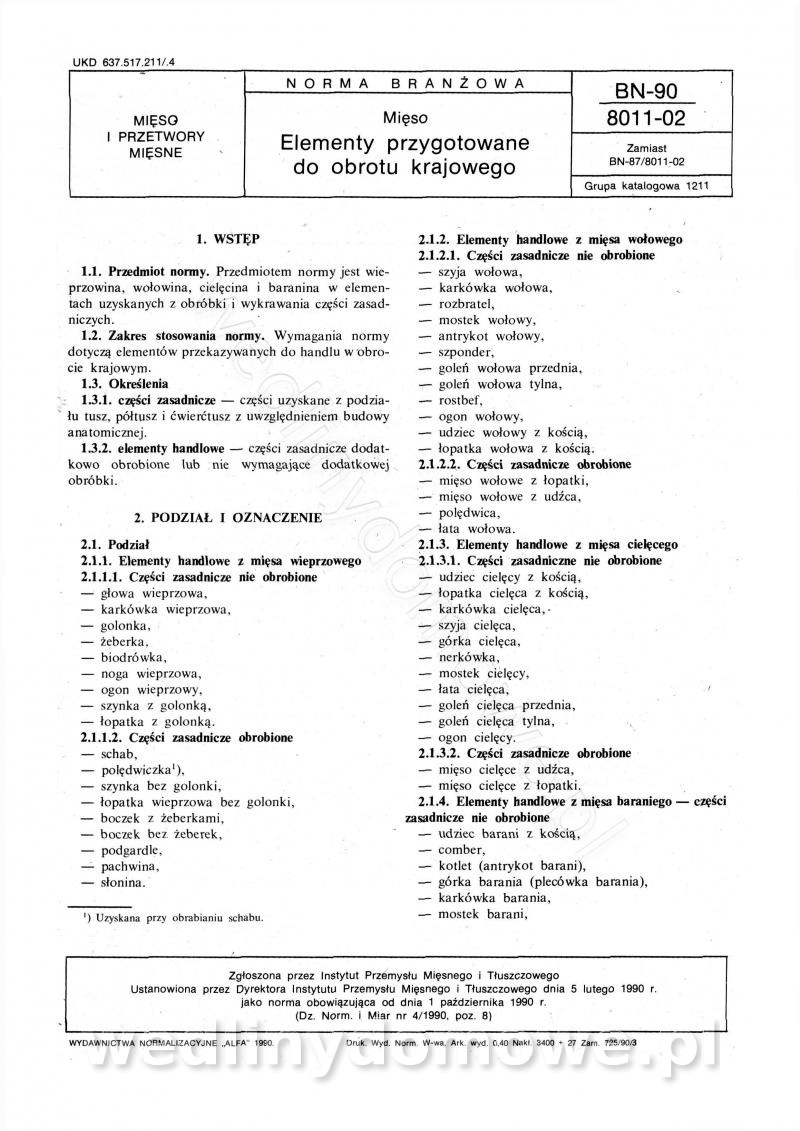 Mięso. Elementy przygotowane do obrotu krajowego