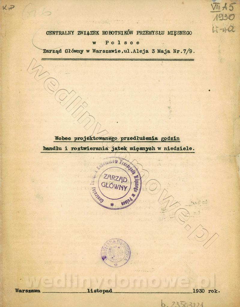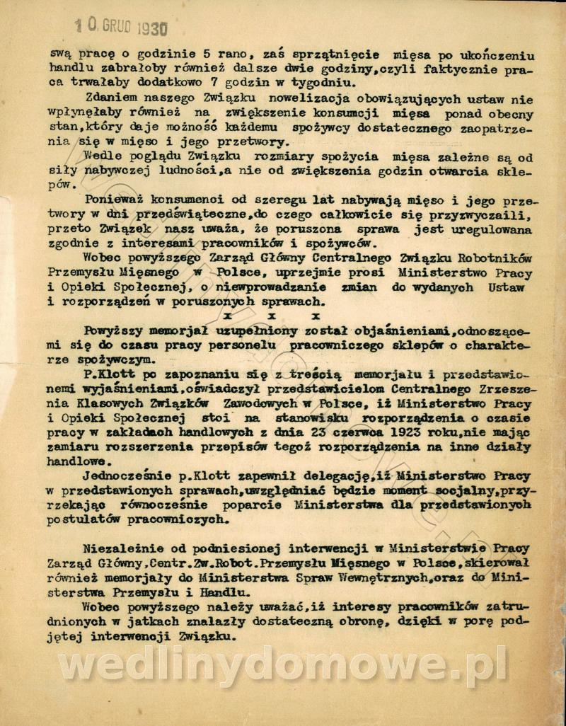 [Rok 1930] Regulacja czasu pracy jatek mięsnych
