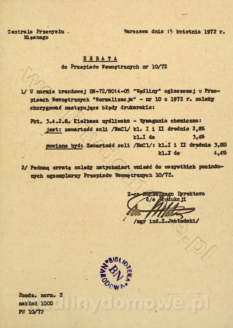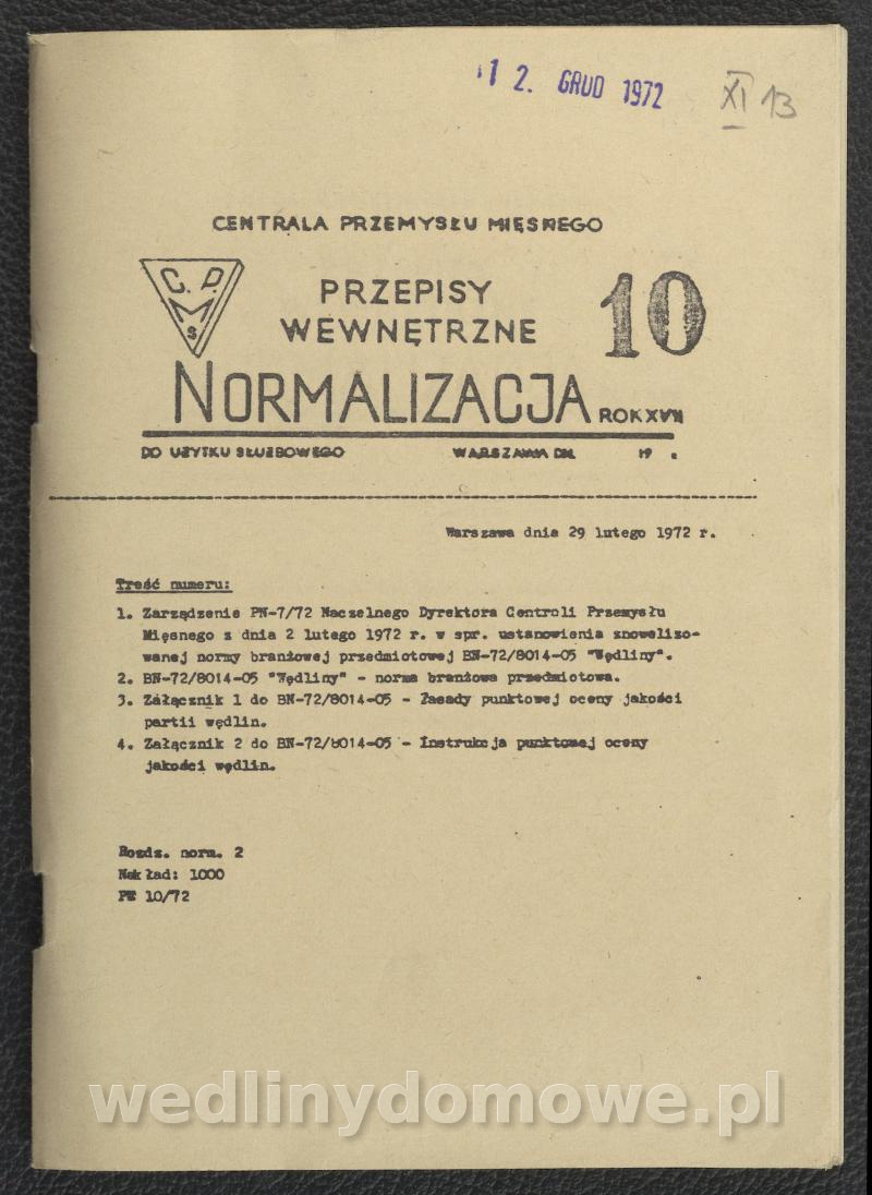 [19][Rok 1972] Przepisy wewnętrzne nr 10