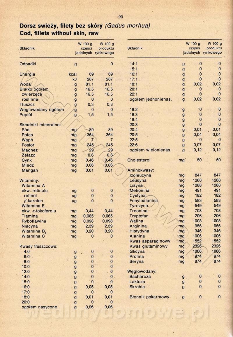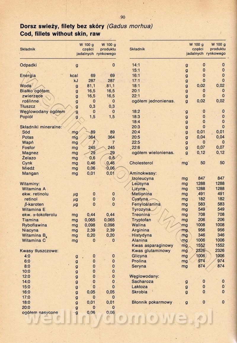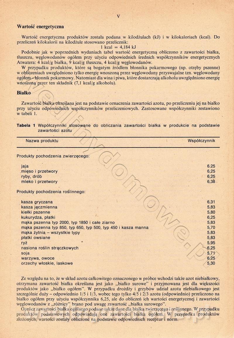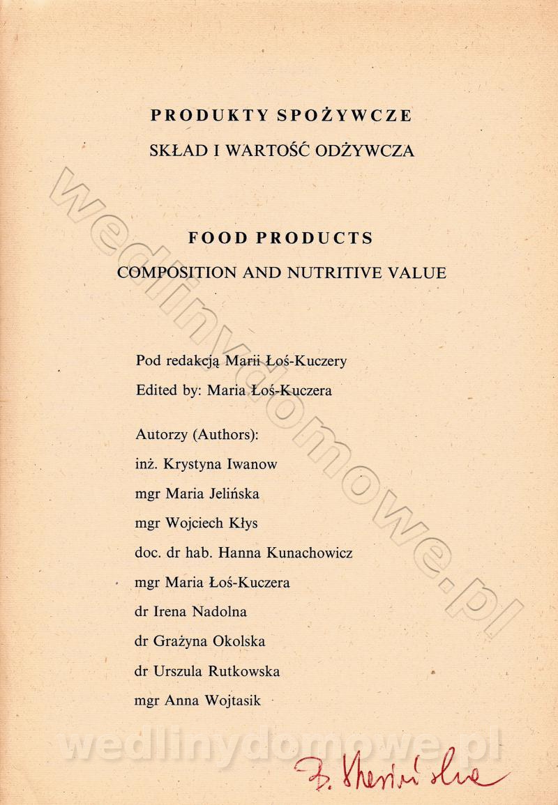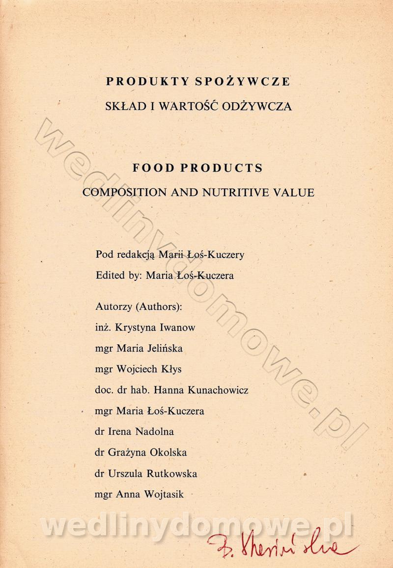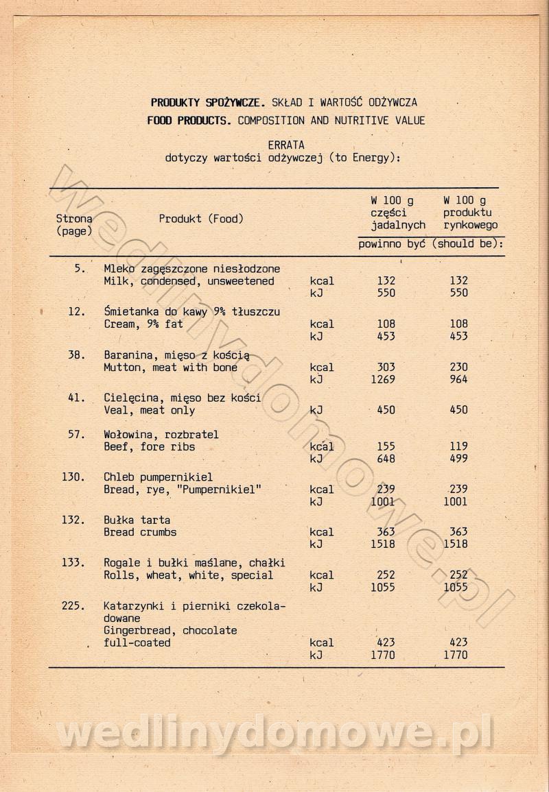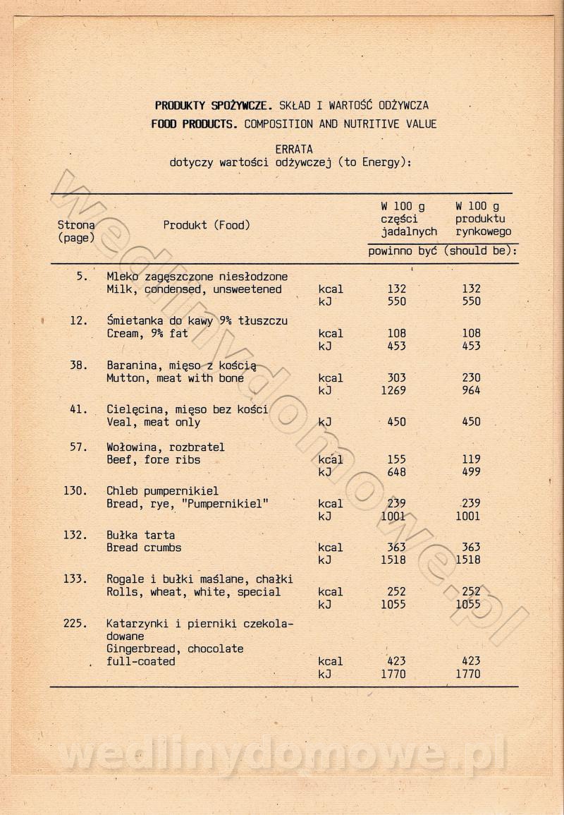 [Rok 1990] Produkty spożywcze. Skład i wartość odżywcza