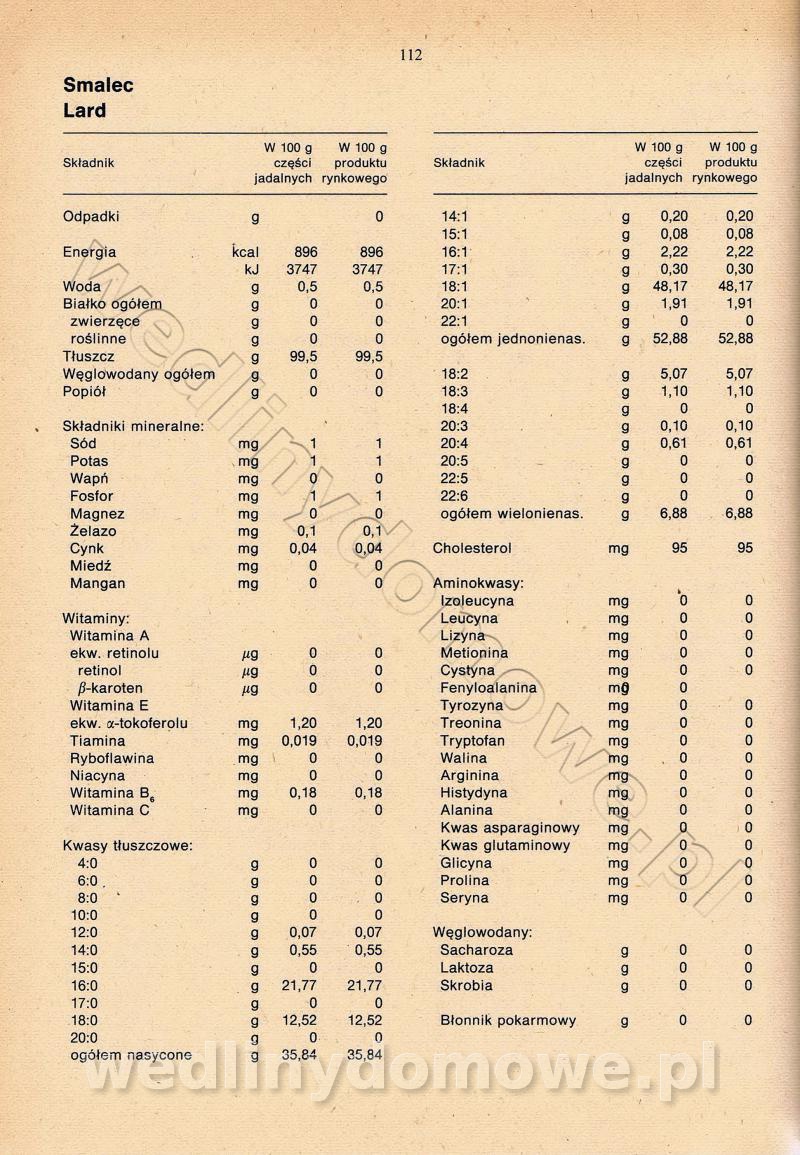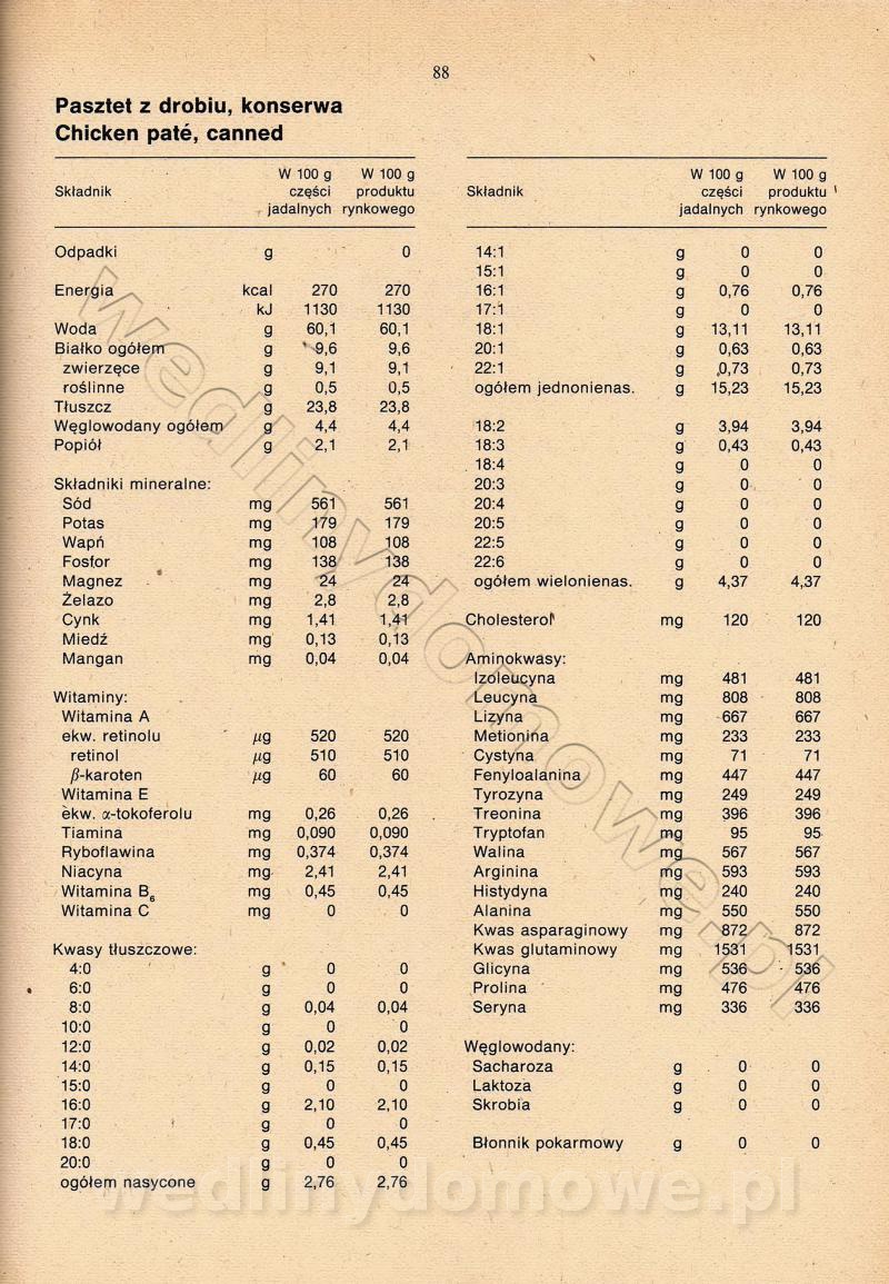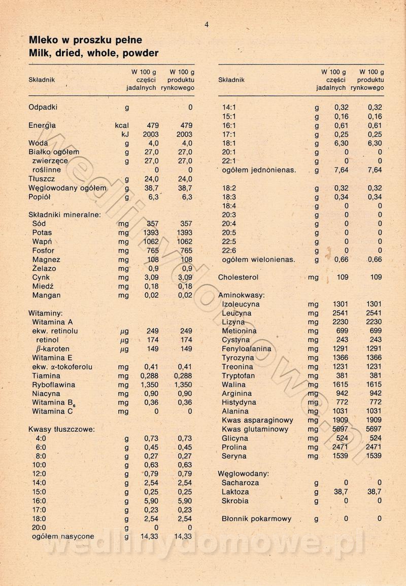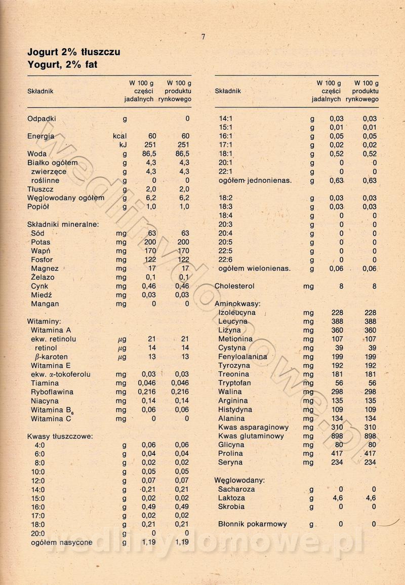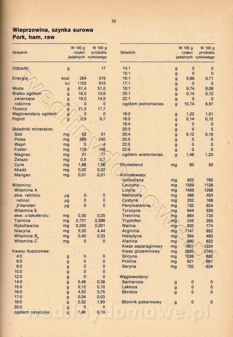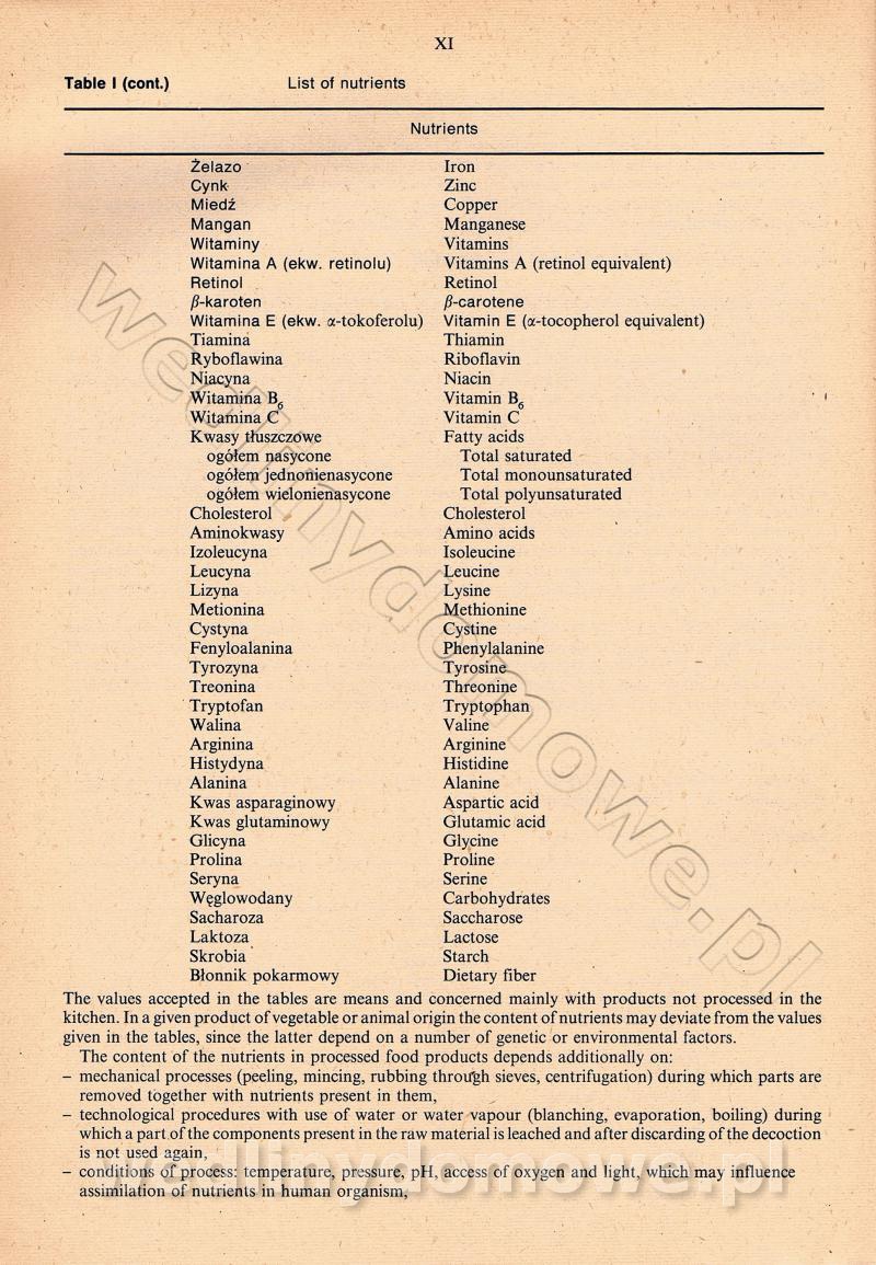 [Rok 1990] Produkty spożywcze. Skład i wartość odżywcza