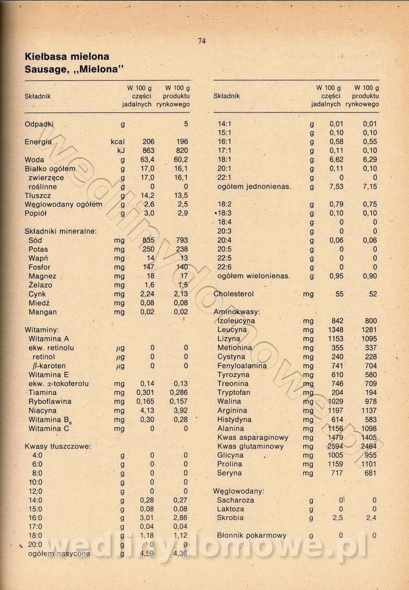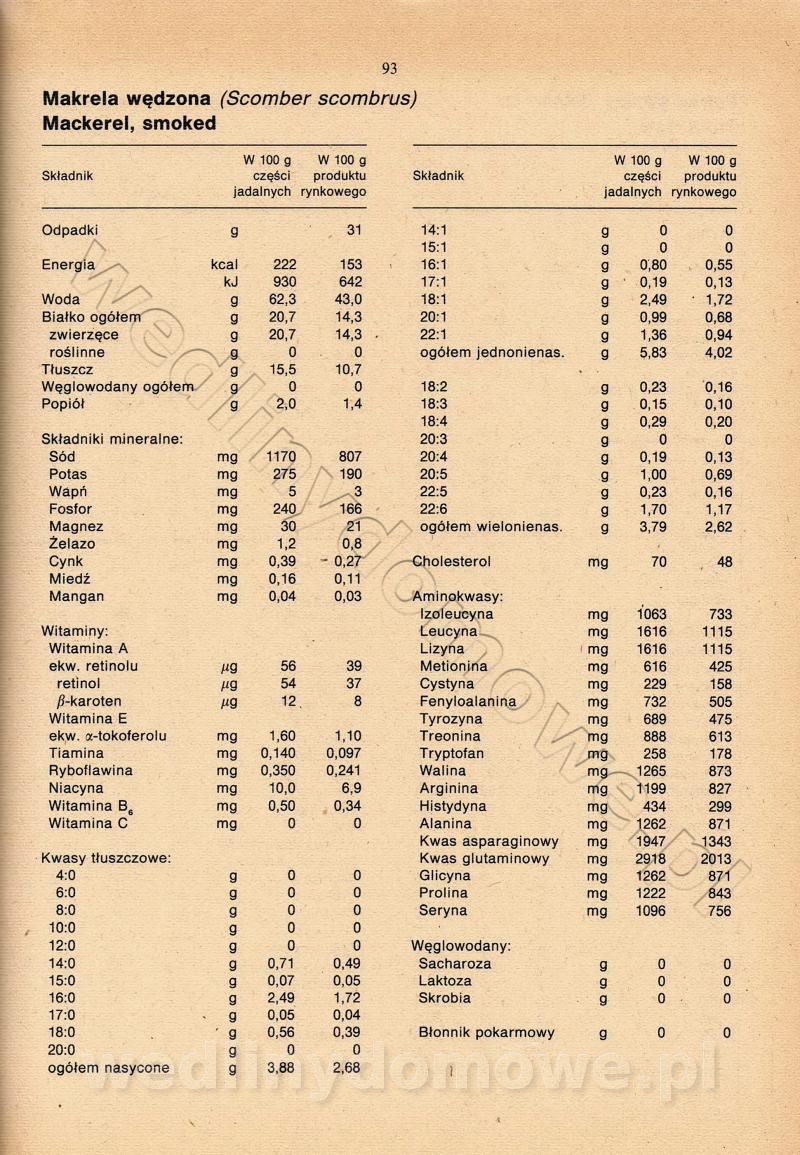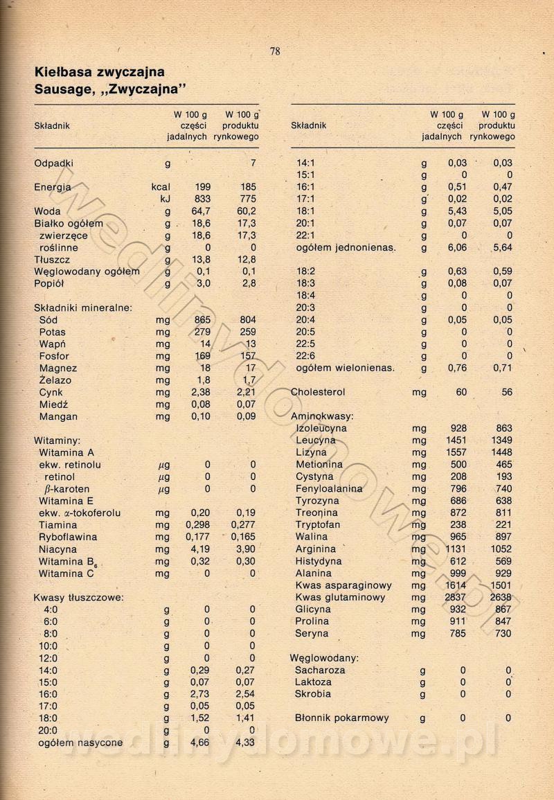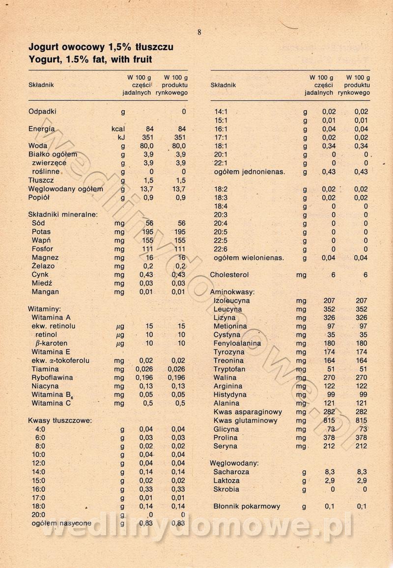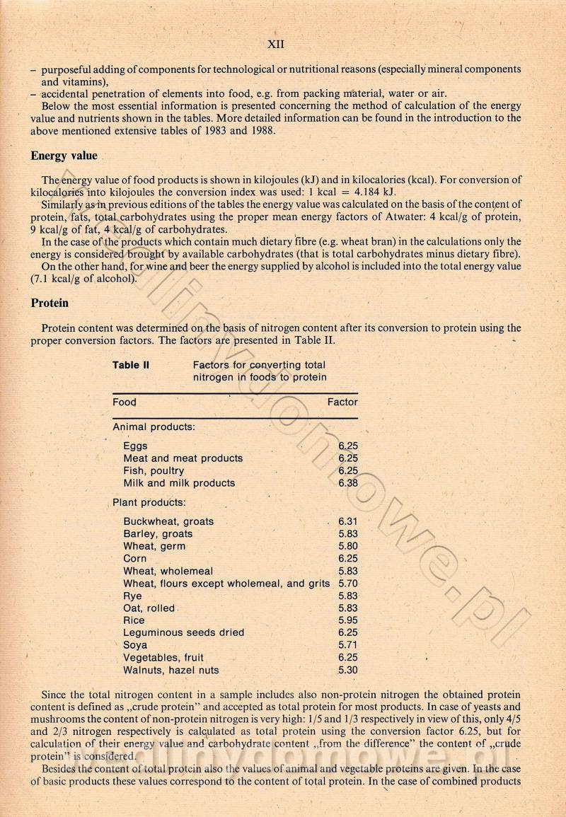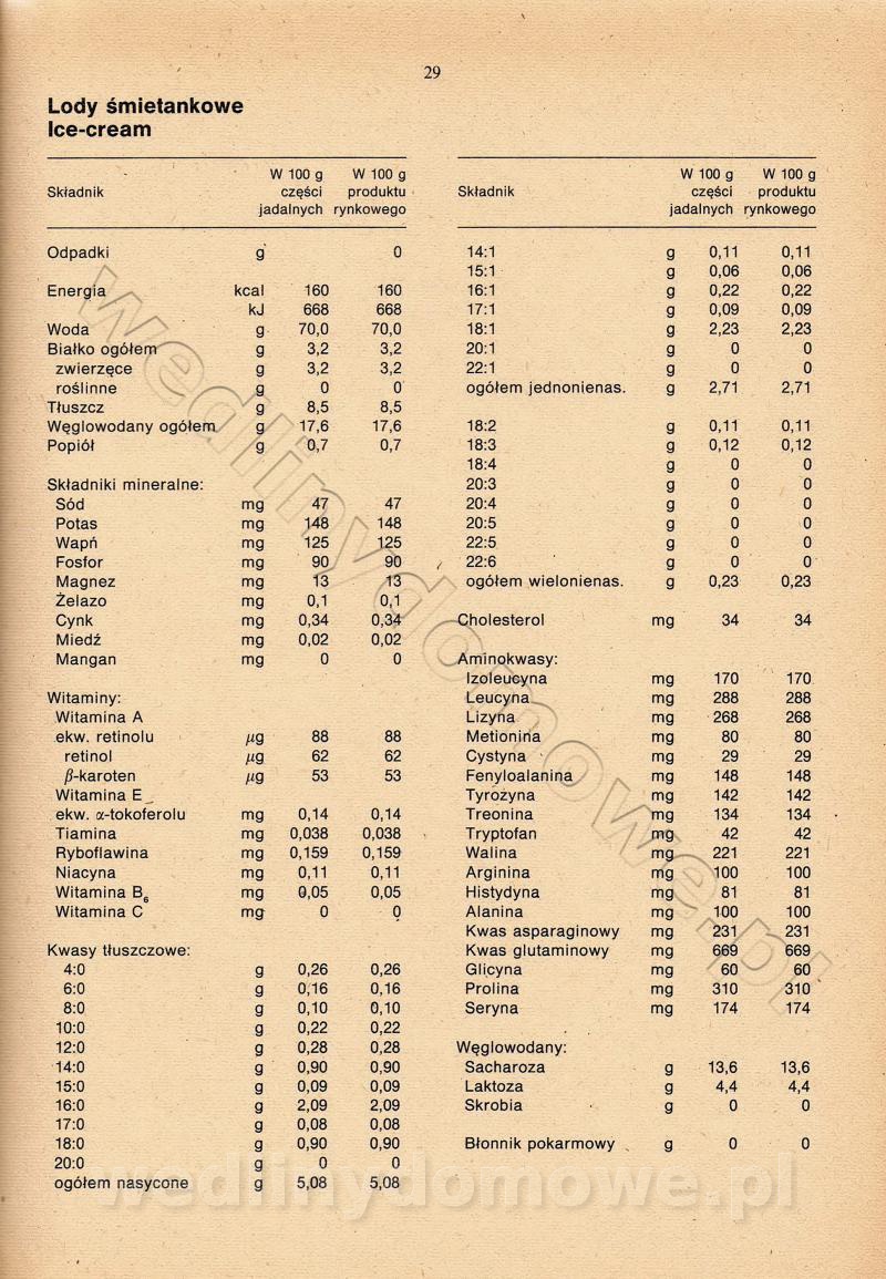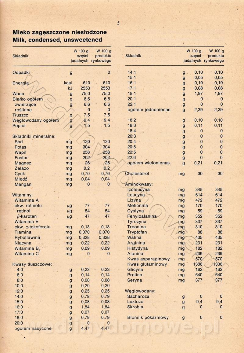 [Rok 1990] Produkty spożywcze. Skład i wartość odżywcza