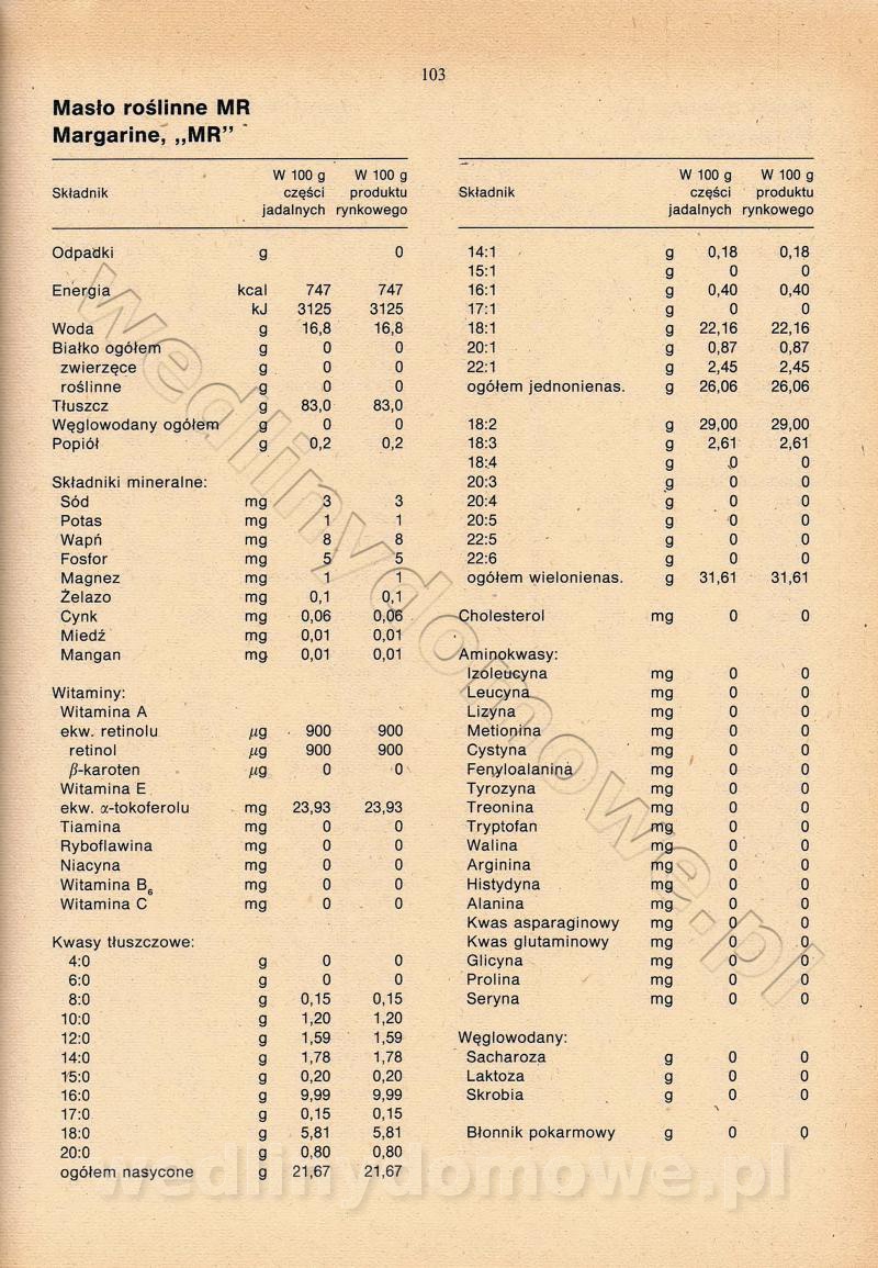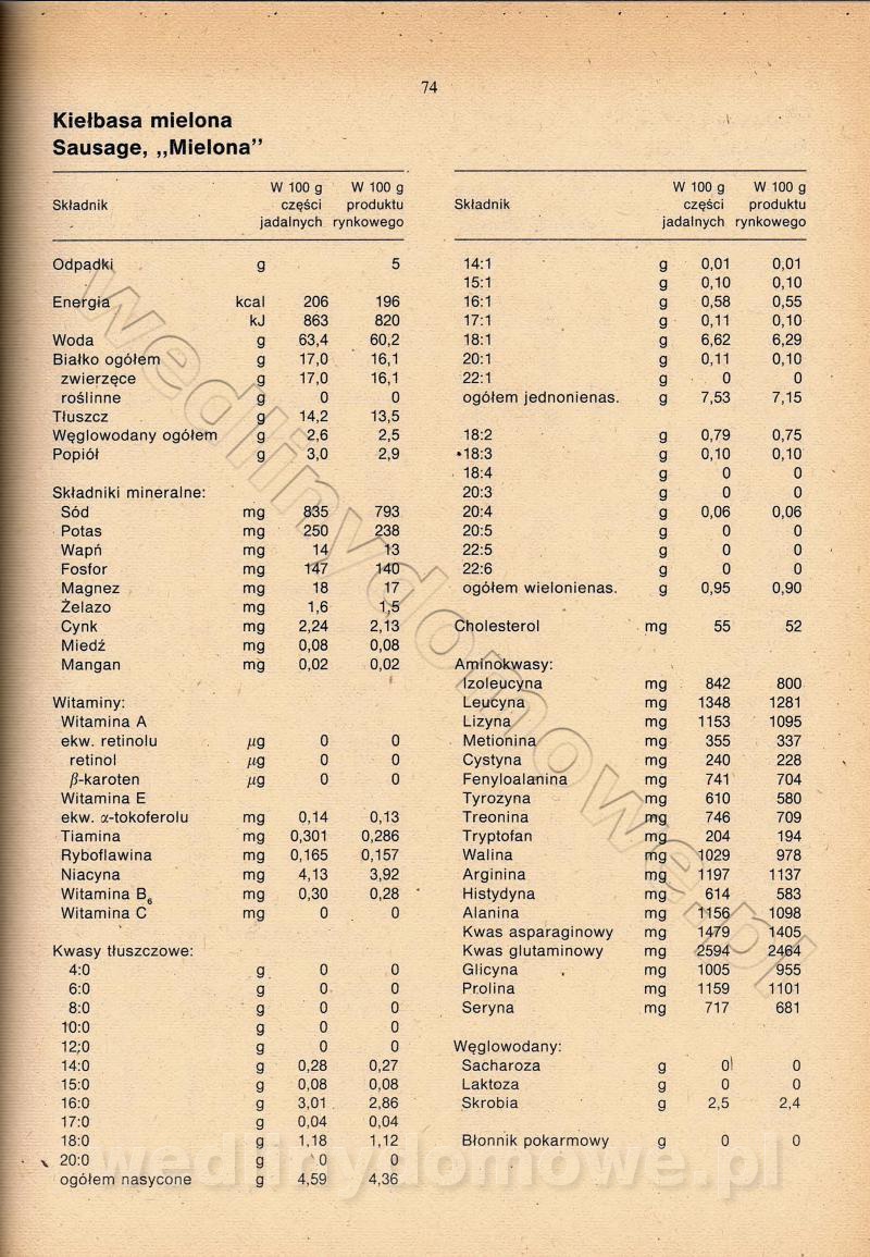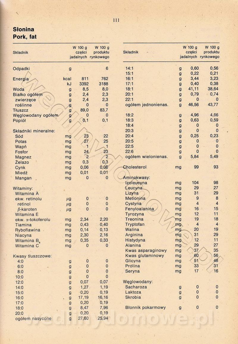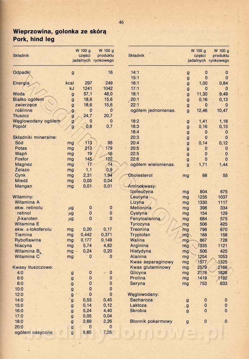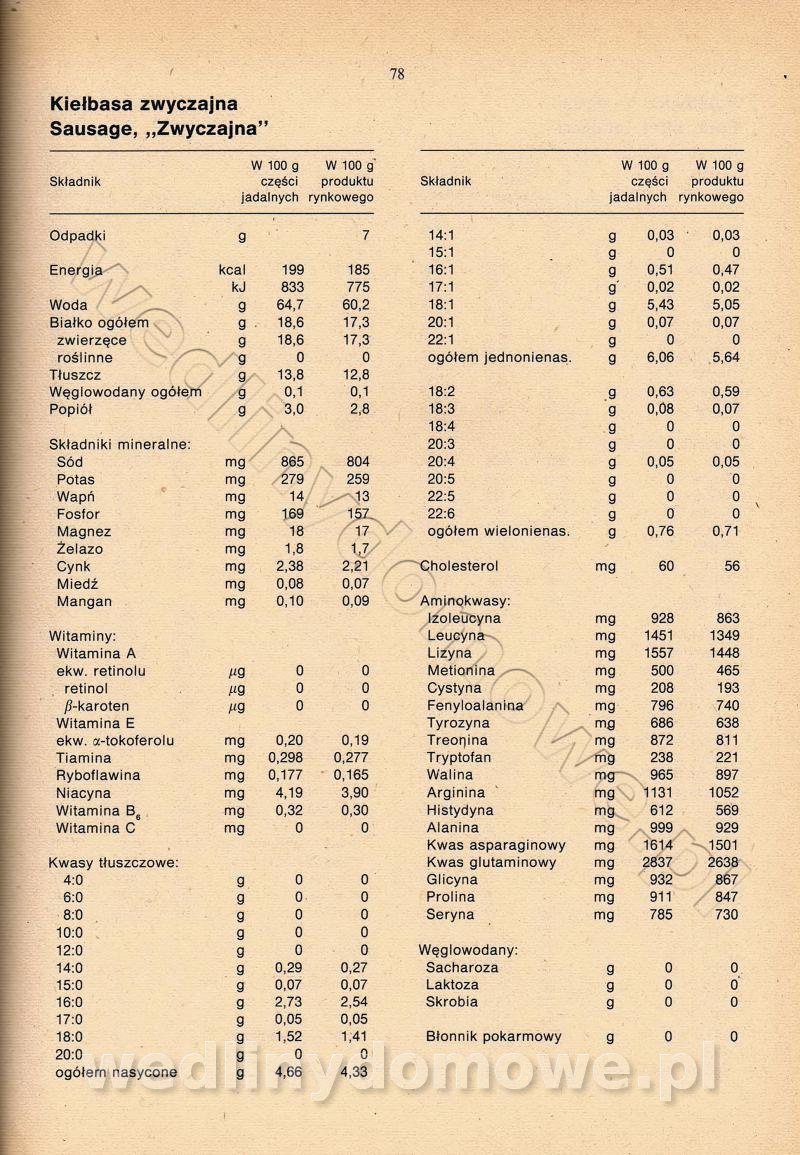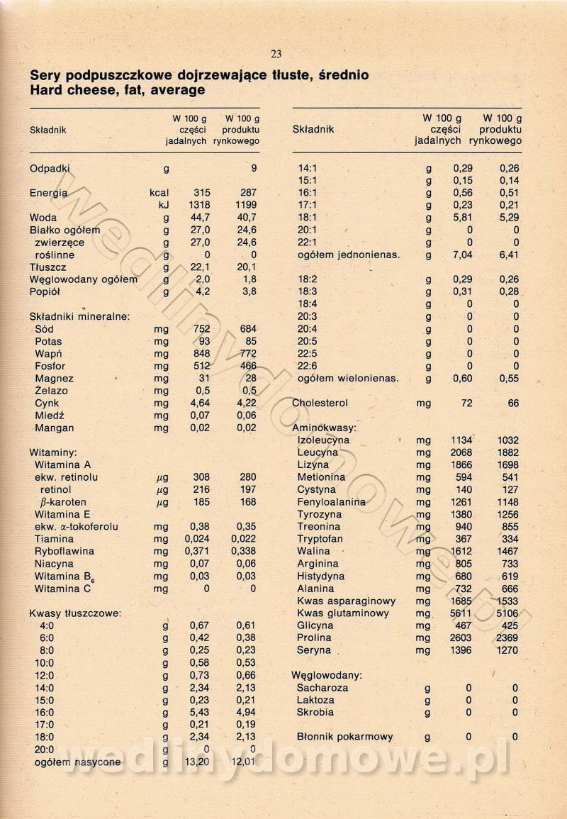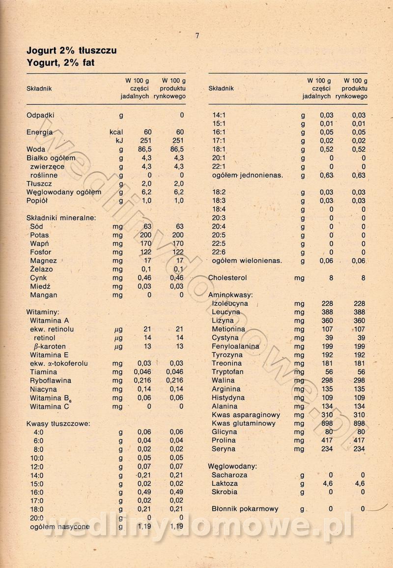 [Rok 1990] Produkty spożywcze. Skład i wartość odżywcza