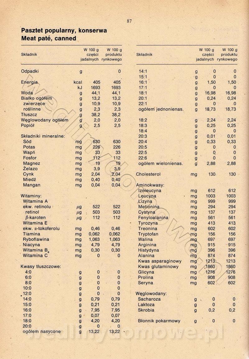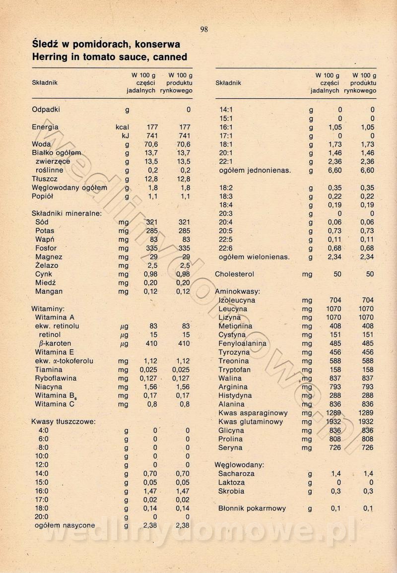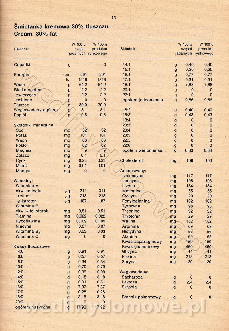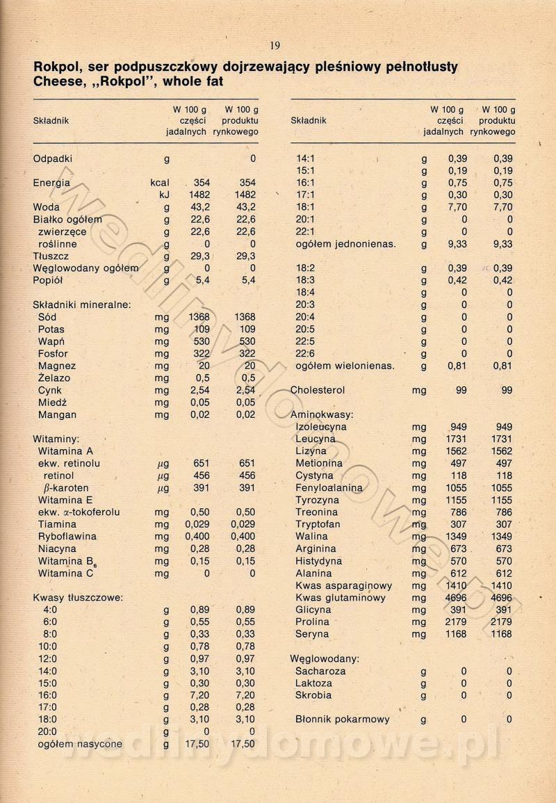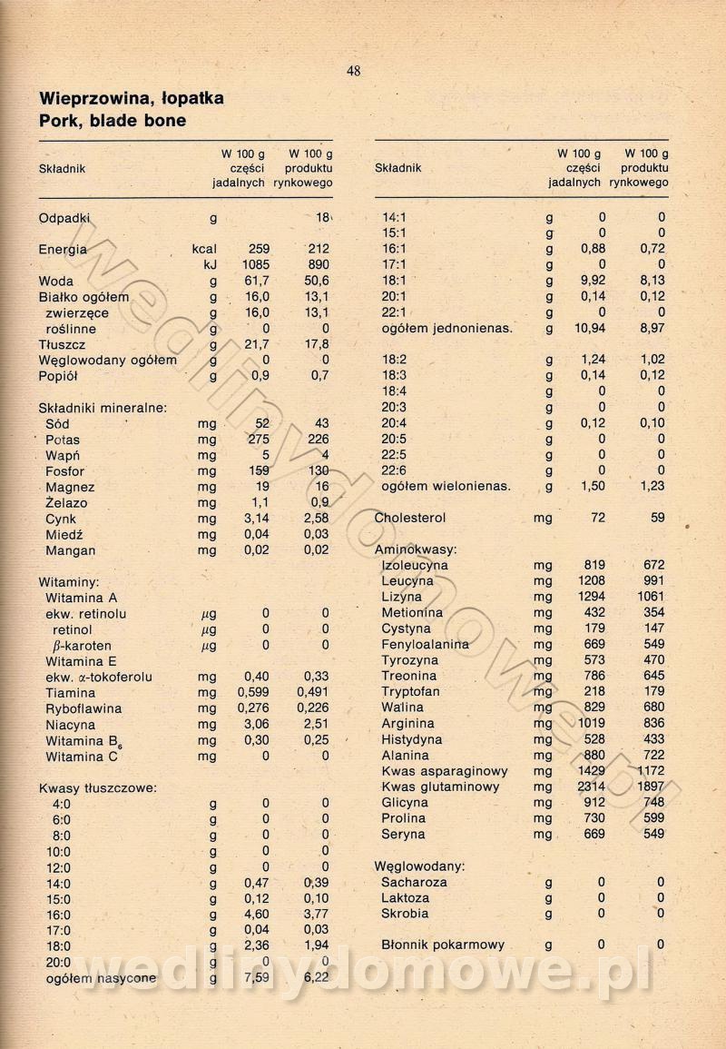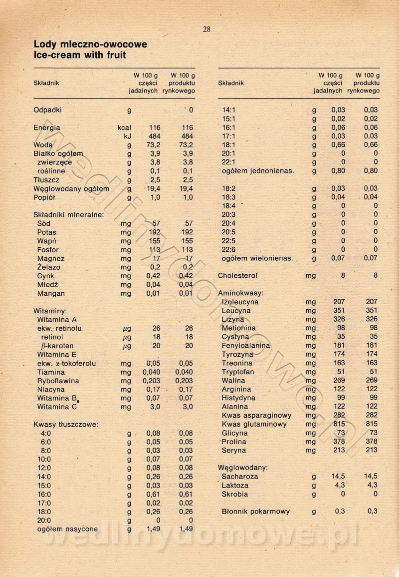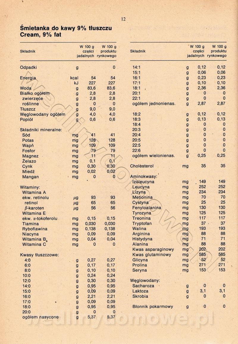 [Rok 1990] Produkty spożywcze. Skład i wartość odżywcza