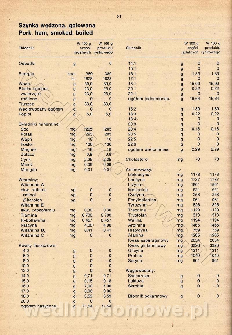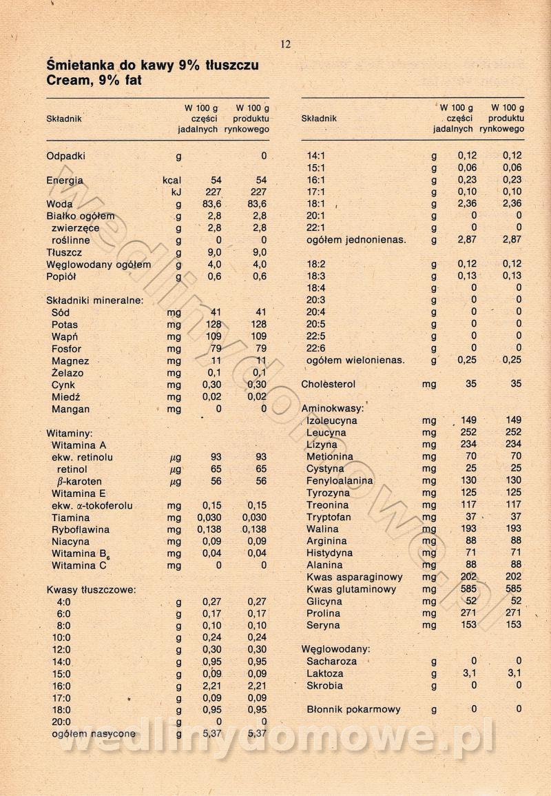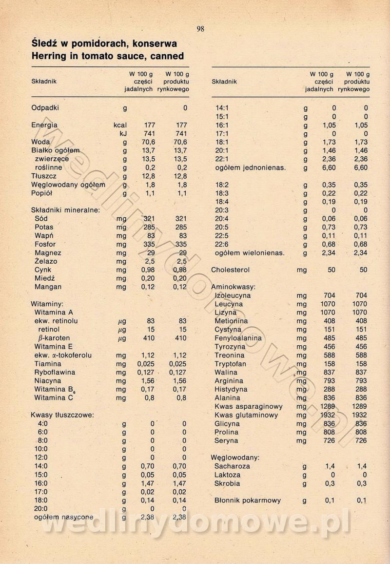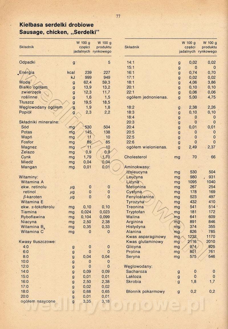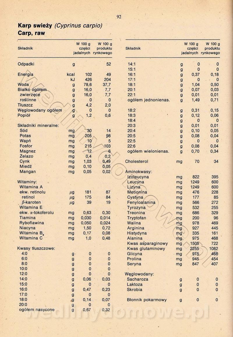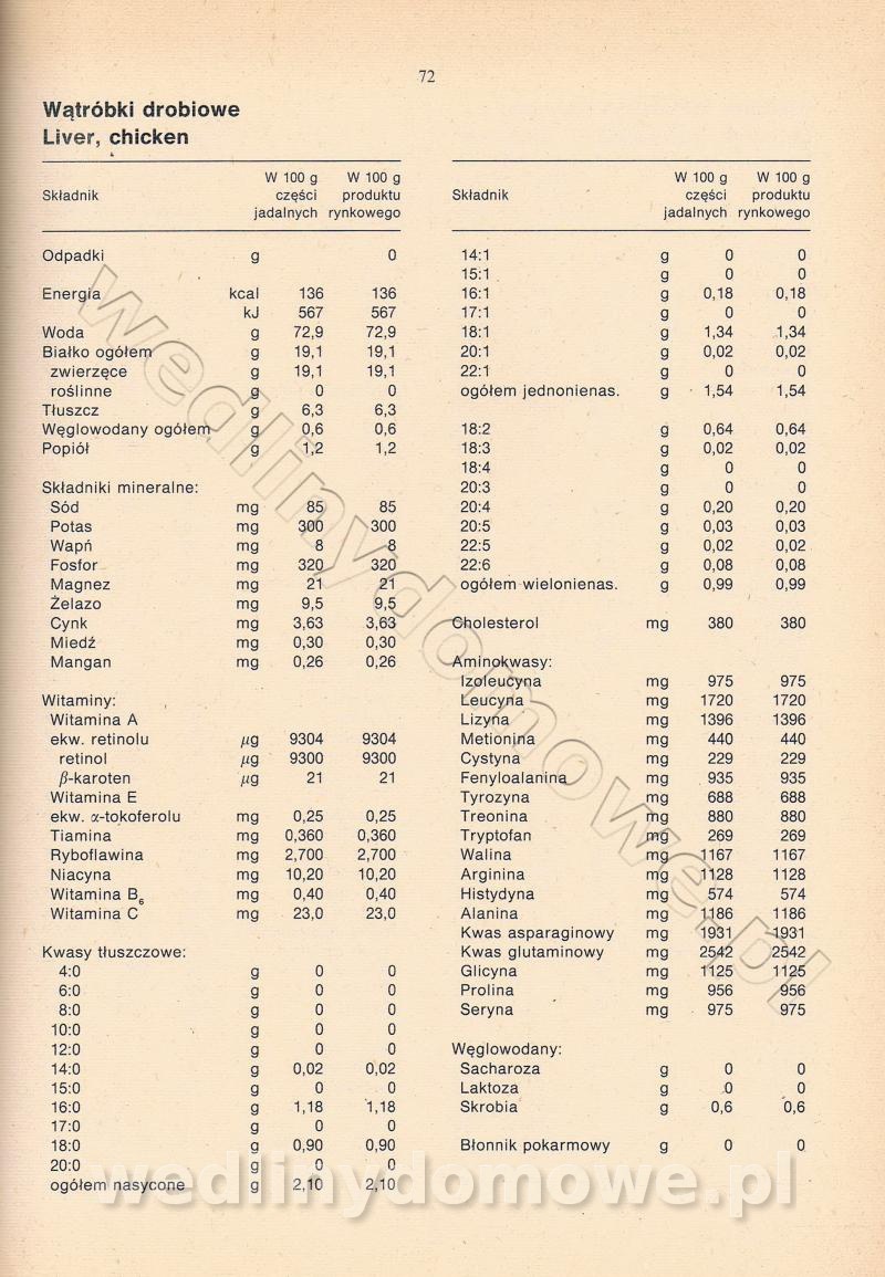 [Rok 1990] Produkty spożywcze. Skład i wartość odżywcza