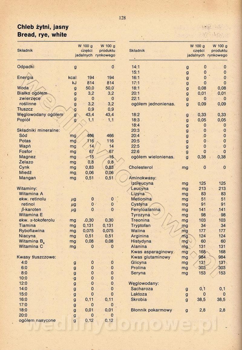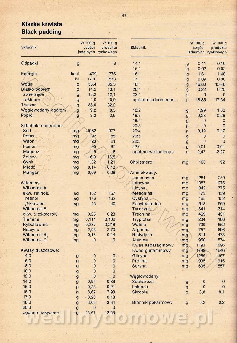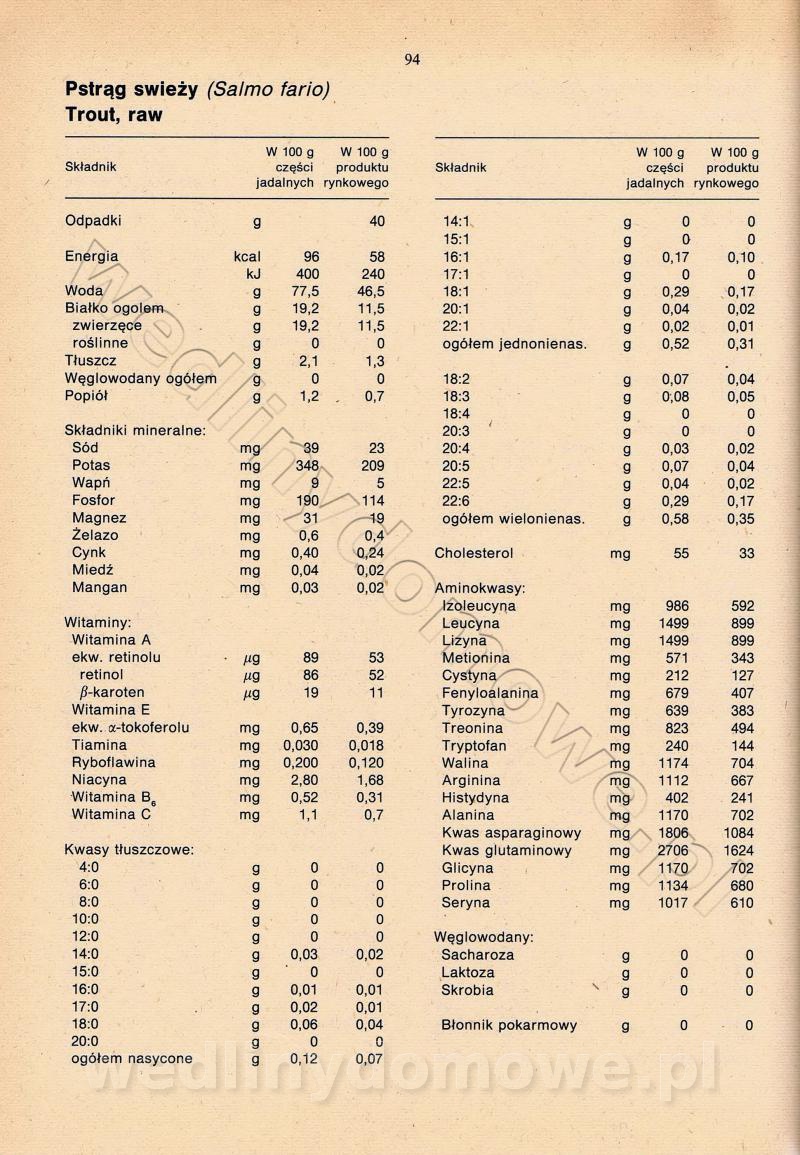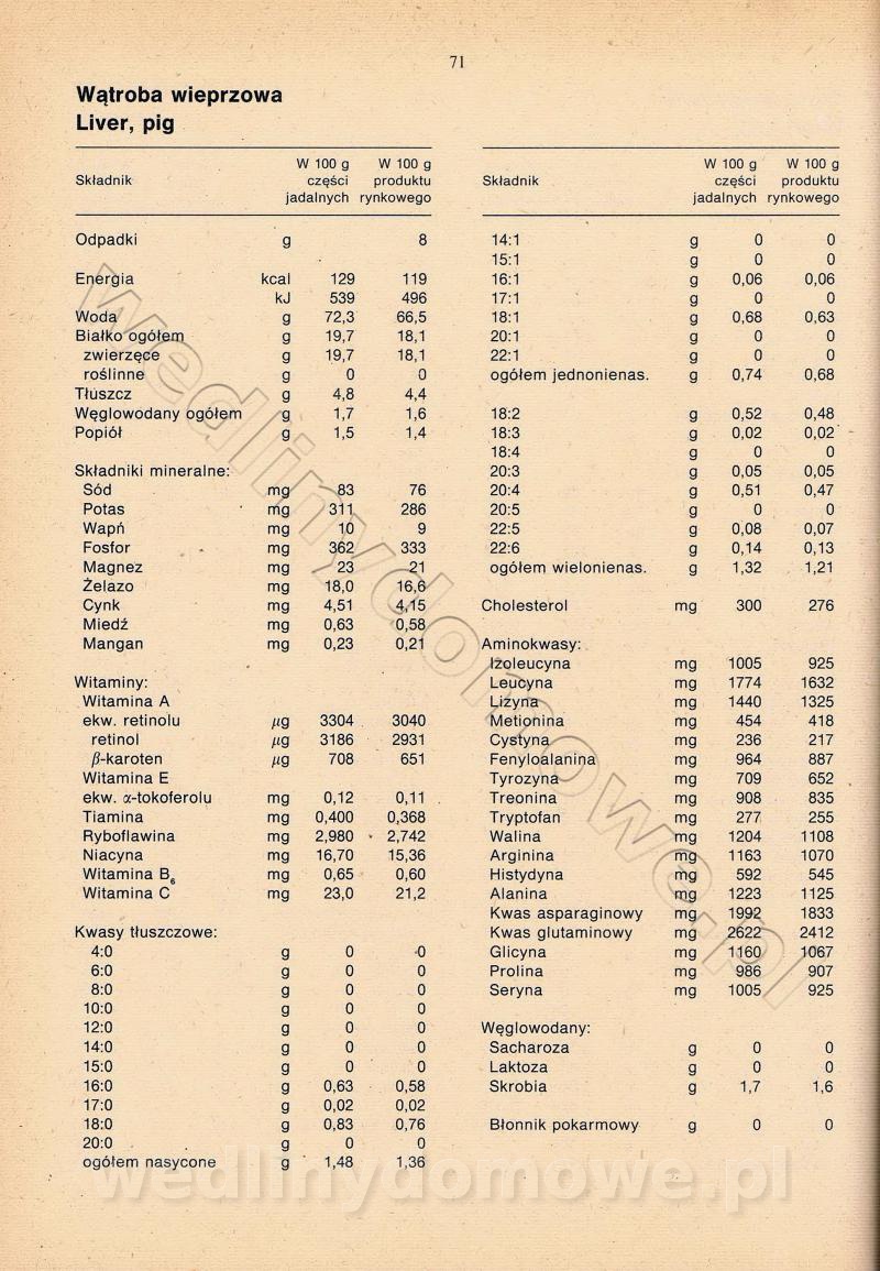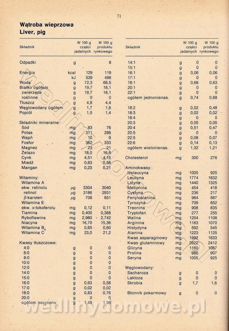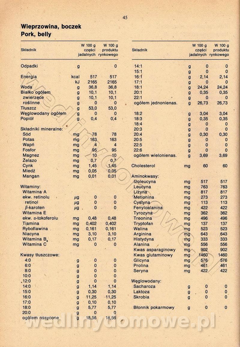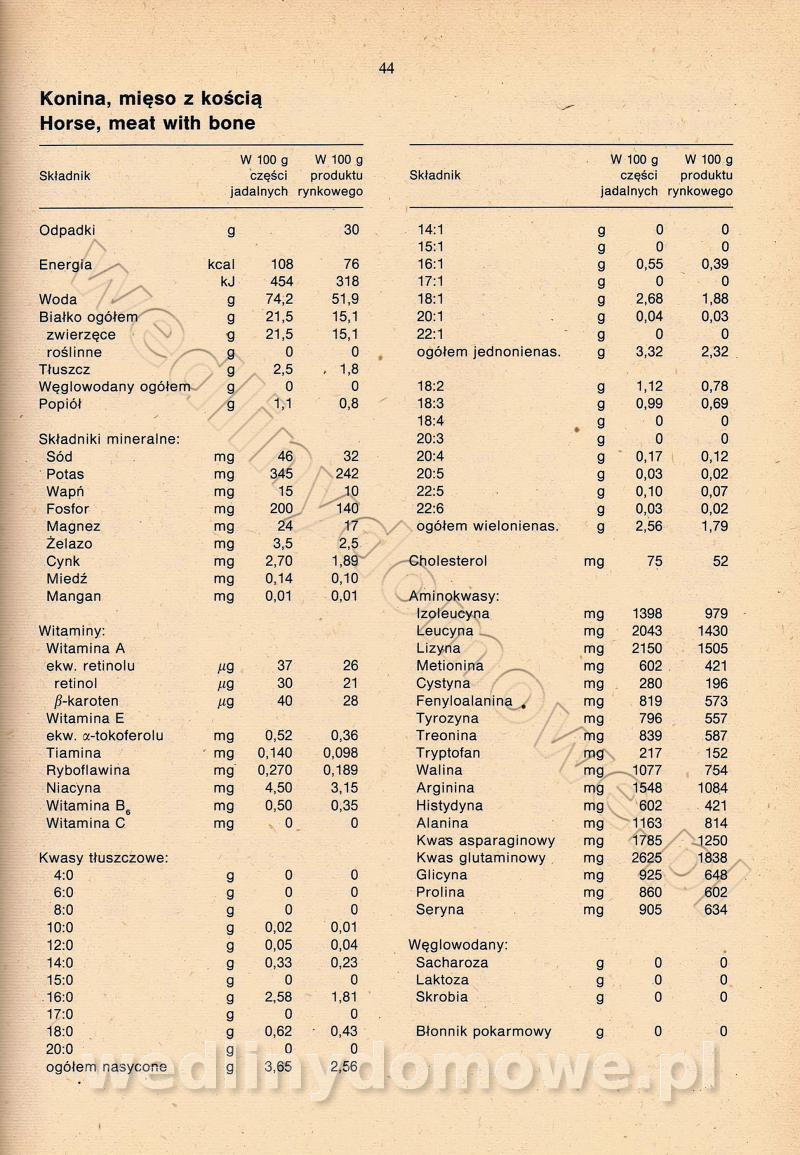 [Rok 1990] Produkty spożywcze. Skład i wartość odżywcza