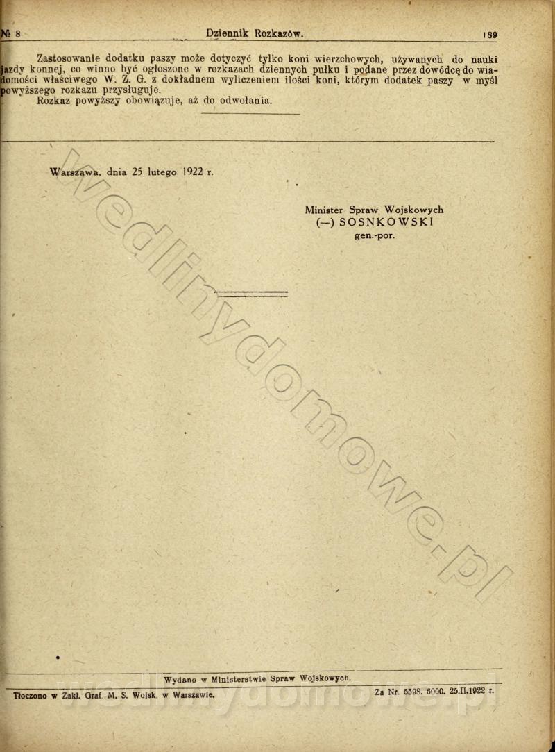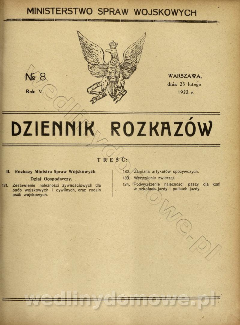 [Rok 1922] Ministerstwo Spraw Wojskowych. Dziennik Rozkazów