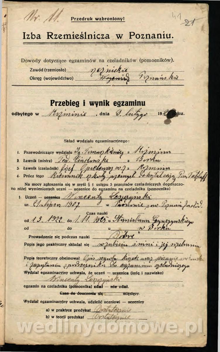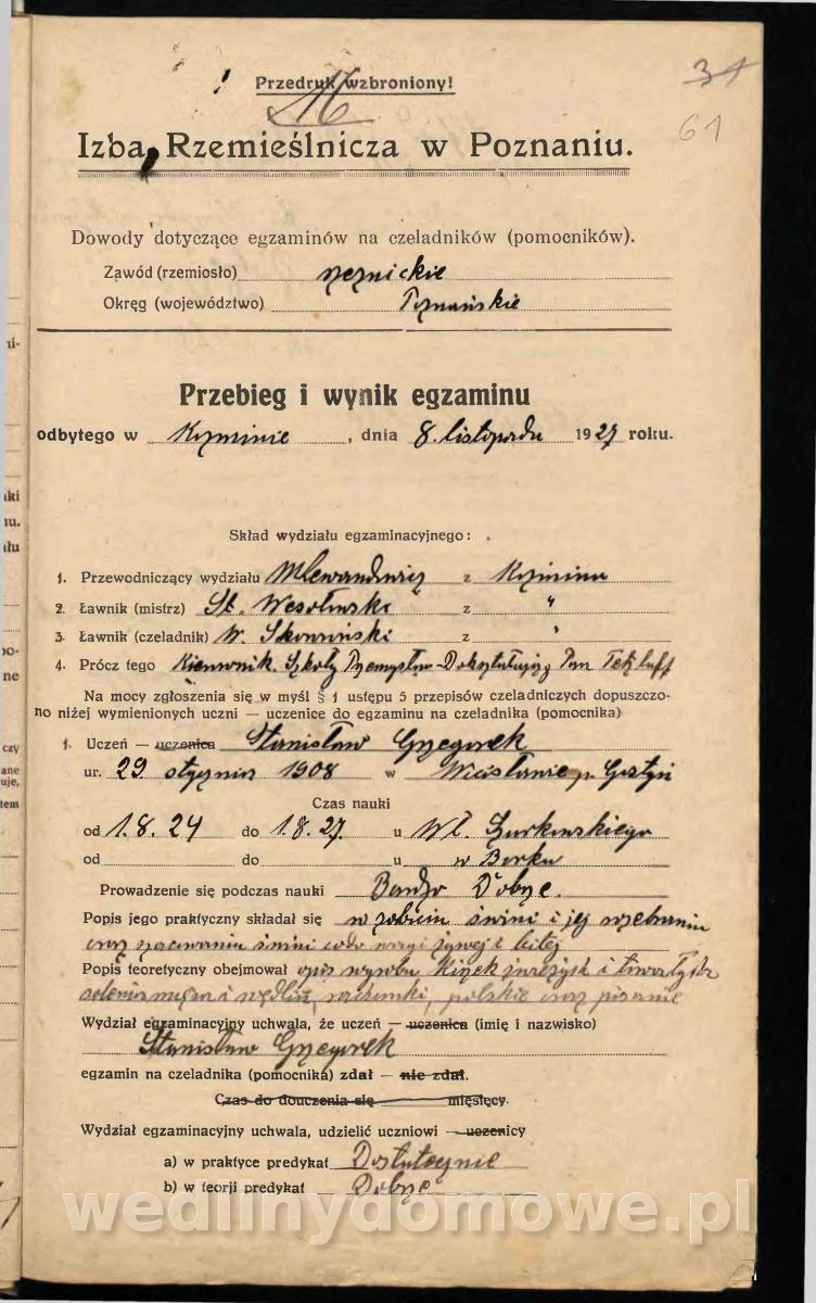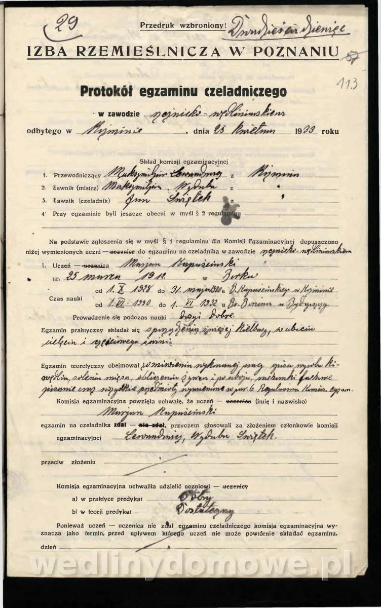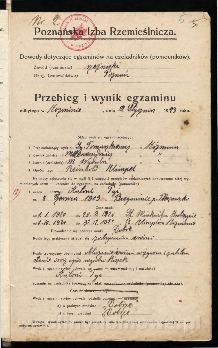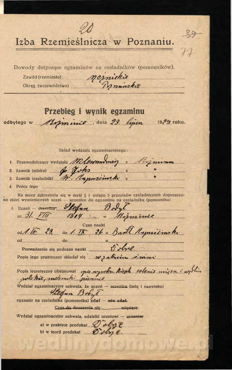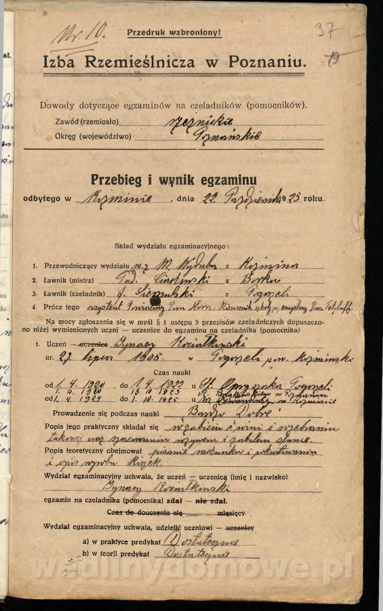 Przedstawiam bardzo unikalny materiał. Jest to zbiór protokółów egzaminacyjnych Poznańskiej Izby Rzemieślniczej z lat dwudziestych ubiegłego wieku. Materiały poddałem jedynie niewielkim zabiegom technicznym, aby nie umniejszać ich oryginalności. Bardzo ciekawe dokumenty - polecam.