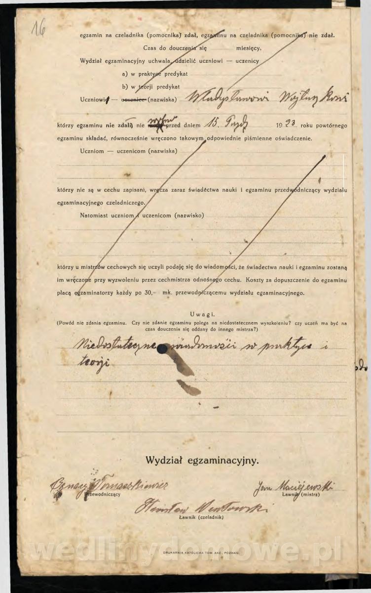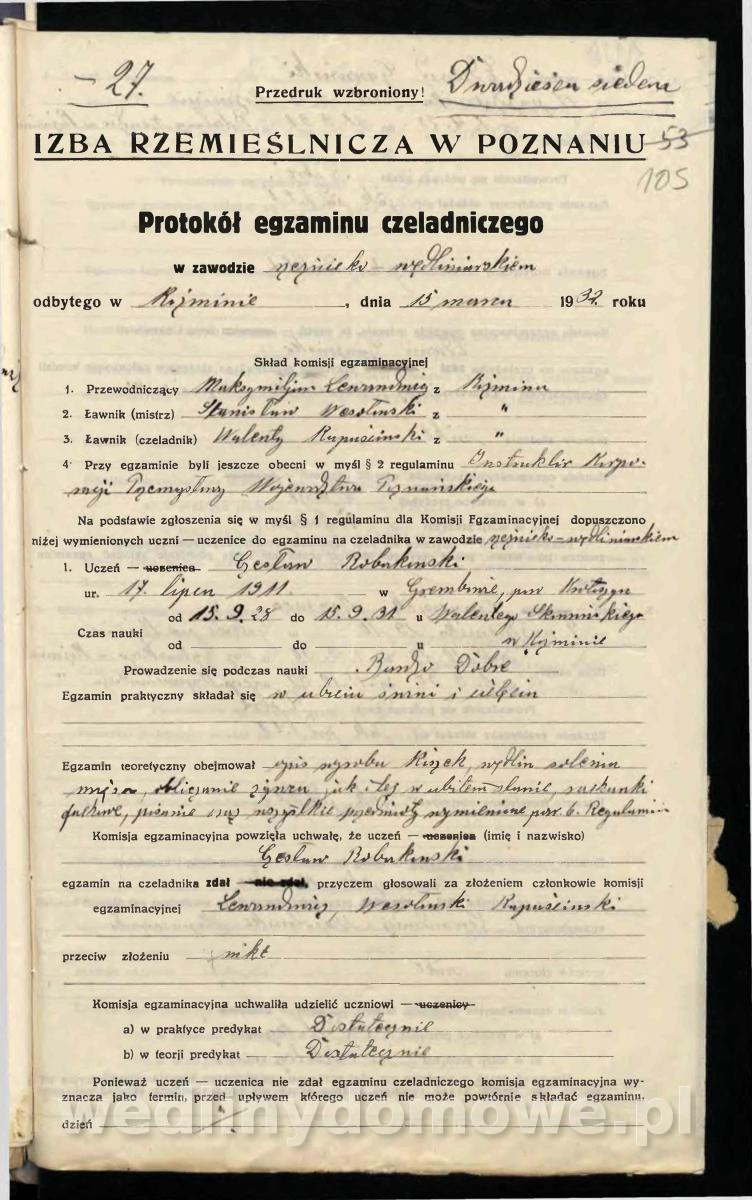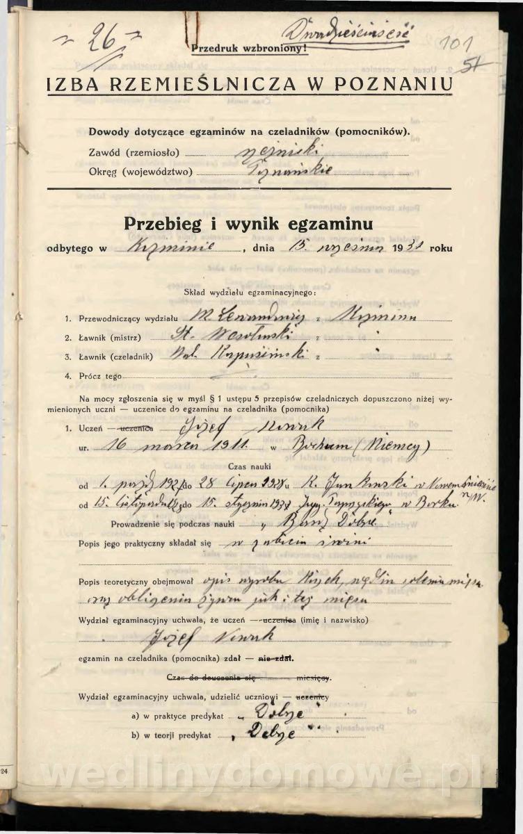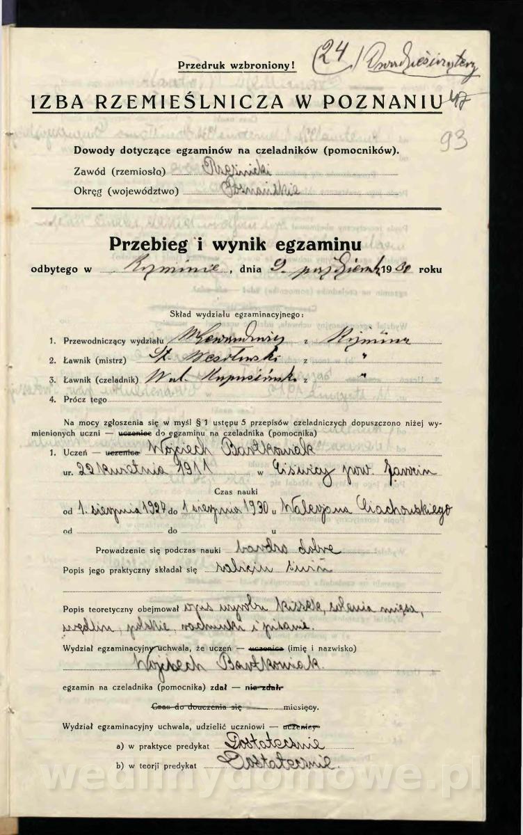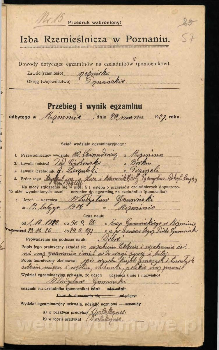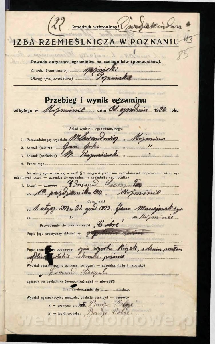 Przedstawiam bardzo unikalny materiał. Jest to zbiór protokółów egzaminacyjnych Poznańskiej Izby Rzemieślniczej z lat dwudziestych ubiegłego wieku. Materiały poddałem jedynie niewielkim zabiegom technicznym, aby nie umniejszać ich oryginalności. Bardzo ciekawe dokumenty - polecam.