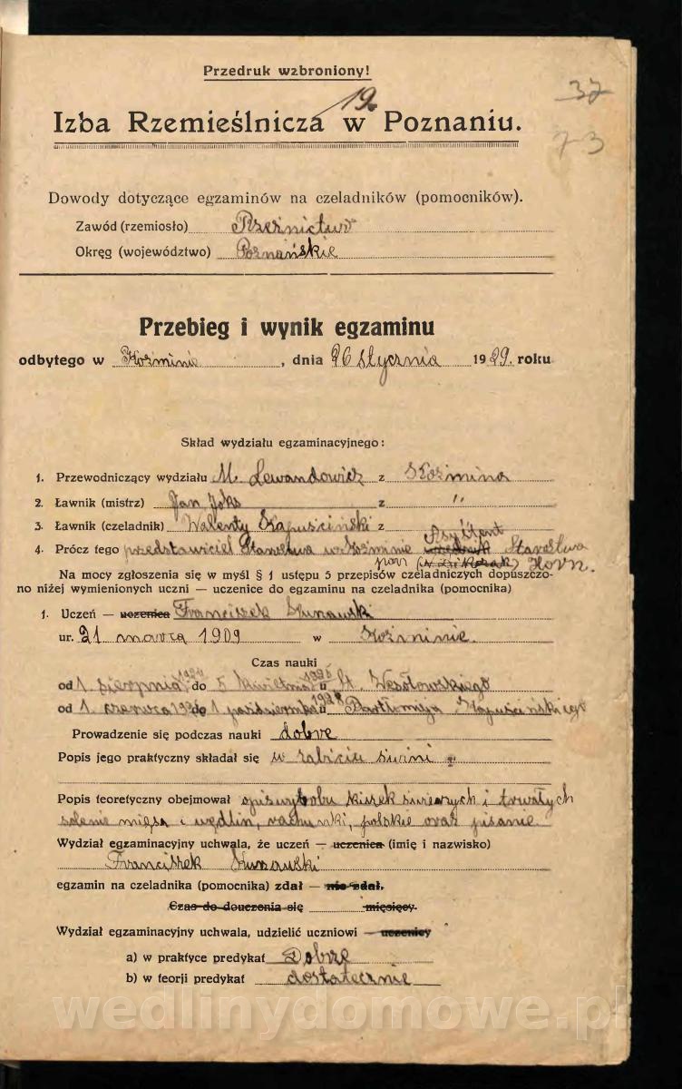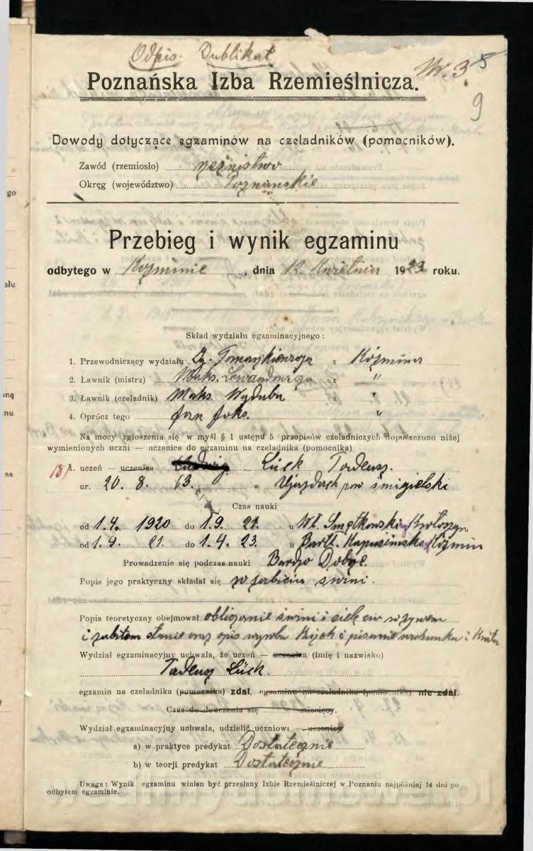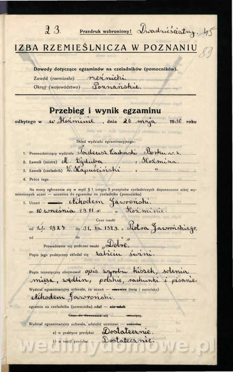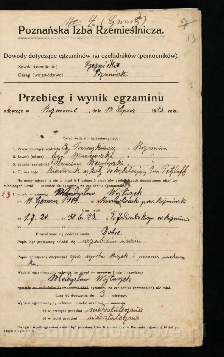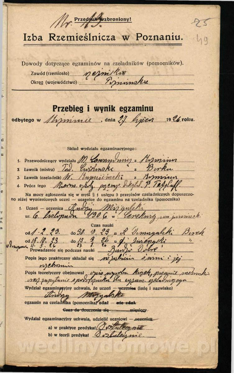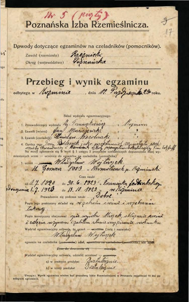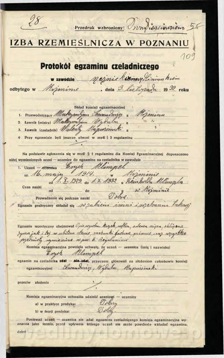 Przedstawiam bardzo unikalny materiał. Jest to zbiór protokółów egzaminacyjnych Poznańskiej Izby Rzemieślniczej z lat dwudziestych ubiegłego wieku. Materiały poddałem jedynie niewielkim zabiegom technicznym, aby nie umniejszać ich oryginalności. Bardzo ciekawe dokumenty - polecam.