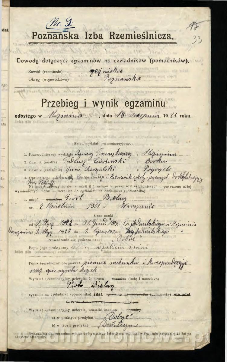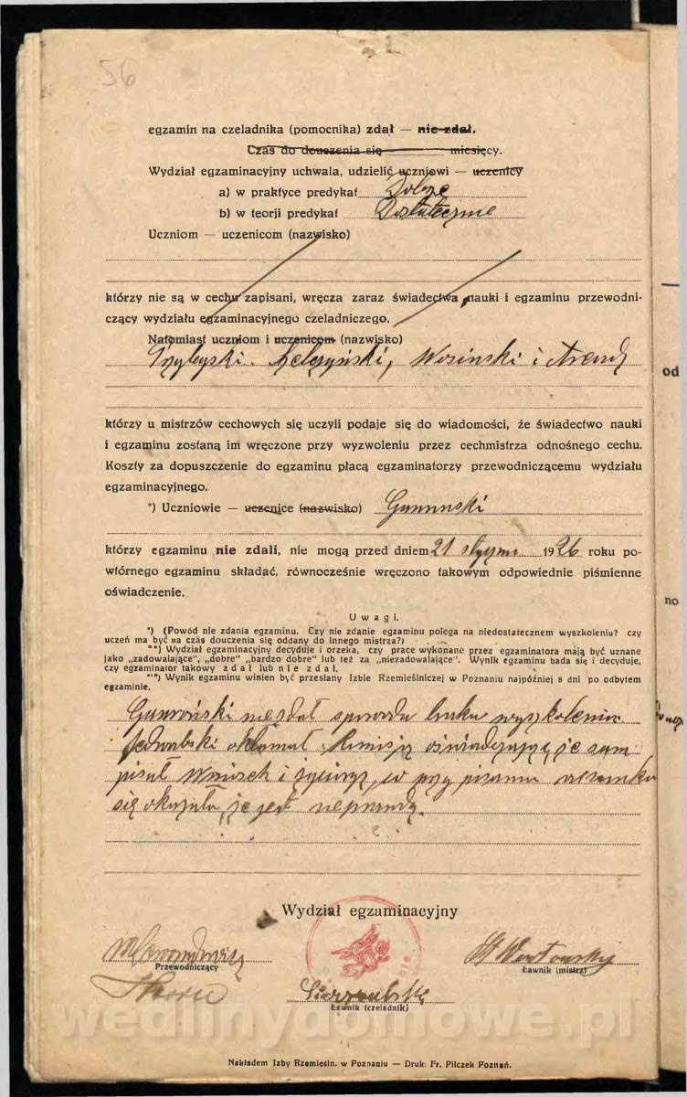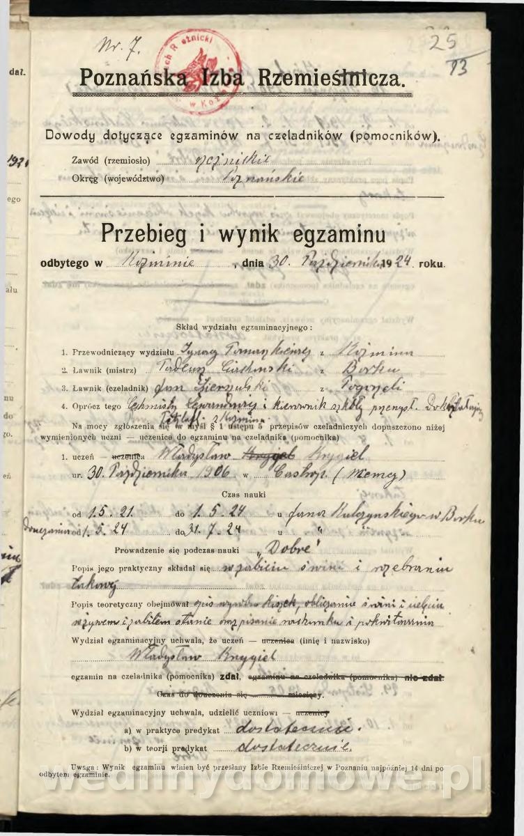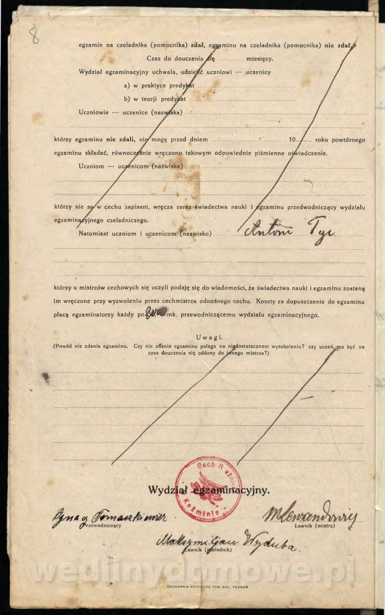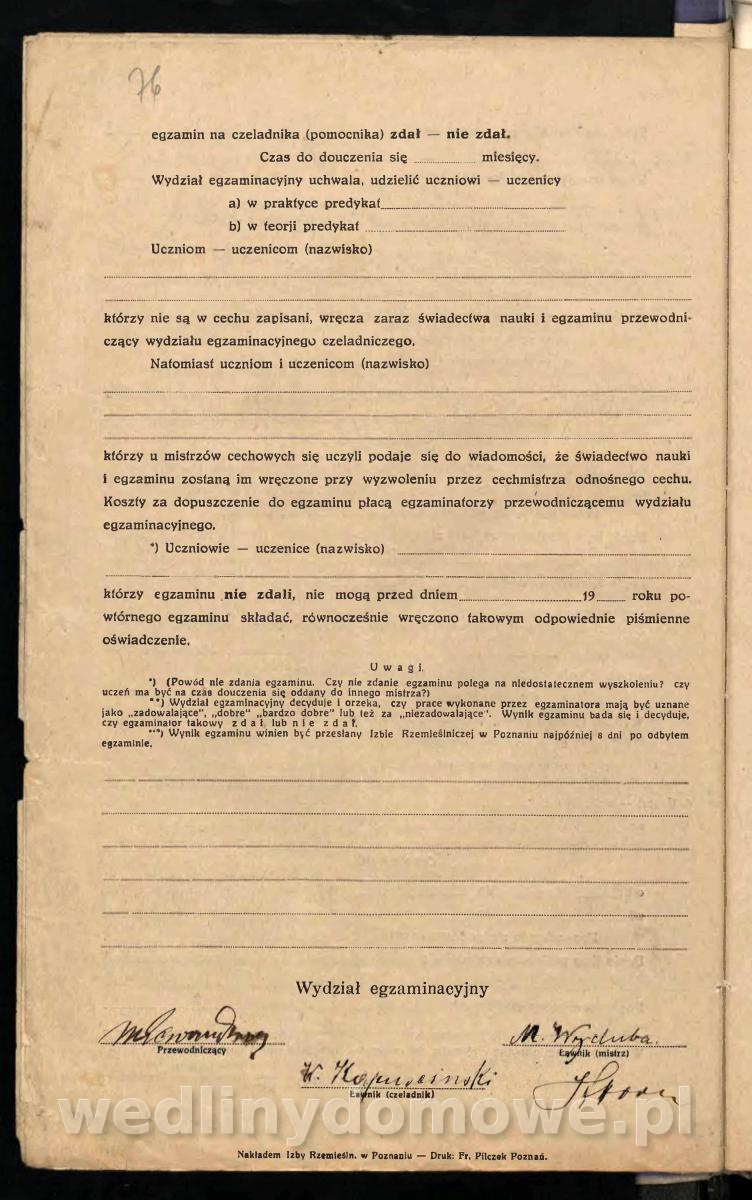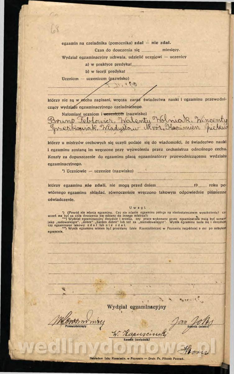 Przedstawiam bardzo unikalny materiał. Jest to zbiór protokółów egzaminacyjnych Poznańskiej Izby Rzemieślniczej z lat dwudziestych ubiegłego wieku. Materiały poddałem jedynie niewielkim zabiegom technicznym, aby nie umniejszać ich oryginalności. Bardzo ciekawe dokumenty - polecam.