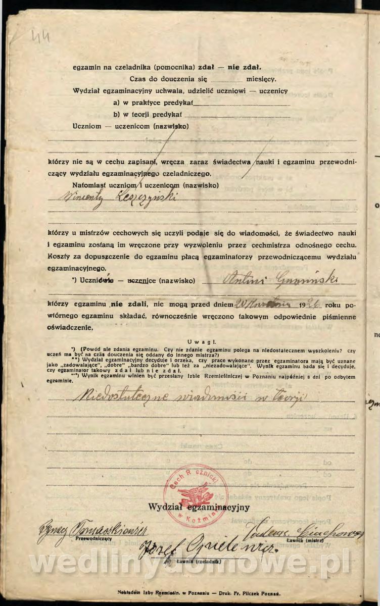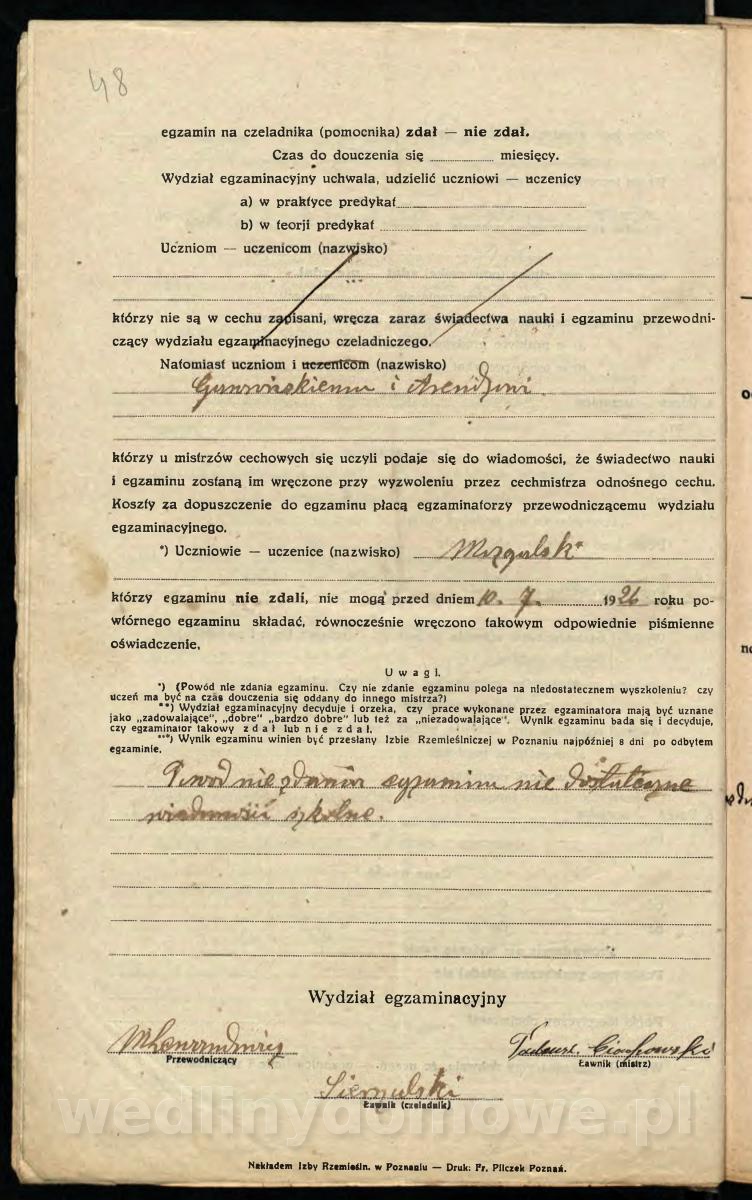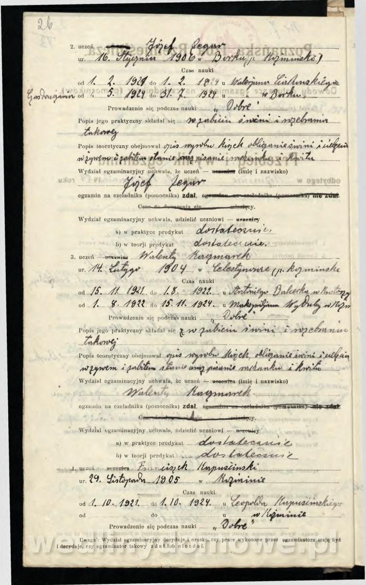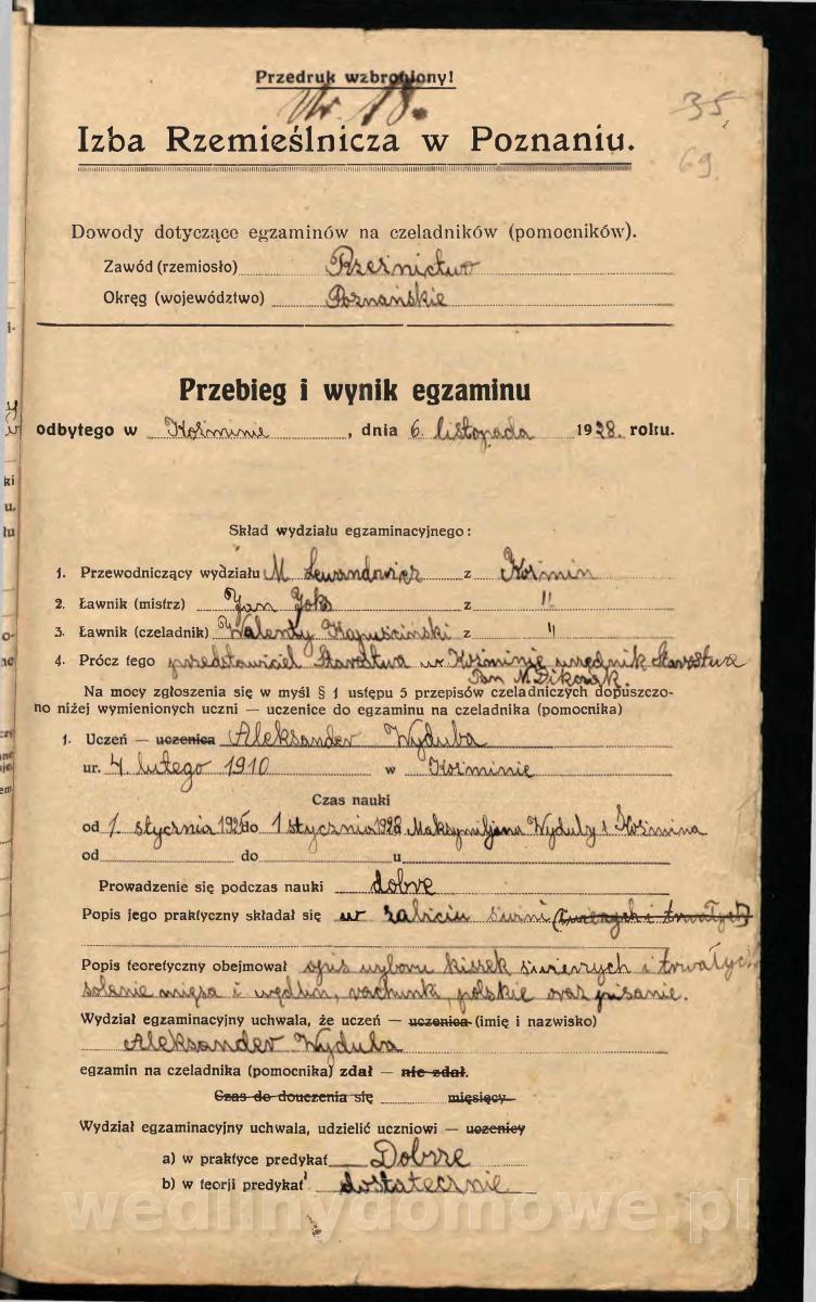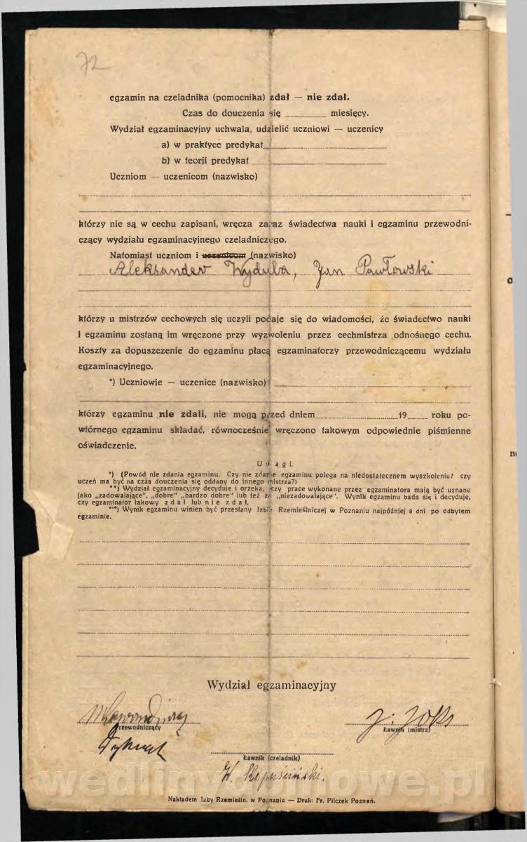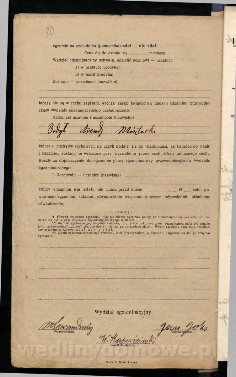 Przedstawiam bardzo unikalny materiał. Jest to zbiór protokółów egzaminacyjnych Poznańskiej Izby Rzemieślniczej z lat dwudziestych ubiegłego wieku. Materiały poddałem jedynie niewielkim zabiegom technicznym, aby nie umniejszać ich oryginalności. Bardzo ciekawe dokumenty - polecam.