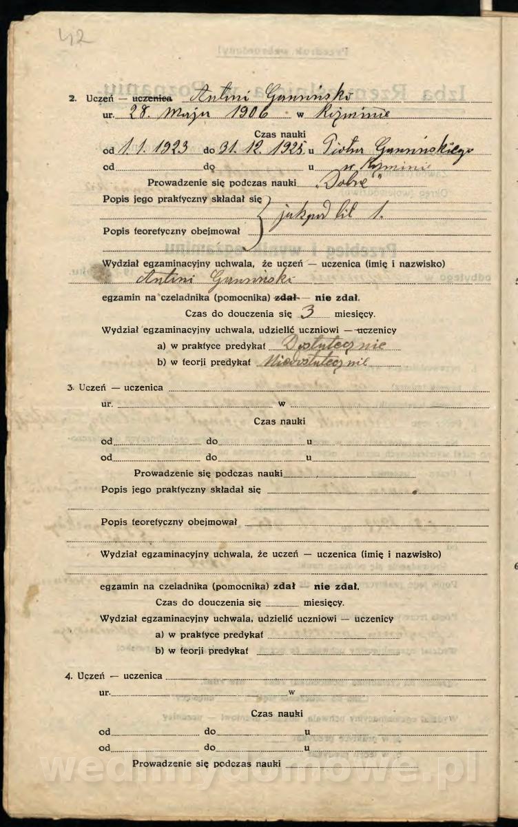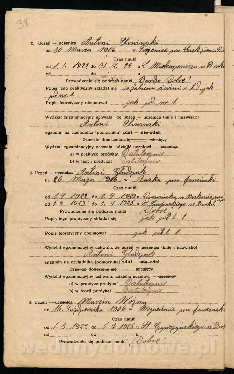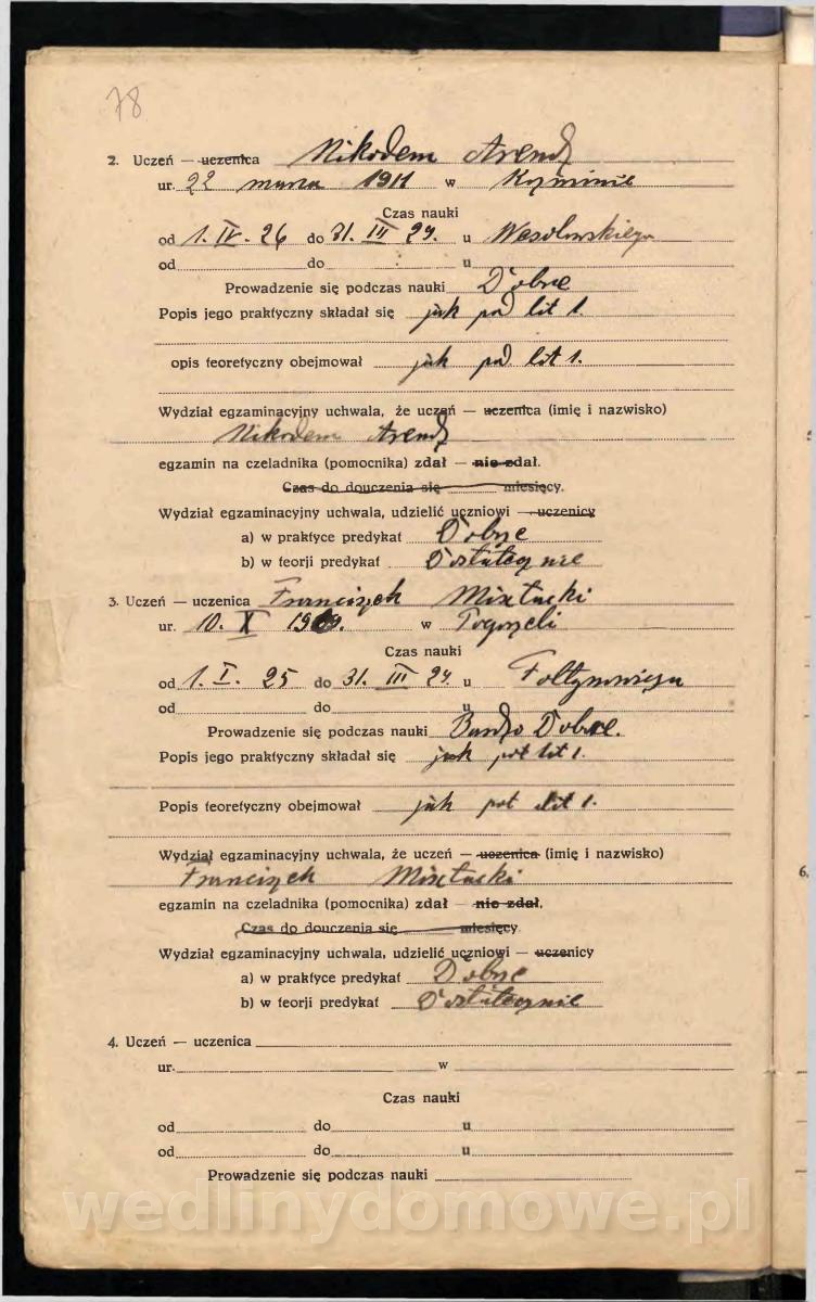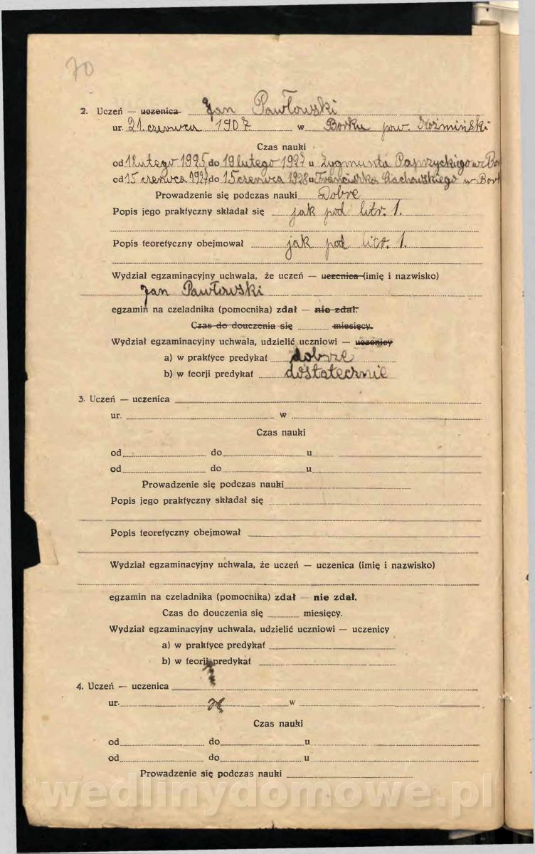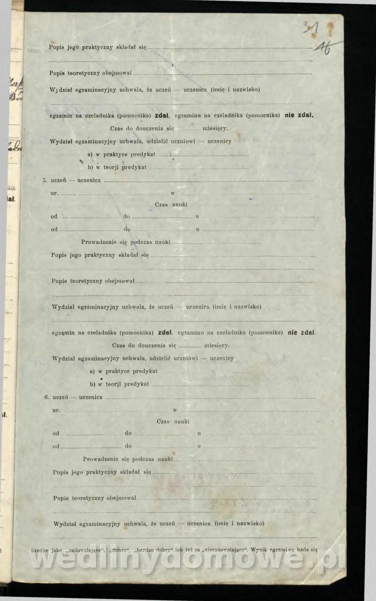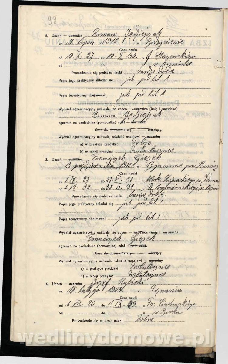 Przedstawiam bardzo unikalny materiał. Jest to zbiór protokółów egzaminacyjnych Poznańskiej Izby Rzemieślniczej z lat dwudziestych ubiegłego wieku. Materiały poddałem jedynie niewielkim zabiegom technicznym, aby nie umniejszać ich oryginalności. Bardzo ciekawe dokumenty - polecam.