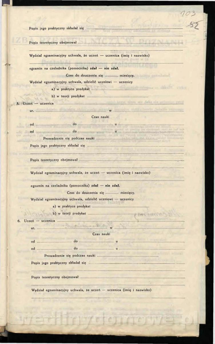 Poznańska Izba Rzemieślnicza. Protokóły egzaminów na czeladników