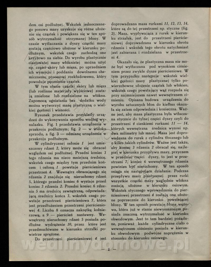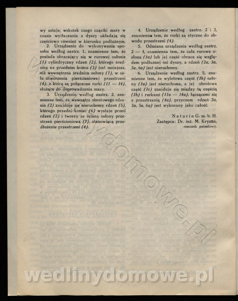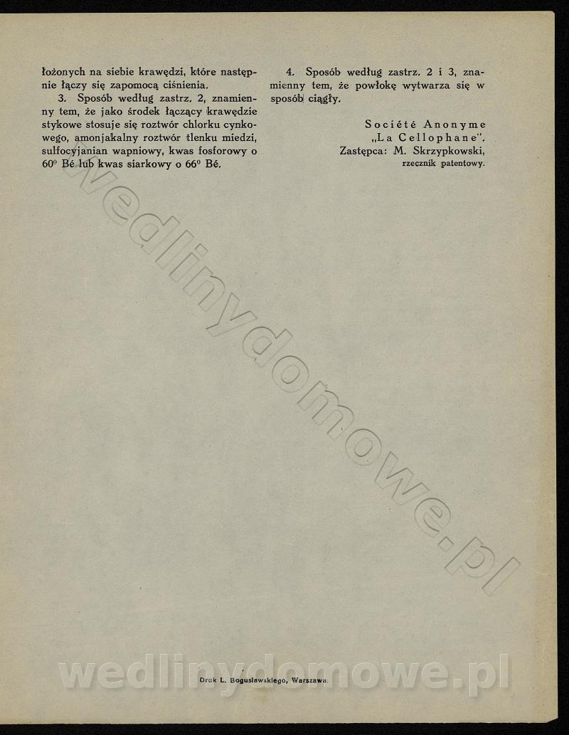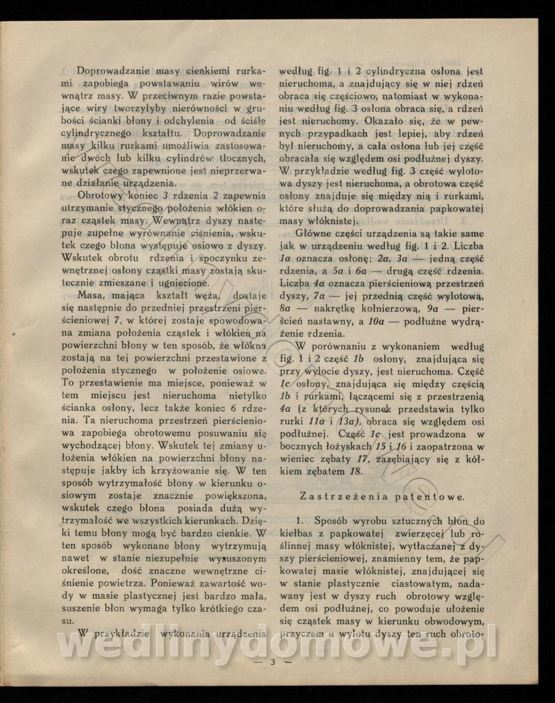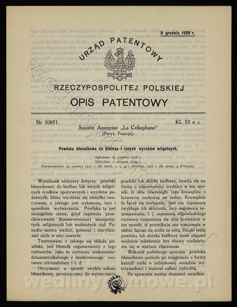 2. Patent nr 1 z dnia 04 kwietnia 1934 r.: Sposób wyrobu sztucznych błon do kiełbas oraz urządzenie do wykonywania tego sposobu. Patent nr 2 z dnia 15 czerwca 1932 r.: Sposób wyrobu trwałych kiełbas. Patent nr 3 z dnia 05 grudnia 1929 r.: Powłoka błonnikowa do kiełbas i innych wyrobów wilgotnych