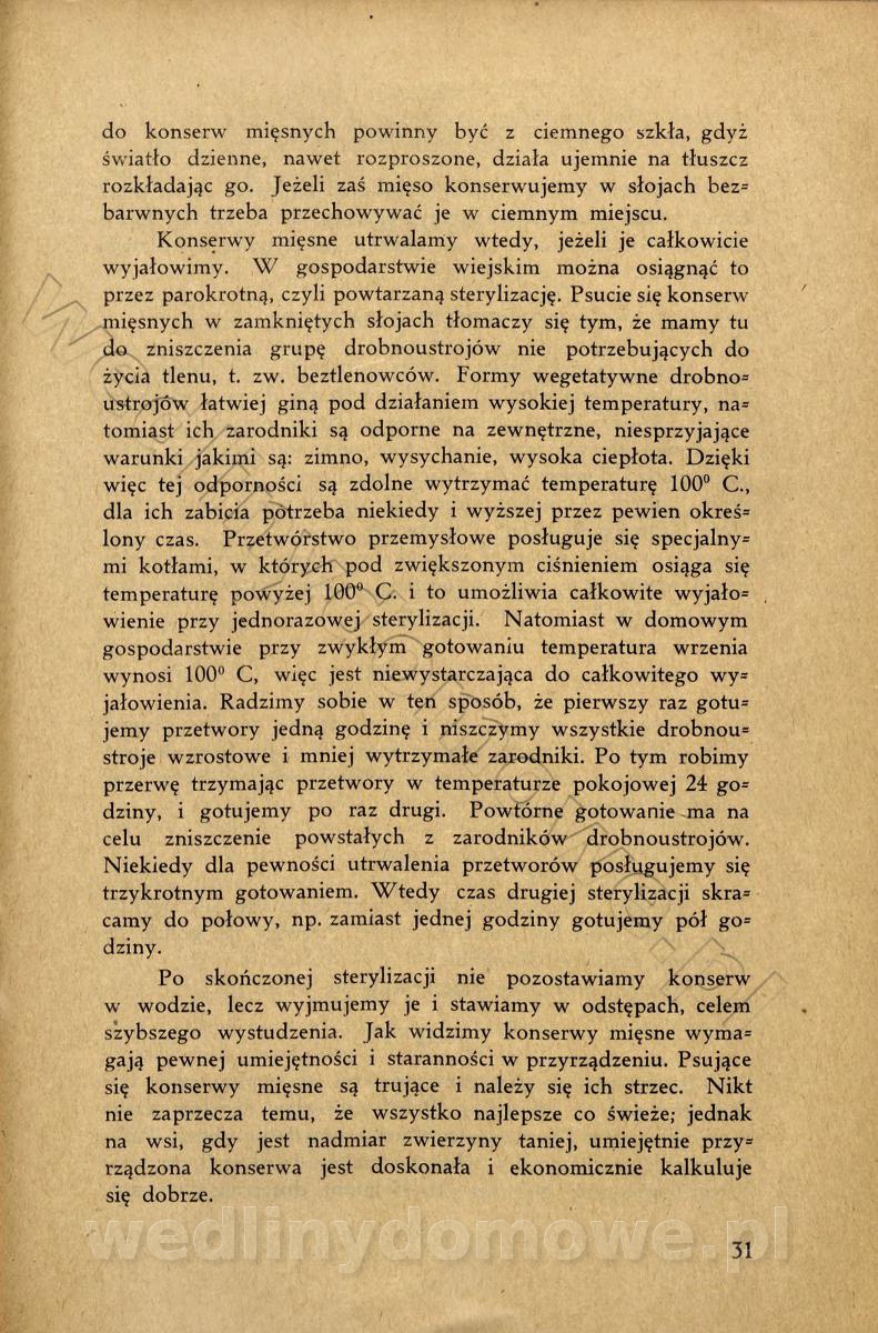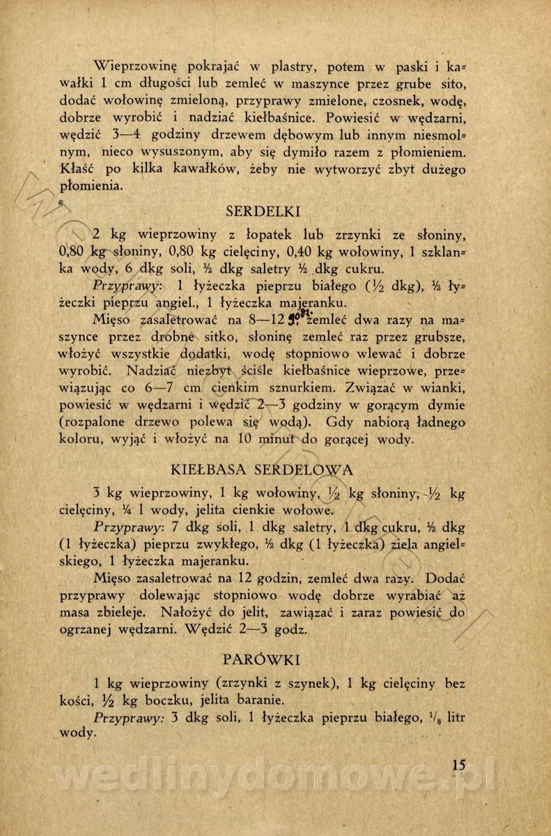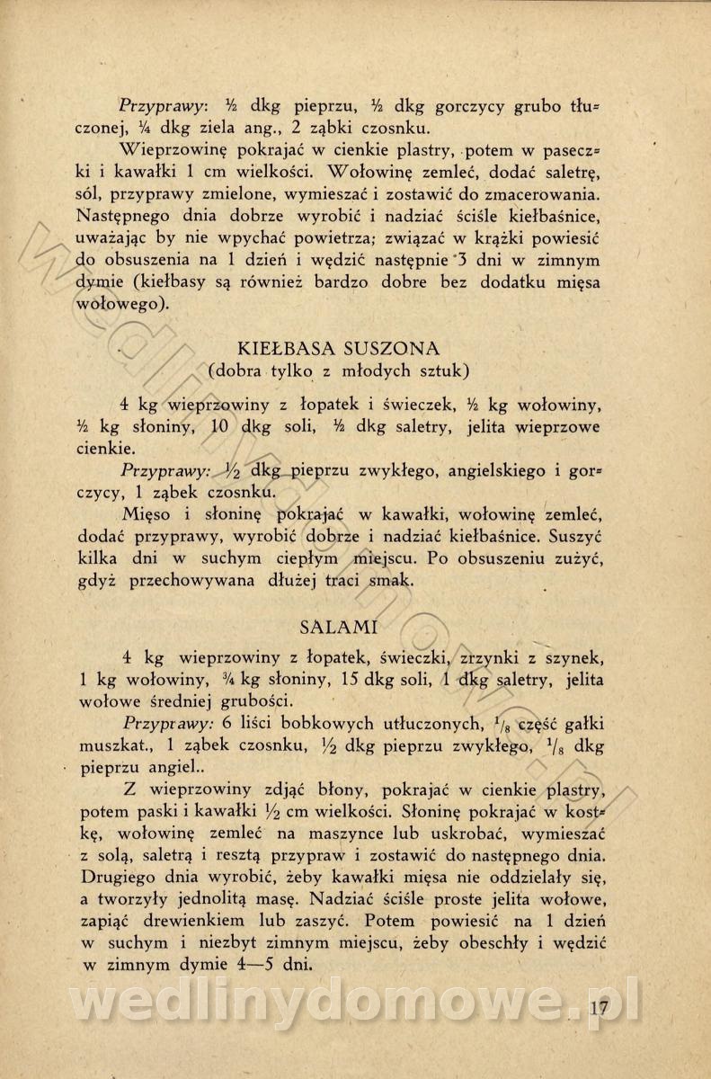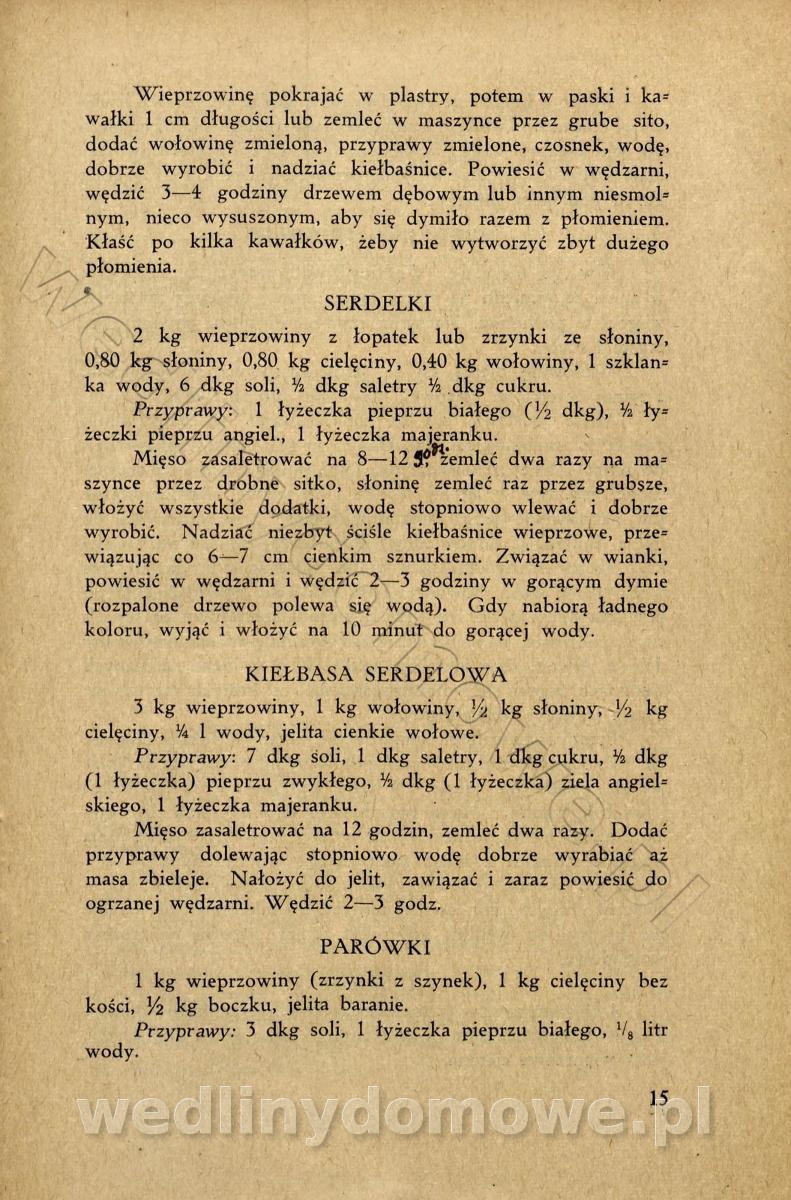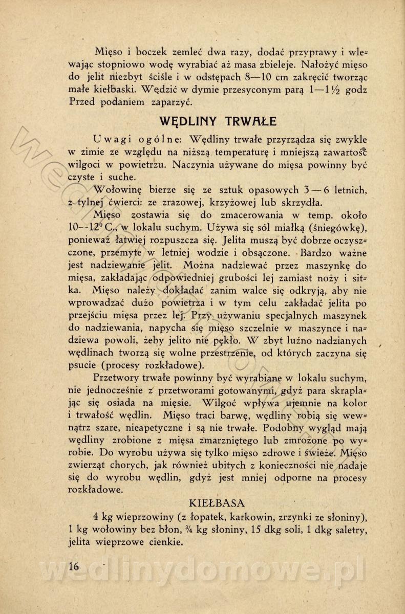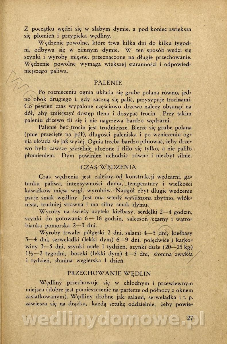 16. Dawniej, kiedy jeszcze nie było komór wędzarniczych z prawdziwego zdarzenia, zalecano (i zresztą metodę tę stosowano w praktyce) polewanie od wewnątrz ścian (ściany) wędzarni wodą.