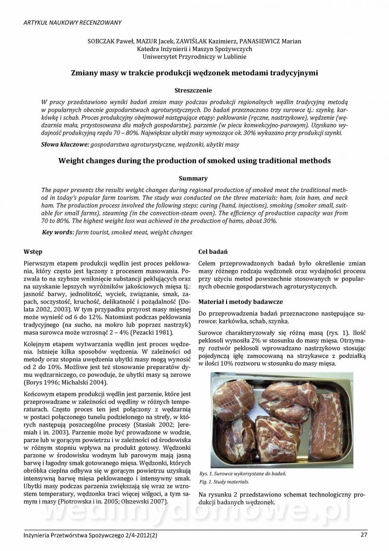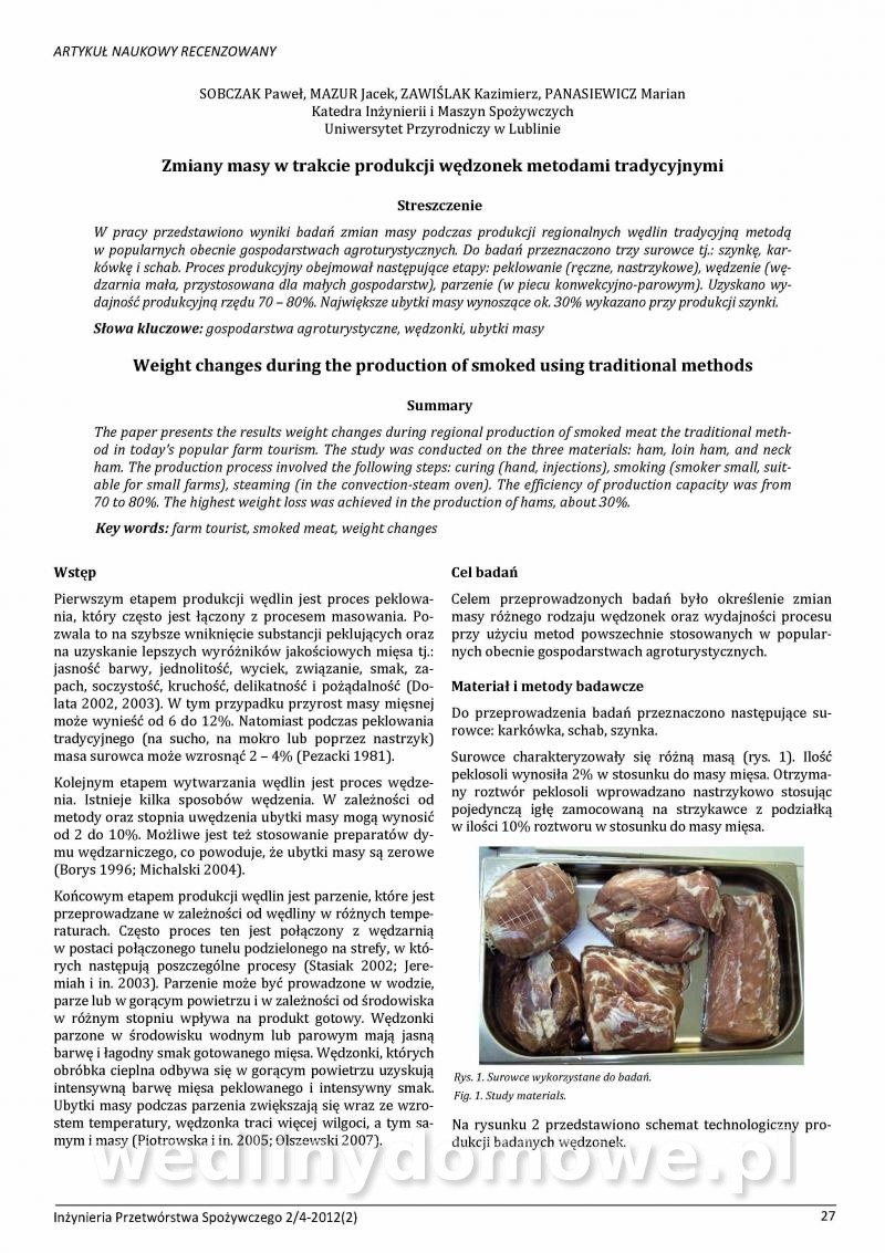 Zmiany masy w trakcie produkcji wędzonek metodami tradycyjnymi
