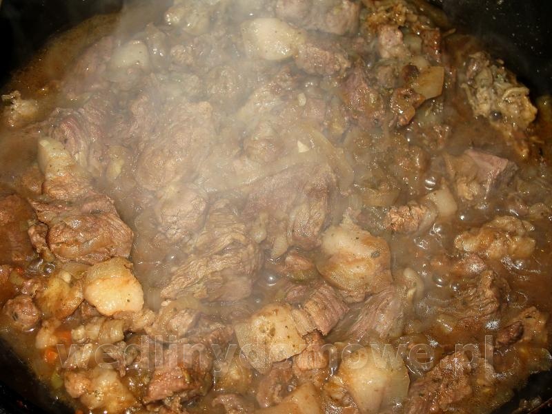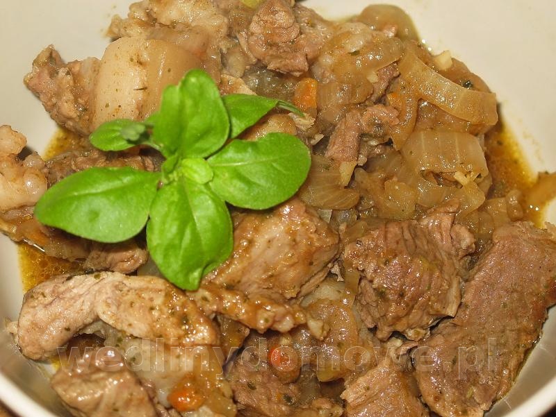 Tuszonka beiot'a Jest to mój przepis na wieprzowinę, który nie wiem skąd znam, a robiłem go jak miałem ok 8-10 lat i postanowiłem go sobie przypomnieć i zapisać. Składniki: - wieprzowina gulaszowa, - smalec, - woda, - papryka słodka, - pieprz ziołowy, - kostka rosołowa lub jarzynka, - listek laurowy, - cebula, - sól. Sposób wykonania: Mięso kroimy w kawałki. Rozgrzewamy głęboką patelnię ze smalcem i podsmażamy mięsko. Pamiętajmy, by zarumienić je ze wszystkich stron. Jak się podsmaży i zacznie puszczać soki, dolewamy ok 0,5 szklanki wody. Wody ma być tak ok 1-1,5 cm. Jak woda zacznie wrzeć dodajemy wszystkie przyprawy w tym cebulkę. Wszystko do smaku. Dalej dusimy na małym ogniu do stanu miękkości. Jeśli woda odparuje, to jej dolewamy. Można przykryć patelnie pokrywką. Potrawka musi pływać w sosie. Dominująca przyprawa jest papryka i listek laurowy. Potrawka ma być ostro słodka. Do niej pasuje idealnie świeży chlebek który możemy maczać w sosie. To taki mój smak dzieciństwa. Często robiłem to moim dziadkom u nich w domu. Potrawa bardzo prosta, smaczna i syta. Smacznego Pozdrawiam Robert Winckiewicz - beiot 16,12.2011 r.