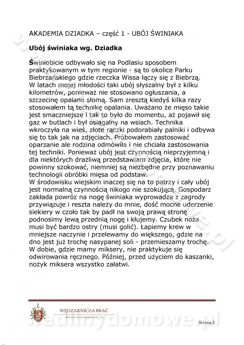 16. Serdecznie zapraszam Państwa do zapisów na Kurs Podstawowy Nr 4/17 w naszej filii SDM w Łazach, który zaplanowany jest w terminie od 23 do 25 czerwca 2017 r. Lista chętnych do uczestnictwa w Kursie Podstawowym: 1. Zdzisław Świeboda 2. Marek Budzyński (wpłata 490,00 zł) 3. Jacek Janocha (wpłata 490,00 zł) 4. Adam Ciesielski (wpłata 250,00 zł) 5. Sławomir Wawer (wpłata 490,00 zł) 6. Halina Klimowska 7. Zbigniew Klimowski (bez kursu - osoba towarzysząca) 8. Kuba Kokot (wpłata 490,00 zł) 9. Maciej Kochański (wpłata 245,00 zł) 10. Iwona Machałowska (wpłata 245,00 zł) 11. Janusz Machałowski (wpłata 245,00 zł) 12. Marcin Niewiadomski (wpłata 245,00 zł) 13. Artur Bryła (wpłata 490,00 zł) 14. Mariusz Kostrzewa (245,00 zł) 15. Zdobysław Górski (wpłata 490,00 zł) 16. 17. 18. 19. 20. 21. 22. 23. 24. 25. 26. Oczywiście wykładowcami są Koledzy Bagno i Dziadek. Cena kursu: 490,00 zł od osoby. W cenę wliczone noclegi, pełne wyżywienie oraz materiały i surowce do produkcji. Pokoje nowoczesne, bardzo przestronne każdy z węzłem sanitarnym. Sala dydaktyczna przygotowana profesjonalnie i wyposażona w pełni na potrzeby kursu. Duża wędzarnia stacjonarna z wózkiem wędzarniczym koło pomieszczenia technologicznego, wewnątrz budynku. W pomieszczeniu wędzarni chłodnia. Między salą biesiadną, a salą dydaktyczną kuchnia, gdzie można robić kawę i herbatę. Obiekt zapewnia pełne wyżywienie słuchaczom kursów: - piątek - obiadokolacja, - sobota - śniadanie, obiad, kolacja, - niedziela - śniadanie (produkty wykonane przez kursantów) Więcej informacji na stronie SDM - www.szkoladomowegomasarstwa.pl. , zakładka: Oferta szkoleń. Tam także należy dokonać zapisu. ZAPRASZAMY