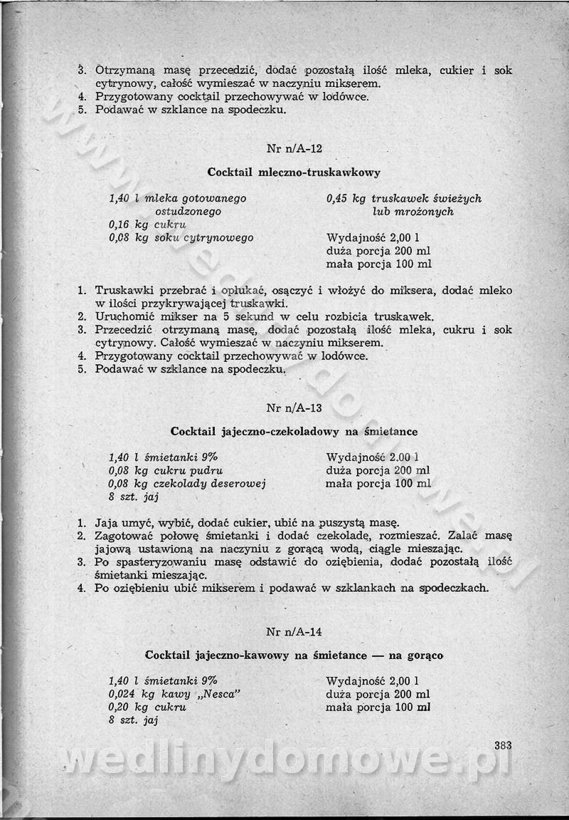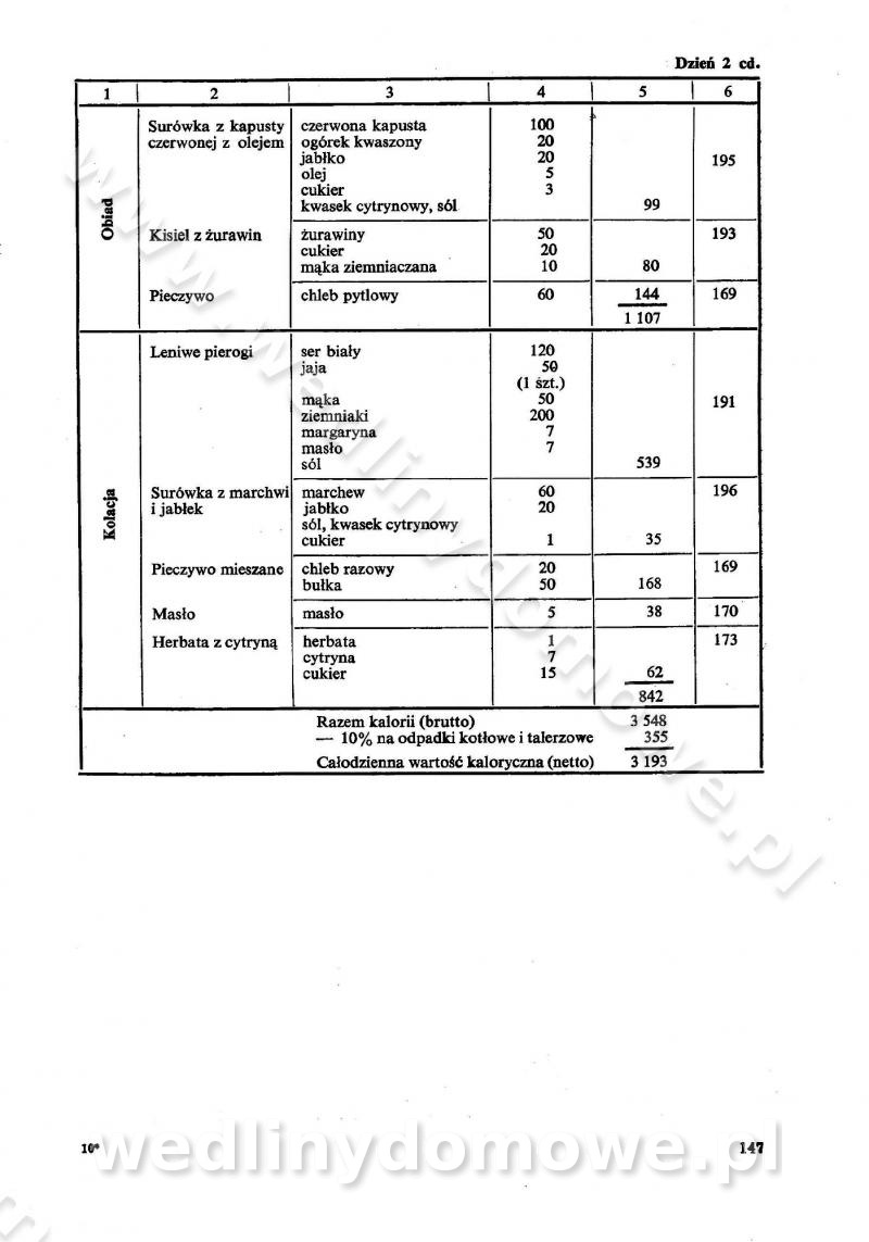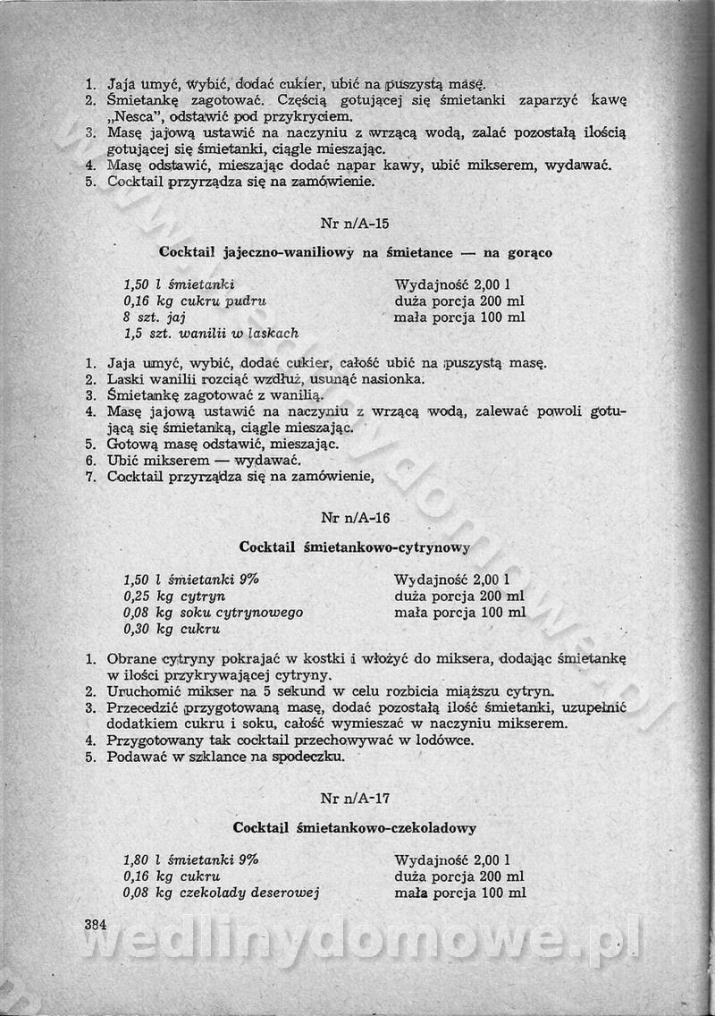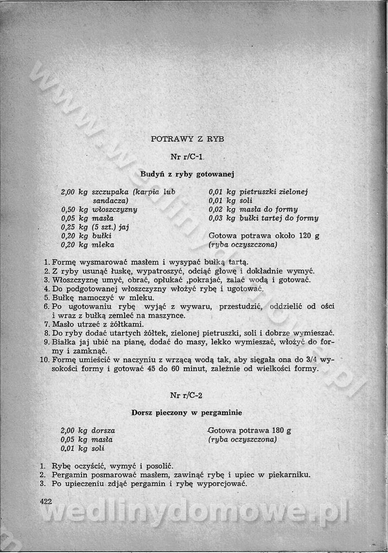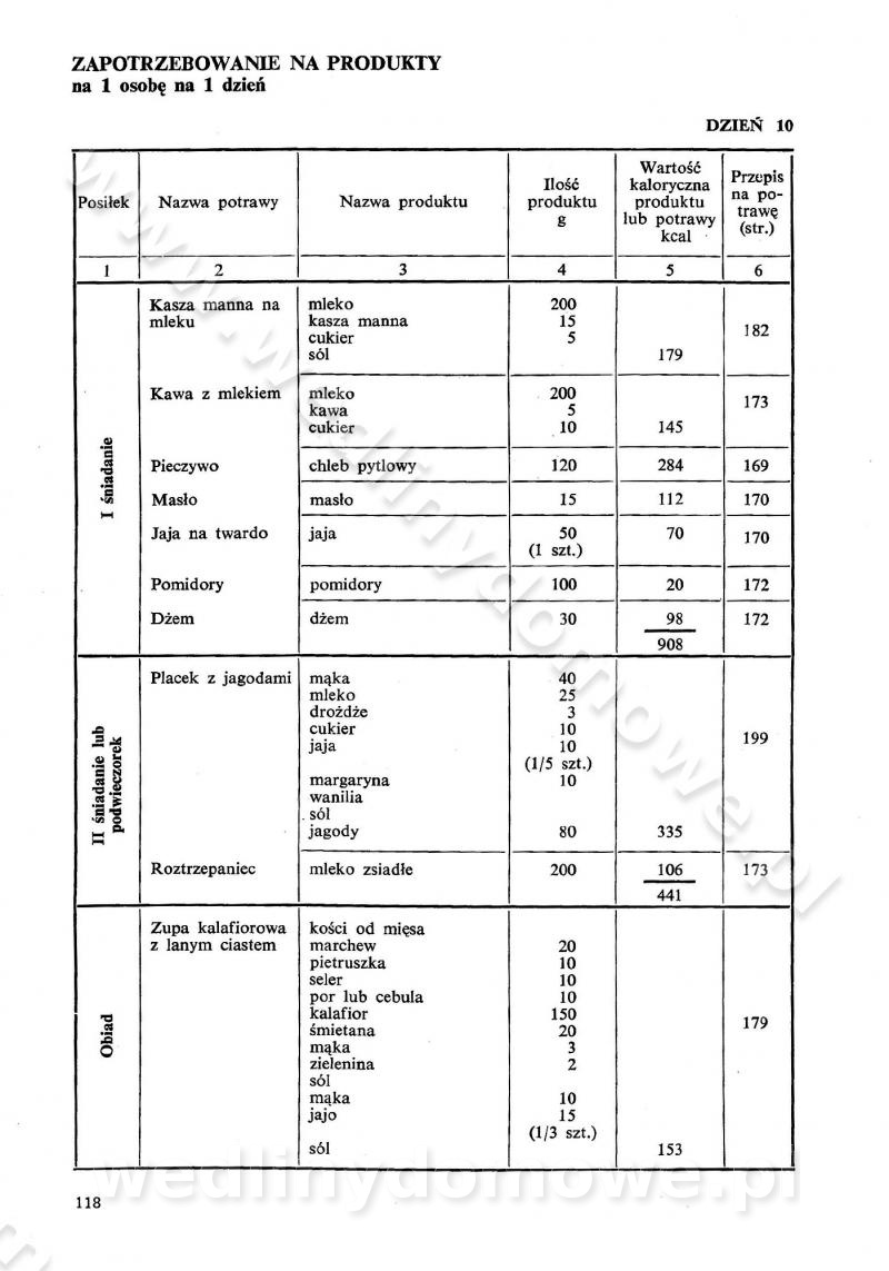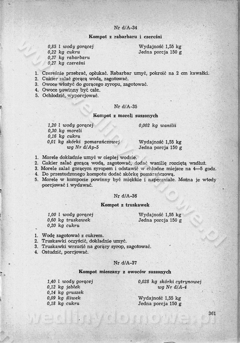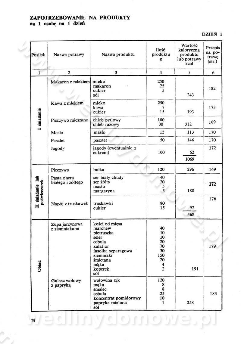 SPIS TREŚCI CZĘŚĆ I TEORETYCZNE PODSTAWY RACJONALNEGO ŻYWIENIA ZBIOROWEGO inż. Krystyna Wolf I. WSKAZÓWKI DO REALIZACJI NORM ŻYWIENIA WYRAŻONYCH W CAŁODZIENNYCH RACJACH POKARMOWYCH II. SKŁADNIKI POKARMOWE I ICH ROLA W ŻYWIENIU Zawartość składników pokarmowych w produktach Rola pożywienia Składniki pokarmowe Wzajemne zależności między składnikami pokarmowymi III. NORMY WYŻYWIENIA Normy zapotrzebowania na składniki pokarmowe Podział produktów Podział produktów na 2 grupy Podział produktów na 9 grup Podział produktów na 12 grup Całodzienne racje pokarmowe Zamiana produktów IV. WYTYCZNE PLANOWANIA ZESTAWU CAŁODZIENNYCH POSIŁKÓW Zasady podziału całodziennych racji pokarmowych na poszczególne posiłki Śniadanie Obiad Kolacja Wytyczne układania jadłospisów Kontrola prawidłowości planowania jadłospisów V. PROCESY TECHNOLOGICZNE, ICH CEL, PRZEBIEG I WPŁYW NA WARTOŚĆ ODŻYWCZĄ POTRAW Cel procesu technologicznego Obróbka wstępna i termiczna Ogólne wskazówki technologiczne Wykończanie potraw VI. WSKAZÓWKI PRAKTYCZNE DOTYCZĄCE KORZYSTANIA Z RECEPTUR CZĘŚĆ II RECEPTURY I. ZUPY inż. Jadwiga Celczyńska Podstawowe zasady sporządzania Sporządzanie wywarów Podział zup Przygotowanie głównych składników zup Wykończanie zup Rodzaje zup Zupy czyste Zupy zabielane Zupy zasmażane Zupy rozklejane Zupy mleczne Zupy owocowe Zupy z wkładką pełnowartościowego białka — samodzielne dania obiadowe lub kolacyjne Zupy czyste (normatyw surowcowy na 10 porcji) Zakwas burakowy na barszcz Zakwas na żur Barszcz burakowy czysty Barszcz czerwony czysty z zagęszczonego soku buraczanego Barszcz burakowy jarski Bulion jarski Rosół z wołowiny Zupa grzybowa czysta Zupa pomidorowa czysta Zupy rozklejane (normatyw surowcowy na 10 porcji) Krupnik na podrobach Krupnik zabielany Krupnik ze słoniną Krupnik z ryżu z jarzynami Zupa grochowa z pęczakiem Zupa grochowa z ziemniakami Zupa rumfordzka Zupa ziemniaczana z fasolą Zalewajka Zalewajka z kwaśnym mlekiem Żur z kiełbasą i boczkiem Żur na podrobach zabielany Zupy zasmażane (normatyw surowcowy na 10 porcji) Kapuśniak z kwaszonej kapusty z papryką Kapuśniak mazurski z kwaszonej kapusty Kapuśniak ze słodkiej kapusty Kapuśniak ze słodkiej kapusty z jabłkami Kapuśniak z czerwonej kapusty Zacierka z ziemniakami Zupa cebulowa Zupa z dyni i pomidorów Zupa fasolowa z makaronem Zupa fasolowa z ziemniakami Zupa z flaków wołowych Zupa „garbure” Zupa grzybowa Zupa jarzynowa z papryką Zupa jarzynowa z fasolą Zupa jarzynowa (jesienna) Zupa jarzynowa z makaronem i serem Zupa z kaszy manny zasmażana Zupa neapolitańska Zupa pomidorowa zasmażana Zupa z porów Zupa z selerów Zupa ziemniaczana zasmażana Zupa ziemniaczana z pomidorami Zupy mleczne (normatyw surowcowy na 10 porcji) Kukurydzanka na mleku Manna na mleku Ryż na mleku Makaron na mleku Płatki owsiane na mleku Zupa z dyni na mleku z tartym ciastem Zupa „nic” Zupa mleczna z lanym ciastem Zupa ze zsiadłego mleka Zupy zabielane (normatyw surowcowy na 10 porcji) Barszcz czerwony zabielany Barszcz czerwony zabielany z suszu Barszcz ukraiński Barszcz czeski Barszcz z botwiną Barszcz jarski z botwiną Chłodnik z botwiną Chłodnik z botwiną na mleku Kapuśniak ze słodkiej kapusty zabielany Kapuśniak na głowiźnie Zupa z brukselki zabielana Zupa cytrynowa Zupa z fasolki szparagowej Zupa grzybowa zabielana Zupa kalafiorowa Zupa koperkowa Zupa ogórkowa Zupa pomidorowa Zupa rybna Zupa szczawiowa Zupa pieczarkowa Zupa ze szpinaku Zupa z młodych jarzyn zabielana Zupa jarzynowa zabielana z mrożonek Zupa ziemniaczana „Paysanne” Pejzanka z puree ziemniaczanym Zupa z młodych ziemniaków Zupa ziemniaczana z porami Zupa z zielonego groszku Zupy owocowe (normatyw surowcowy na 10 porcji) Chłodnik z czarnych jagód Chłodnik truskawkowy Zupa z czarnych jagód Zupa jabłkowa Zupa jabłkowa zabielana Zupa z jabłek i śliwek Zupa ze śliwek Zupa z owoców mieszanych Zupa owocowa z suszu jabłkowego i marmolady Zupa owocowa czysta Zupa z powideł śliwkowych Zupa rabarbarowa Zupa z suszonych śliwek Zupa truskawkowa Zupa z truskawek i rabarbaru Zupy z wkładką mięsną (normatyw surowcowy na 10 porcji) Barszcz małorosyjski na rosole z mięsem Barszcz z ziemniakami i serdelkami Grochówka z mięsem i ziemniakami Kapuśniak z kwaszonej kapusty z kiełbasą Kapuśniak ze słodkiej kapusty z pomidorami i mięsem Krupnik z ryżu na mięsie Krupnik na mięsie Pejzanka na żeberkach Zupa z fasolki szparagowej na mięsie Zupa fasolowa z mięsem i makaronem Zupa jarzynowa z mięsem Gulaszowa polewka Zupa koperkowa na mięsie Zupa ogórkowa z ziemniakami na mięsie Zupa pomidorowa z makaronem i mięsem Zupa z porów z ziemniakami i wątróbką Zupa wiosenna z jajami Zupa ziemniaczana z mięsem Żur z kiełbasą i ziemniakami II. POTRAWY MIĘSNE inż. Krystyna Wolf Podstawowe zasady sporządzania Zachowanie wartości odżywczej dań mięsnych Cechy prawidłowo przyrządzonego mięsa Przechowywanie Rozmrażanie mięsa Rozbiór tuszy zwierząt rzeźnych Obróbka wstępna Obróbka termiczna Potrawy z baraniny (normatyw surowcowy na 10 porcji) Potrawka z baraniny Kotlet barani mielony Kotlet barani mielony z ryżem Baranina w warzywach Ragout baranie Baranina duszona Potrawy z cielęciny (normatyw surowcowy na 10 porcji) Potrawka cielęca Pulpety cielęce Kotlet cielęcy mielony Klopsiki cielęce do sosów Sznycel cielęcy (mielony) Filet cielęcy (do sosów i dodatków) Zrazy cielęce bite (do sosów) Zrazy cielęce nadziewane słoniną Sznycel cielęcy Zrazy cielęce po polsku (faszerowane) Paprykarz cielęcy Pieczeń cielęca duszona Pieczeń cielęca Mostek cielęcy po wiedeńsku Mostek cielęcy faszerowany Rolada cielęca faszerowana Potrawy z wieprzowiny (normatyw surowcowy na 10 porcji) Mięso wieprzowe gotowane Peklówka wieprzowa gotowana Filet wieprzowy saute Kotlet wieprzowy mielony Zraz wieprzowy (klopsik) mielony do sosów Kotlet miel