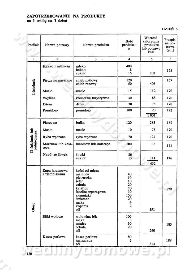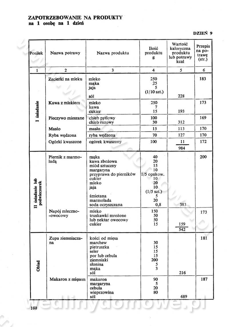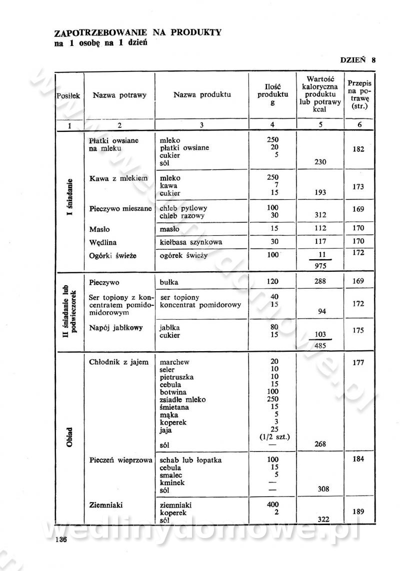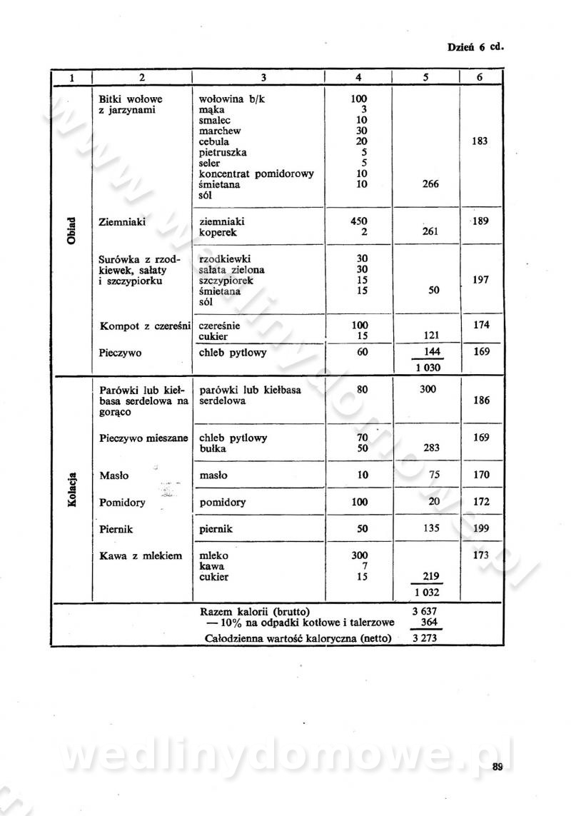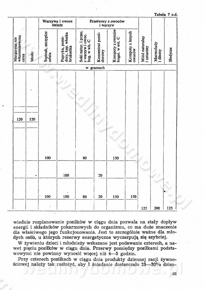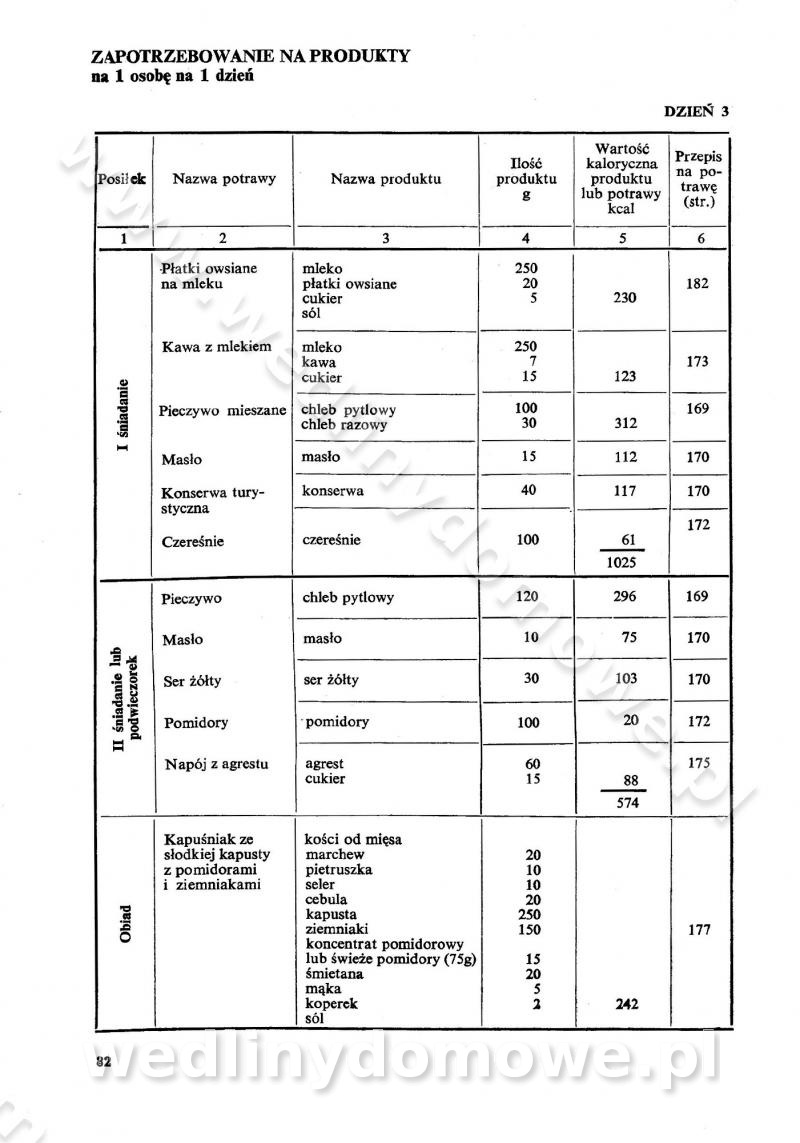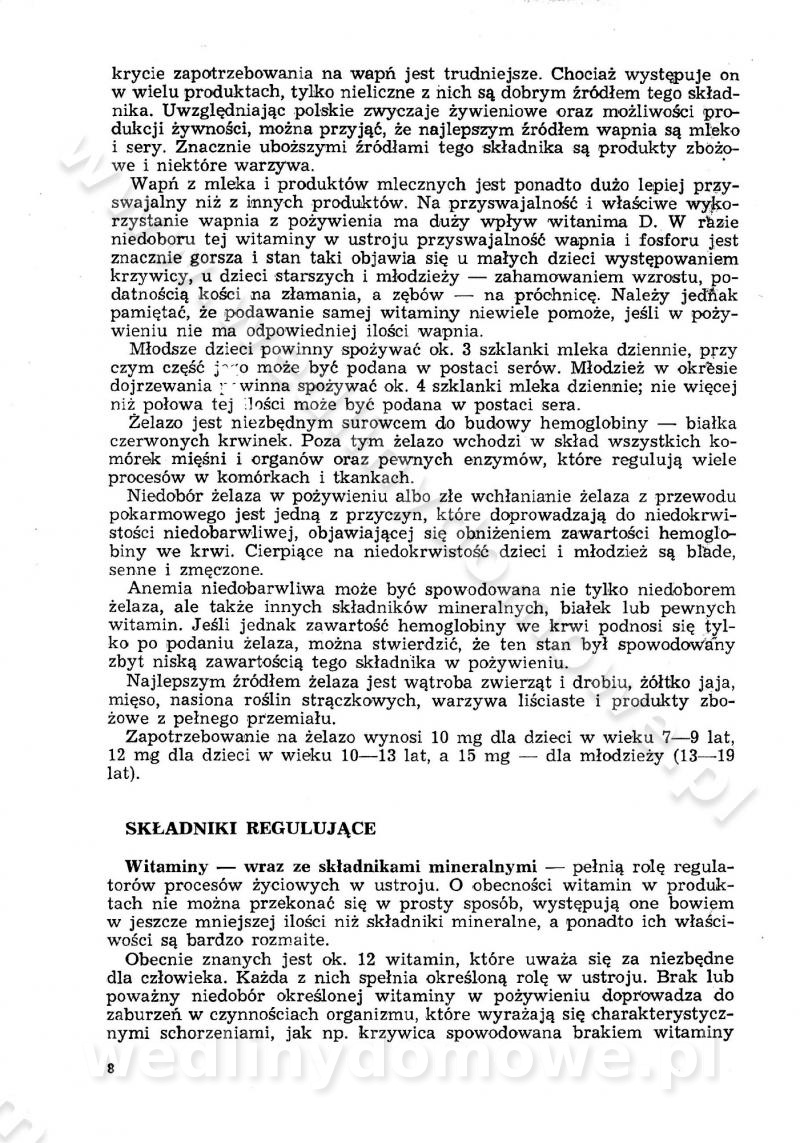 SPIS TREŚCI CZĘŚĆ I TEORETYCZNE PODSTAWY RACJONALNEGO ŻYWIENIA ZBIOROWEGO inż. Krystyna Wolf I. WSKAZÓWKI DO REALIZACJI NORM ŻYWIENIA WYRAŻONYCH W CAŁODZIENNYCH RACJACH POKARMOWYCH II. SKŁADNIKI POKARMOWE I ICH ROLA W ŻYWIENIU Zawartość składników pokarmowych w produktach Rola pożywienia Składniki pokarmowe Wzajemne zależności między składnikami pokarmowymi III. NORMY WYŻYWIENIA Normy zapotrzebowania na składniki pokarmowe Podział produktów Podział produktów na 2 grupy Podział produktów na 9 grup Podział produktów na 12 grup Całodzienne racje pokarmowe Zamiana produktów IV. WYTYCZNE PLANOWANIA ZESTAWU CAŁODZIENNYCH POSIŁKÓW Zasady podziału całodziennych racji pokarmowych na poszczególne posiłki Śniadanie Obiad Kolacja Wytyczne układania jadłospisów Kontrola prawidłowości planowania jadłospisów V. PROCESY TECHNOLOGICZNE, ICH CEL, PRZEBIEG I WPŁYW NA WARTOŚĆ ODŻYWCZĄ POTRAW Cel procesu technologicznego Obróbka wstępna i termiczna Ogólne wskazówki technologiczne Wykończanie potraw VI. WSKAZÓWKI PRAKTYCZNE DOTYCZĄCE KORZYSTANIA Z RECEPTUR CZĘŚĆ II RECEPTURY I. ZUPY inż. Jadwiga Celczyńska Podstawowe zasady sporządzania Sporządzanie wywarów Podział zup Przygotowanie głównych składników zup Wykończanie zup Rodzaje zup Zupy czyste Zupy zabielane Zupy zasmażane Zupy rozklejane Zupy mleczne Zupy owocowe Zupy z wkładką pełnowartościowego białka — samodzielne dania obiadowe lub kolacyjne Zupy czyste (normatyw surowcowy na 10 porcji) Zakwas burakowy na barszcz Zakwas na żur Barszcz burakowy czysty Barszcz czerwony czysty z zagęszczonego soku buraczanego Barszcz burakowy jarski Bulion jarski Rosół z wołowiny Zupa grzybowa czysta Zupa pomidorowa czysta Zupy rozklejane (normatyw surowcowy na 10 porcji) Krupnik na podrobach Krupnik zabielany Krupnik ze słoniną Krupnik z ryżu z jarzynami Zupa grochowa z pęczakiem Zupa grochowa z ziemniakami Zupa rumfordzka Zupa ziemniaczana z fasolą Zalewajka Zalewajka z kwaśnym mlekiem Żur z kiełbasą i boczkiem Żur na podrobach zabielany Zupy zasmażane (normatyw surowcowy na 10 porcji) Kapuśniak z kwaszonej kapusty z papryką Kapuśniak mazurski z kwaszonej kapusty Kapuśniak ze słodkiej kapusty Kapuśniak ze słodkiej kapusty z jabłkami Kapuśniak z czerwonej kapusty Zacierka z ziemniakami Zupa cebulowa Zupa z dyni i pomidorów Zupa fasolowa z makaronem Zupa fasolowa z ziemniakami Zupa z flaków wołowych Zupa „garbure” Zupa grzybowa Zupa jarzynowa z papryką Zupa jarzynowa z fasolą Zupa jarzynowa (jesienna) Zupa jarzynowa z makaronem i serem Zupa z kaszy manny zasmażana Zupa neapolitańska Zupa pomidorowa zasmażana Zupa z porów Zupa z selerów Zupa ziemniaczana zasmażana Zupa ziemniaczana z pomidorami Zupy mleczne (normatyw surowcowy na 10 porcji) Kukurydzanka na mleku Manna na mleku Ryż na mleku Makaron na mleku Płatki owsiane na mleku Zupa z dyni na mleku z tartym ciastem Zupa „nic” Zupa mleczna z lanym ciastem Zupa ze zsiadłego mleka Zupy zabielane (normatyw surowcowy na 10 porcji) Barszcz czerwony zabielany Barszcz czerwony zabielany z suszu Barszcz ukraiński Barszcz czeski Barszcz z botwiną Barszcz jarski z botwiną Chłodnik z botwiną Chłodnik z botwiną na mleku Kapuśniak ze słodkiej kapusty zabielany Kapuśniak na głowiźnie Zupa z brukselki zabielana Zupa cytrynowa Zupa z fasolki szparagowej Zupa grzybowa zabielana Zupa kalafiorowa Zupa koperkowa Zupa ogórkowa Zupa pomidorowa Zupa rybna Zupa szczawiowa Zupa pieczarkowa Zupa ze szpinaku Zupa z młodych jarzyn zabielana Zupa jarzynowa zabielana z mrożonek Zupa ziemniaczana „Paysanne” Pejzanka z puree ziemniaczanym Zupa z młodych ziemniaków Zupa ziemniaczana z porami Zupa z zielonego groszku Zupy owocowe (normatyw surowcowy na 10 porcji) Chłodnik z czarnych jagód Chłodnik truskawkowy Zupa z czarnych jagód Zupa jabłkowa Zupa jabłkowa zabielana Zupa z jabłek i śliwek Zupa ze śliwek Zupa z owoców mieszanych Zupa owocowa z suszu jabłkowego i marmolady Zupa owocowa czysta Zupa z powideł śliwkowych Zupa rabarbarowa Zupa z suszonych śliwek Zupa truskawkowa Zupa z truskawek i rabarbaru Zupy z wkładką mięsną (normatyw surowcowy na 10 porcji) Barszcz małorosyjski na rosole z mięsem Barszcz z ziemniakami i serdelkami Grochówka z mięsem i ziemniakami Kapuśniak z kwaszonej kapusty z kiełbasą Kapuśniak ze słodkiej kapusty z pomidorami i mięsem Krupnik z ryżu na mięsie Krupnik na mięsie Pejzanka na żeberkach Zupa z fasolki szparagowej na mięsie Zupa fasolowa z mięsem i makaronem Zupa jarzynowa z mięsem Gulaszowa polewka Zupa koperkowa na mięsie Zupa ogórkowa z ziemniakami na mięsie Zupa pomidorowa z makaronem i mięsem Zupa z porów z ziemniakami i wątróbką Zupa wiosenna z jajami Zupa ziemniaczana z mięsem Żur z kiełbasą i ziemniakami II. POTRAWY MIĘSNE inż. Krystyna Wolf Podstawowe zasady sporządzania Zachowanie wartości odżywczej dań mięsnych Cechy prawidłowo przyrządzonego mięsa Przechowywanie Rozmrażanie mięsa Rozbiór tuszy zwierząt rzeźnych Obróbka wstępna Obróbka termiczna Potrawy z baraniny (normatyw surowcowy na 10 porcji) Potrawka z baraniny Kotlet barani mielony Kotlet barani mielony z ryżem Baranina w warzywach Ragout baranie Baranina duszona Potrawy z cielęciny (normatyw surowcowy na 10 porcji) Potrawka cielęca Pulpety cielęce Kotlet cielęcy mielony Klopsiki cielęce do sosów Sznycel cielęcy (mielony) Filet cielęcy (do sosów i dodatków) Zrazy cielęce bite (do sosów) Zrazy cielęce nadziewane słoniną Sznycel cielęcy Zrazy cielęce po polsku (faszerowane) Paprykarz cielęcy Pieczeń cielęca duszona Pieczeń cielęca Mostek cielęcy po wiedeńsku Mostek cielęcy faszerowany Rolada cielęca faszerowana Potrawy z wieprzowiny (normatyw surowcowy na 10 porcji) Mięso wieprzowe gotowane Peklówka wieprzowa gotowana Filet wieprzowy saute Kotlet wieprzowy mielony Zraz wieprzowy (klopsik) mielony do sosów Kotlet miel