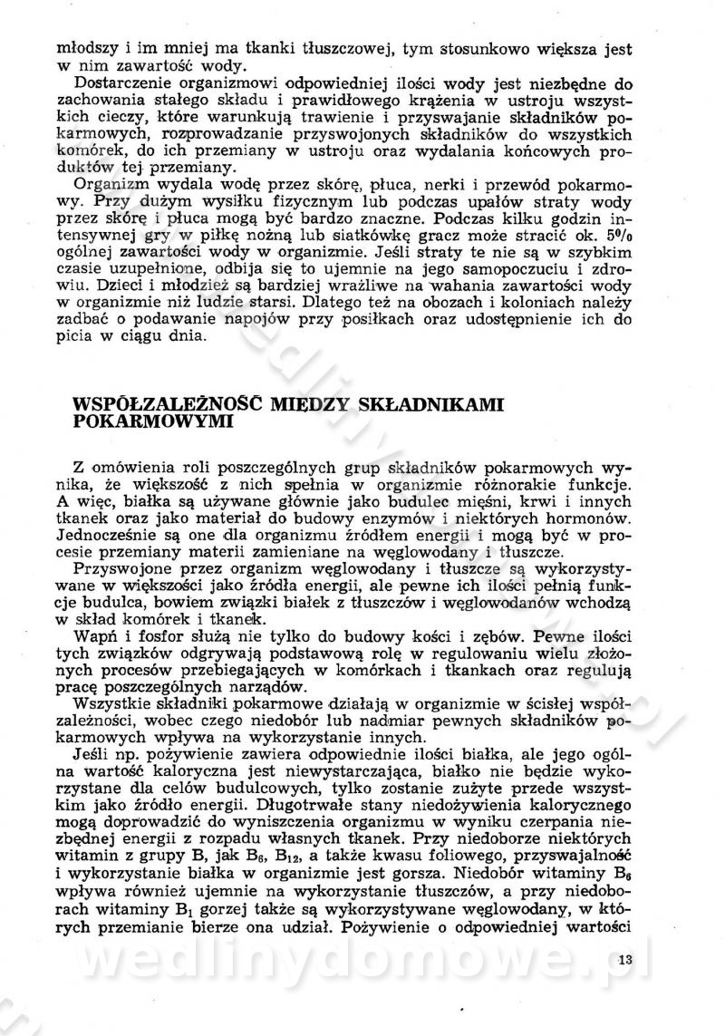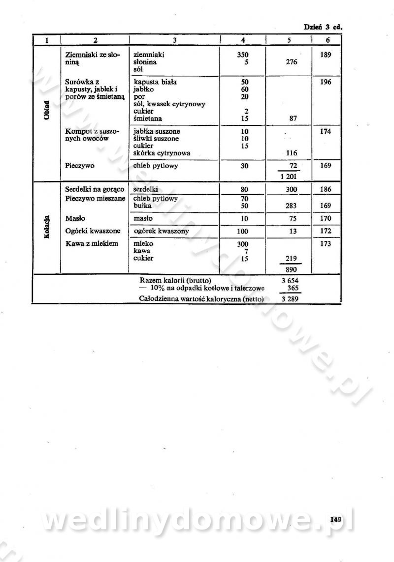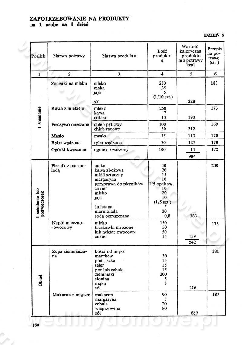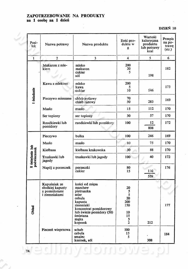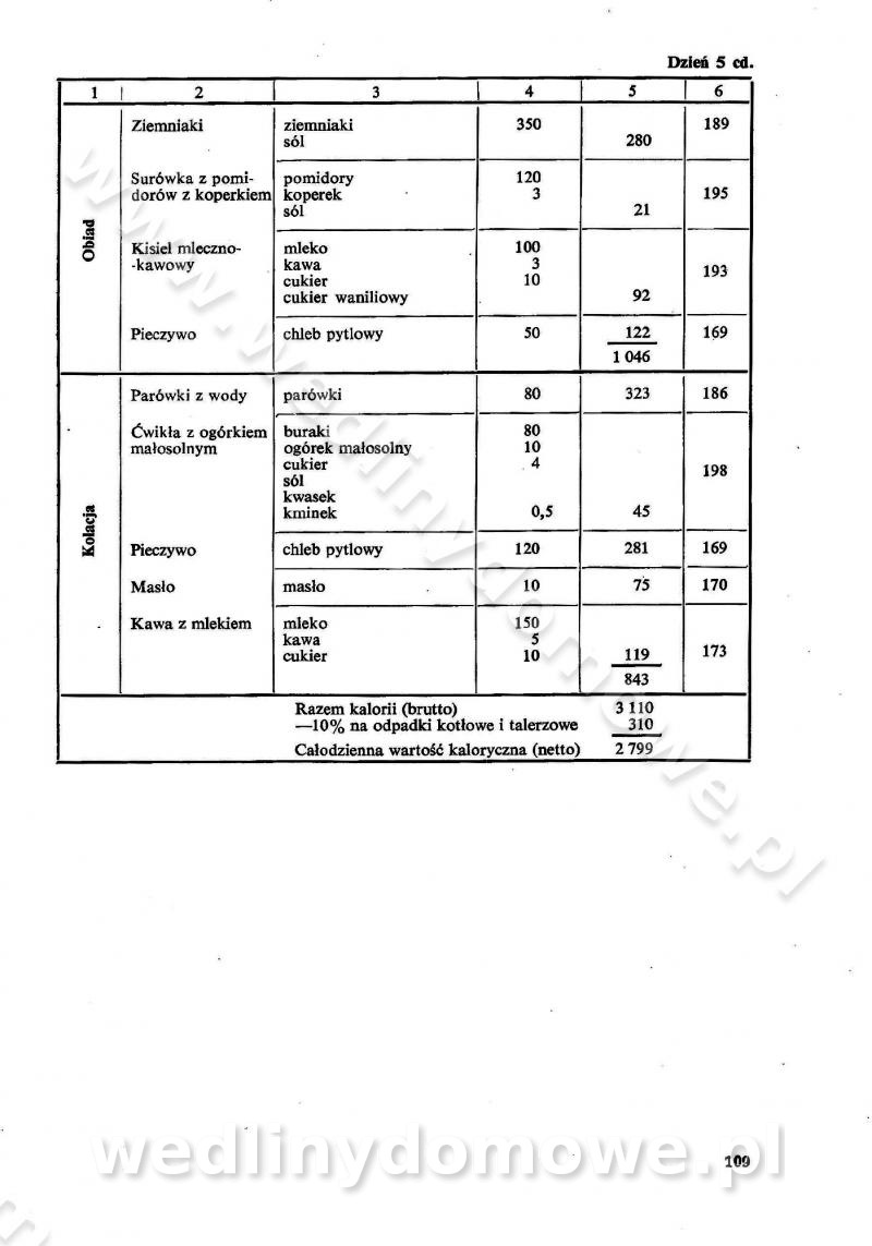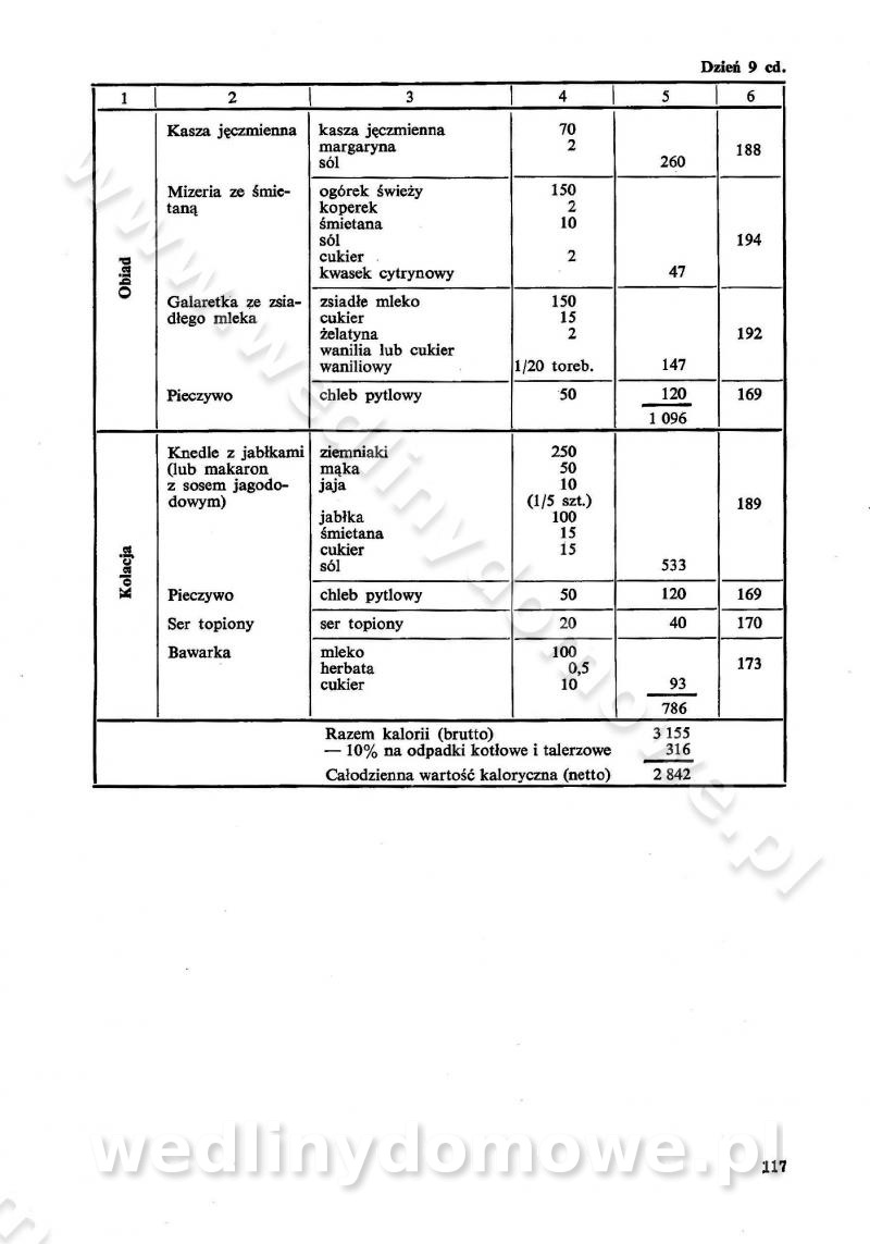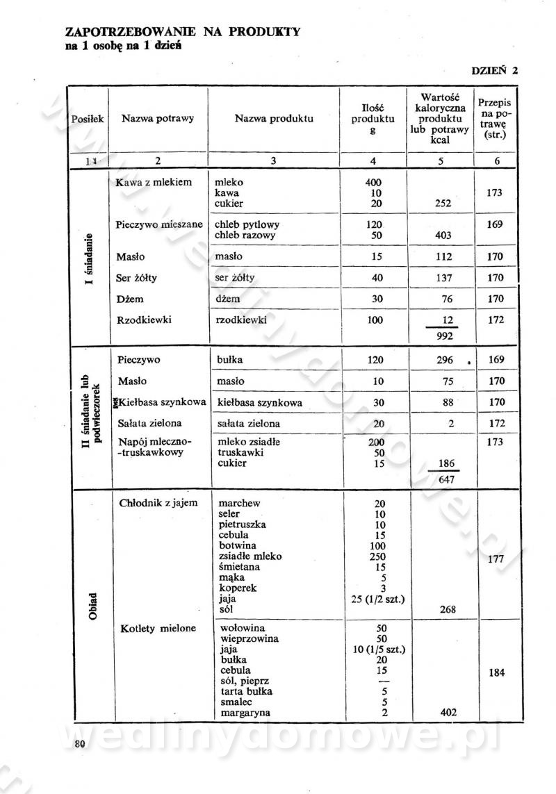 SPIS TREŚCI CZĘŚĆ I TEORETYCZNE PODSTAWY RACJONALNEGO ŻYWIENIA ZBIOROWEGO inż. Krystyna Wolf I. WSKAZÓWKI DO REALIZACJI NORM ŻYWIENIA WYRAŻONYCH W CAŁODZIENNYCH RACJACH POKARMOWYCH II. SKŁADNIKI POKARMOWE I ICH ROLA W ŻYWIENIU Zawartość składników pokarmowych w produktach Rola pożywienia Składniki pokarmowe Wzajemne zależności między składnikami pokarmowymi III. NORMY WYŻYWIENIA Normy zapotrzebowania na składniki pokarmowe Podział produktów Podział produktów na 2 grupy Podział produktów na 9 grup Podział produktów na 12 grup Całodzienne racje pokarmowe Zamiana produktów IV. WYTYCZNE PLANOWANIA ZESTAWU CAŁODZIENNYCH POSIŁKÓW Zasady podziału całodziennych racji pokarmowych na poszczególne posiłki Śniadanie Obiad Kolacja Wytyczne układania jadłospisów Kontrola prawidłowości planowania jadłospisów V. PROCESY TECHNOLOGICZNE, ICH CEL, PRZEBIEG I WPŁYW NA WARTOŚĆ ODŻYWCZĄ POTRAW Cel procesu technologicznego Obróbka wstępna i termiczna Ogólne wskazówki technologiczne Wykończanie potraw VI. WSKAZÓWKI PRAKTYCZNE DOTYCZĄCE KORZYSTANIA Z RECEPTUR CZĘŚĆ II RECEPTURY I. ZUPY inż. Jadwiga Celczyńska Podstawowe zasady sporządzania Sporządzanie wywarów Podział zup Przygotowanie głównych składników zup Wykończanie zup Rodzaje zup Zupy czyste Zupy zabielane Zupy zasmażane Zupy rozklejane Zupy mleczne Zupy owocowe Zupy z wkładką pełnowartościowego białka — samodzielne dania obiadowe lub kolacyjne Zupy czyste (normatyw surowcowy na 10 porcji) Zakwas burakowy na barszcz Zakwas na żur Barszcz burakowy czysty Barszcz czerwony czysty z zagęszczonego soku buraczanego Barszcz burakowy jarski Bulion jarski Rosół z wołowiny Zupa grzybowa czysta Zupa pomidorowa czysta Zupy rozklejane (normatyw surowcowy na 10 porcji) Krupnik na podrobach Krupnik zabielany Krupnik ze słoniną Krupnik z ryżu z jarzynami Zupa grochowa z pęczakiem Zupa grochowa z ziemniakami Zupa rumfordzka Zupa ziemniaczana z fasolą Zalewajka Zalewajka z kwaśnym mlekiem Żur z kiełbasą i boczkiem Żur na podrobach zabielany Zupy zasmażane (normatyw surowcowy na 10 porcji) Kapuśniak z kwaszonej kapusty z papryką Kapuśniak mazurski z kwaszonej kapusty Kapuśniak ze słodkiej kapusty Kapuśniak ze słodkiej kapusty z jabłkami Kapuśniak z czerwonej kapusty Zacierka z ziemniakami Zupa cebulowa Zupa z dyni i pomidorów Zupa fasolowa z makaronem Zupa fasolowa z ziemniakami Zupa z flaków wołowych Zupa „garbure” Zupa grzybowa Zupa jarzynowa z papryką Zupa jarzynowa z fasolą Zupa jarzynowa (jesienna) Zupa jarzynowa z makaronem i serem Zupa z kaszy manny zasmażana Zupa neapolitańska Zupa pomidorowa zasmażana Zupa z porów Zupa z selerów Zupa ziemniaczana zasmażana Zupa ziemniaczana z pomidorami Zupy mleczne (normatyw surowcowy na 10 porcji) Kukurydzanka na mleku Manna na mleku Ryż na mleku Makaron na mleku Płatki owsiane na mleku Zupa z dyni na mleku z tartym ciastem Zupa „nic” Zupa mleczna z lanym ciastem Zupa ze zsiadłego mleka Zupy zabielane (normatyw surowcowy na 10 porcji) Barszcz czerwony zabielany Barszcz czerwony zabielany z suszu Barszcz ukraiński Barszcz czeski Barszcz z botwiną Barszcz jarski z botwiną Chłodnik z botwiną Chłodnik z botwiną na mleku Kapuśniak ze słodkiej kapusty zabielany Kapuśniak na głowiźnie Zupa z brukselki zabielana Zupa cytrynowa Zupa z fasolki szparagowej Zupa grzybowa zabielana Zupa kalafiorowa Zupa koperkowa Zupa ogórkowa Zupa pomidorowa Zupa rybna Zupa szczawiowa Zupa pieczarkowa Zupa ze szpinaku Zupa z młodych jarzyn zabielana Zupa jarzynowa zabielana z mrożonek Zupa ziemniaczana „Paysanne” Pejzanka z puree ziemniaczanym Zupa z młodych ziemniaków Zupa ziemniaczana z porami Zupa z zielonego groszku Zupy owocowe (normatyw surowcowy na 10 porcji) Chłodnik z czarnych jagód Chłodnik truskawkowy Zupa z czarnych jagód Zupa jabłkowa Zupa jabłkowa zabielana Zupa z jabłek i śliwek Zupa ze śliwek Zupa z owoców mieszanych Zupa owocowa z suszu jabłkowego i marmolady Zupa owocowa czysta Zupa z powideł śliwkowych Zupa rabarbarowa Zupa z suszonych śliwek Zupa truskawkowa Zupa z truskawek i rabarbaru Zupy z wkładką mięsną (normatyw surowcowy na 10 porcji) Barszcz małorosyjski na rosole z mięsem Barszcz z ziemniakami i serdelkami Grochówka z mięsem i ziemniakami Kapuśniak z kwaszonej kapusty z kiełbasą Kapuśniak ze słodkiej kapusty z pomidorami i mięsem Krupnik z ryżu na mięsie Krupnik na mięsie Pejzanka na żeberkach Zupa z fasolki szparagowej na mięsie Zupa fasolowa z mięsem i makaronem Zupa jarzynowa z mięsem Gulaszowa polewka Zupa koperkowa na mięsie Zupa ogórkowa z ziemniakami na mięsie Zupa pomidorowa z makaronem i mięsem Zupa z porów z ziemniakami i wątróbką Zupa wiosenna z jajami Zupa ziemniaczana z mięsem Żur z kiełbasą i ziemniakami II. POTRAWY MIĘSNE inż. Krystyna Wolf Podstawowe zasady sporządzania Zachowanie wartości odżywczej dań mięsnych Cechy prawidłowo przyrządzonego mięsa Przechowywanie Rozmrażanie mięsa Rozbiór tuszy zwierząt rzeźnych Obróbka wstępna Obróbka termiczna Potrawy z baraniny (normatyw surowcowy na 10 porcji) Potrawka z baraniny Kotlet barani mielony Kotlet barani mielony z ryżem Baranina w warzywach Ragout baranie Baranina duszona Potrawy z cielęciny (normatyw surowcowy na 10 porcji) Potrawka cielęca Pulpety cielęce Kotlet cielęcy mielony Klopsiki cielęce do sosów Sznycel cielęcy (mielony) Filet cielęcy (do sosów i dodatków) Zrazy cielęce bite (do sosów) Zrazy cielęce nadziewane słoniną Sznycel cielęcy Zrazy cielęce po polsku (faszerowane) Paprykarz cielęcy Pieczeń cielęca duszona Pieczeń cielęca Mostek cielęcy po wiedeńsku Mostek cielęcy faszerowany Rolada cielęca faszerowana Potrawy z wieprzowiny (normatyw surowcowy na 10 porcji) Mięso wieprzowe gotowane Peklówka wieprzowa gotowana Filet wieprzowy saute Kotlet wieprzowy mielony Zraz wieprzowy (klopsik) mielony do sosów Kotlet miel
