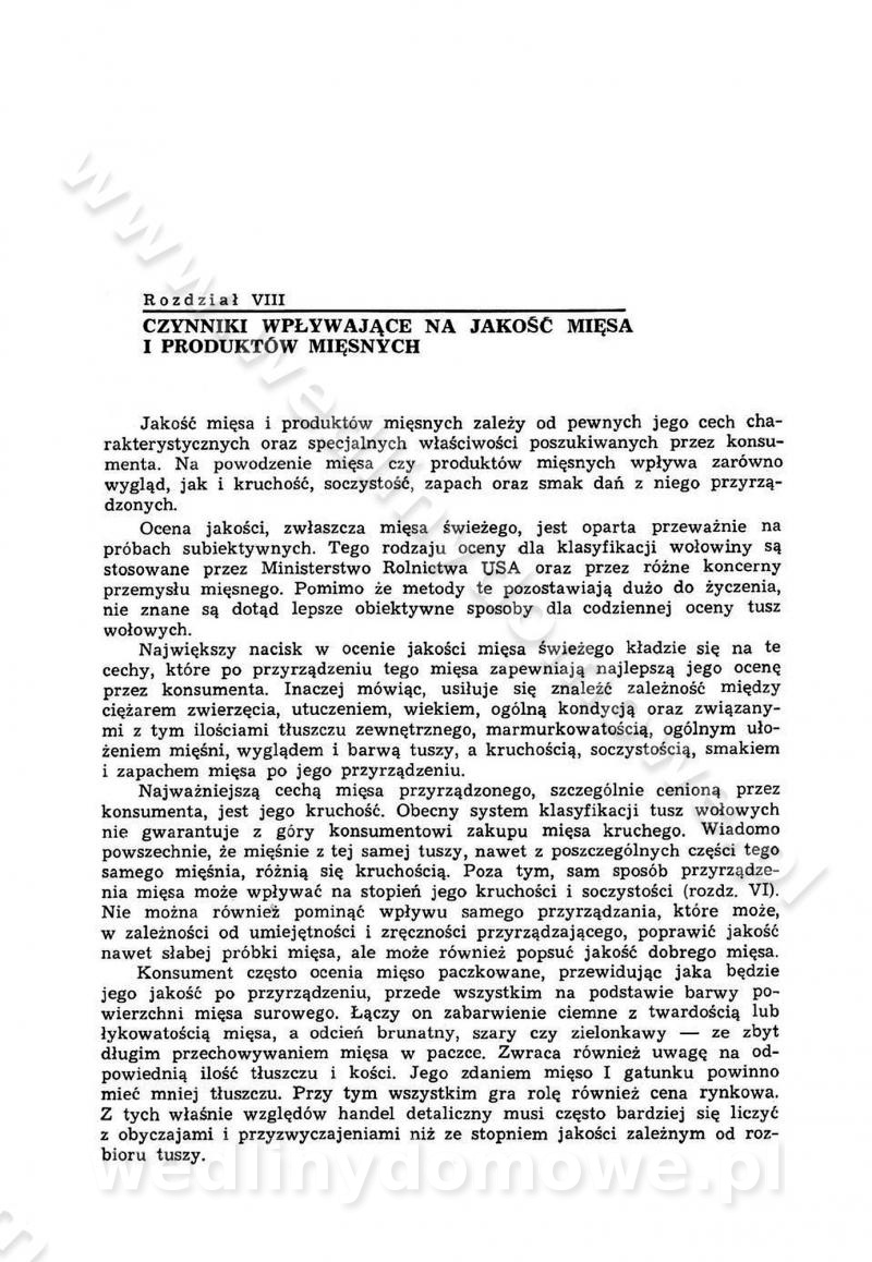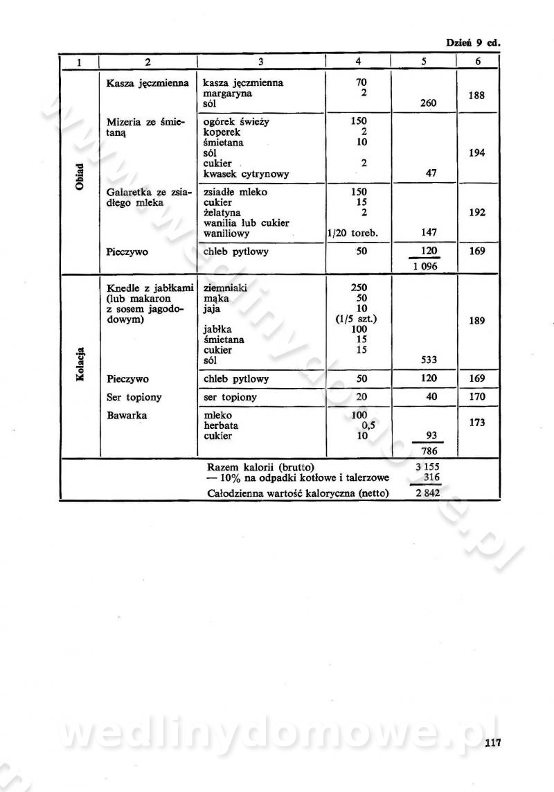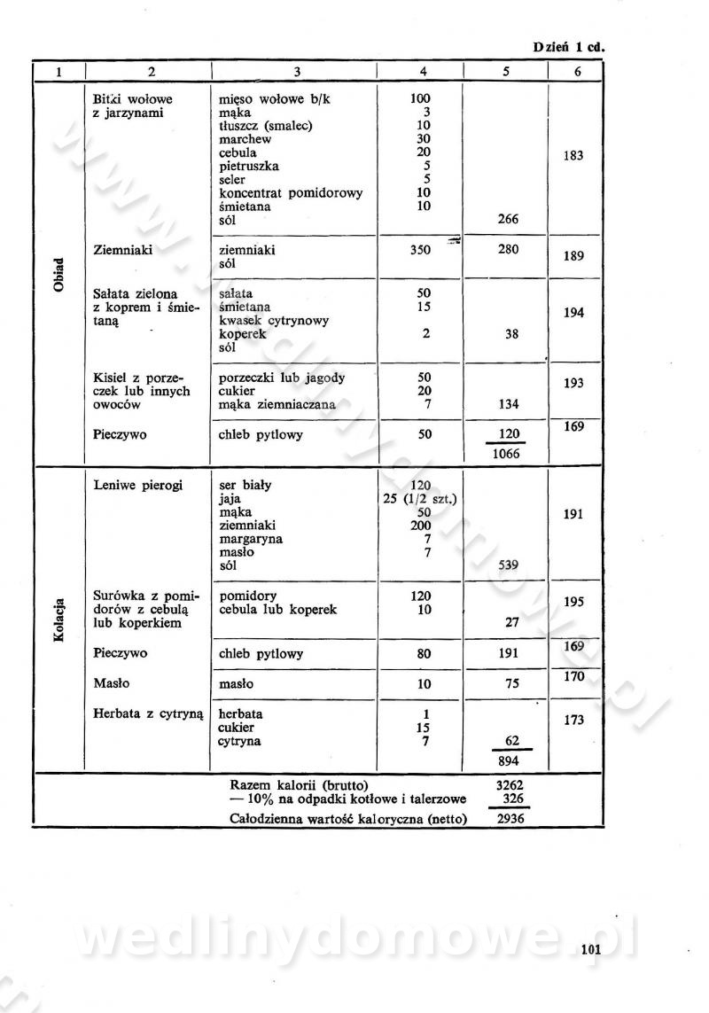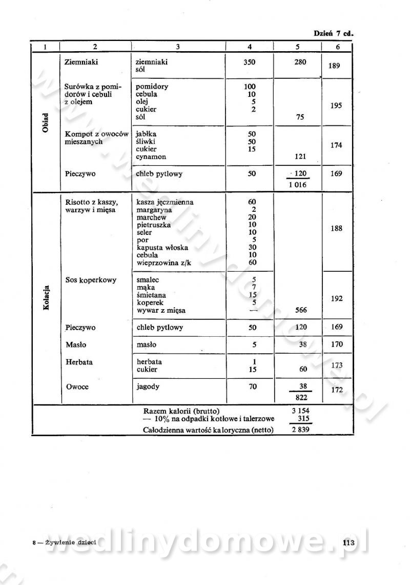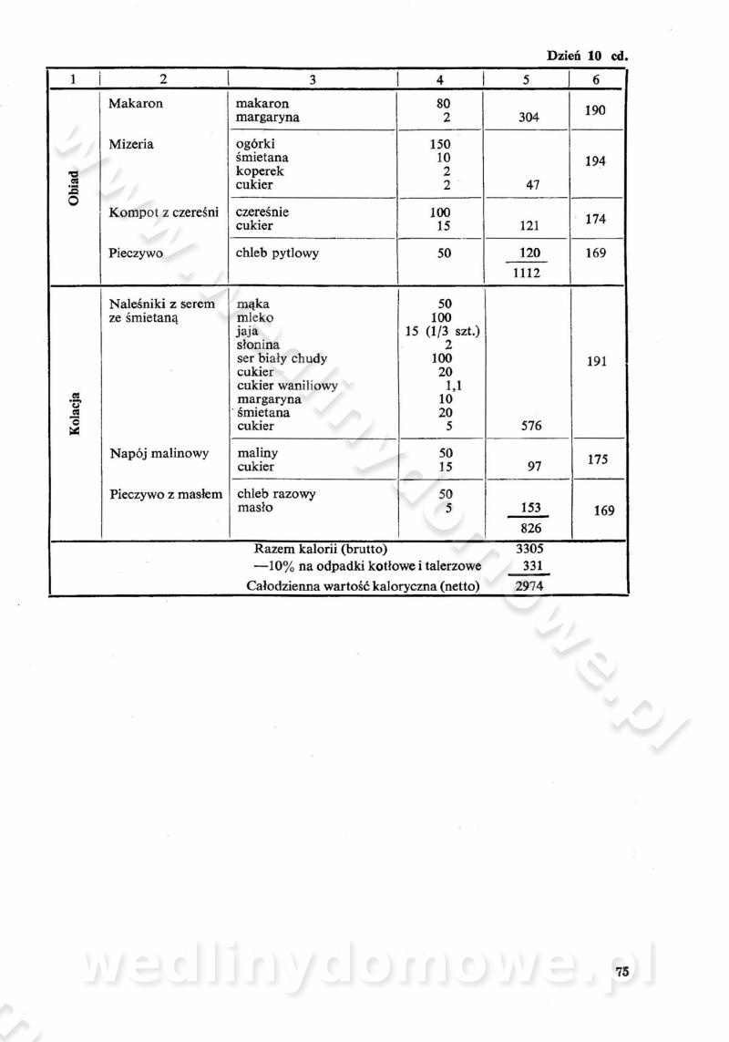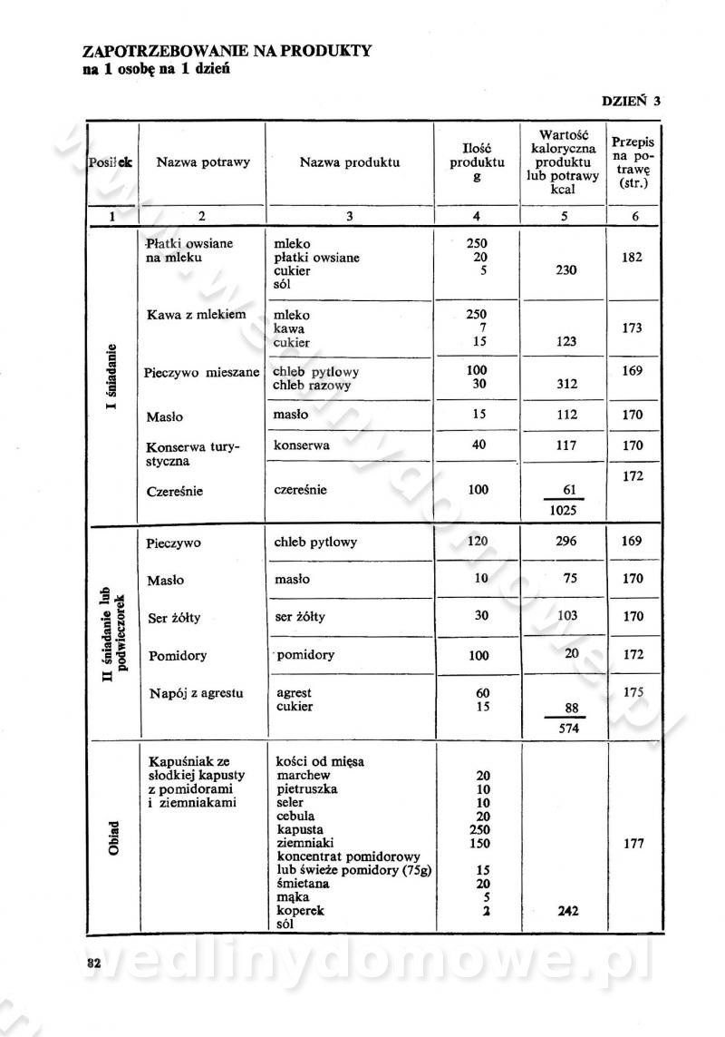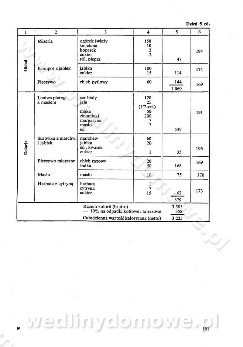 SPIS TREŚCI CZĘŚĆ I TEORETYCZNE PODSTAWY RACJONALNEGO ŻYWIENIA ZBIOROWEGO inż. Krystyna Wolf I. WSKAZÓWKI DO REALIZACJI NORM ŻYWIENIA WYRAŻONYCH W CAŁODZIENNYCH RACJACH POKARMOWYCH II. SKŁADNIKI POKARMOWE I ICH ROLA W ŻYWIENIU Zawartość składników pokarmowych w produktach Rola pożywienia Składniki pokarmowe Wzajemne zależności między składnikami pokarmowymi III. NORMY WYŻYWIENIA Normy zapotrzebowania na składniki pokarmowe Podział produktów Podział produktów na 2 grupy Podział produktów na 9 grup Podział produktów na 12 grup Całodzienne racje pokarmowe Zamiana produktów IV. WYTYCZNE PLANOWANIA ZESTAWU CAŁODZIENNYCH POSIŁKÓW Zasady podziału całodziennych racji pokarmowych na poszczególne posiłki Śniadanie Obiad Kolacja Wytyczne układania jadłospisów Kontrola prawidłowości planowania jadłospisów V. PROCESY TECHNOLOGICZNE, ICH CEL, PRZEBIEG I WPŁYW NA WARTOŚĆ ODŻYWCZĄ POTRAW Cel procesu technologicznego Obróbka wstępna i termiczna Ogólne wskazówki technologiczne Wykończanie potraw VI. WSKAZÓWKI PRAKTYCZNE DOTYCZĄCE KORZYSTANIA Z RECEPTUR CZĘŚĆ II RECEPTURY I. ZUPY inż. Jadwiga Celczyńska Podstawowe zasady sporządzania Sporządzanie wywarów Podział zup Przygotowanie głównych składników zup Wykończanie zup Rodzaje zup Zupy czyste Zupy zabielane Zupy zasmażane Zupy rozklejane Zupy mleczne Zupy owocowe Zupy z wkładką pełnowartościowego białka — samodzielne dania obiadowe lub kolacyjne Zupy czyste (normatyw surowcowy na 10 porcji) Zakwas burakowy na barszcz Zakwas na żur Barszcz burakowy czysty Barszcz czerwony czysty z zagęszczonego soku buraczanego Barszcz burakowy jarski Bulion jarski Rosół z wołowiny Zupa grzybowa czysta Zupa pomidorowa czysta Zupy rozklejane (normatyw surowcowy na 10 porcji) Krupnik na podrobach Krupnik zabielany Krupnik ze słoniną Krupnik z ryżu z jarzynami Zupa grochowa z pęczakiem Zupa grochowa z ziemniakami Zupa rumfordzka Zupa ziemniaczana z fasolą Zalewajka Zalewajka z kwaśnym mlekiem Żur z kiełbasą i boczkiem Żur na podrobach zabielany Zupy zasmażane (normatyw surowcowy na 10 porcji) Kapuśniak z kwaszonej kapusty z papryką Kapuśniak mazurski z kwaszonej kapusty Kapuśniak ze słodkiej kapusty Kapuśniak ze słodkiej kapusty z jabłkami Kapuśniak z czerwonej kapusty Zacierka z ziemniakami Zupa cebulowa Zupa z dyni i pomidorów Zupa fasolowa z makaronem Zupa fasolowa z ziemniakami Zupa z flaków wołowych Zupa „garbure” Zupa grzybowa Zupa jarzynowa z papryką Zupa jarzynowa z fasolą Zupa jarzynowa (jesienna) Zupa jarzynowa z makaronem i serem Zupa z kaszy manny zasmażana Zupa neapolitańska Zupa pomidorowa zasmażana Zupa z porów Zupa z selerów Zupa ziemniaczana zasmażana Zupa ziemniaczana z pomidorami Zupy mleczne (normatyw surowcowy na 10 porcji) Kukurydzanka na mleku Manna na mleku Ryż na mleku Makaron na mleku Płatki owsiane na mleku Zupa z dyni na mleku z tartym ciastem Zupa „nic” Zupa mleczna z lanym ciastem Zupa ze zsiadłego mleka Zupy zabielane (normatyw surowcowy na 10 porcji) Barszcz czerwony zabielany Barszcz czerwony zabielany z suszu Barszcz ukraiński Barszcz czeski Barszcz z botwiną Barszcz jarski z botwiną Chłodnik z botwiną Chłodnik z botwiną na mleku Kapuśniak ze słodkiej kapusty zabielany Kapuśniak na głowiźnie Zupa z brukselki zabielana Zupa cytrynowa Zupa z fasolki szparagowej Zupa grzybowa zabielana Zupa kalafiorowa Zupa koperkowa Zupa ogórkowa Zupa pomidorowa Zupa rybna Zupa szczawiowa Zupa pieczarkowa Zupa ze szpinaku Zupa z młodych jarzyn zabielana Zupa jarzynowa zabielana z mrożonek Zupa ziemniaczana „Paysanne” Pejzanka z puree ziemniaczanym Zupa z młodych ziemniaków Zupa ziemniaczana z porami Zupa z zielonego groszku Zupy owocowe (normatyw surowcowy na 10 porcji) Chłodnik z czarnych jagód Chłodnik truskawkowy Zupa z czarnych jagód Zupa jabłkowa Zupa jabłkowa zabielana Zupa z jabłek i śliwek Zupa ze śliwek Zupa z owoców mieszanych Zupa owocowa z suszu jabłkowego i marmolady Zupa owocowa czysta Zupa z powideł śliwkowych Zupa rabarbarowa Zupa z suszonych śliwek Zupa truskawkowa Zupa z truskawek i rabarbaru Zupy z wkładką mięsną (normatyw surowcowy na 10 porcji) Barszcz małorosyjski na rosole z mięsem Barszcz z ziemniakami i serdelkami Grochówka z mięsem i ziemniakami Kapuśniak z kwaszonej kapusty z kiełbasą Kapuśniak ze słodkiej kapusty z pomidorami i mięsem Krupnik z ryżu na mięsie Krupnik na mięsie Pejzanka na żeberkach Zupa z fasolki szparagowej na mięsie Zupa fasolowa z mięsem i makaronem Zupa jarzynowa z mięsem Gulaszowa polewka Zupa koperkowa na mięsie Zupa ogórkowa z ziemniakami na mięsie Zupa pomidorowa z makaronem i mięsem Zupa z porów z ziemniakami i wątróbką Zupa wiosenna z jajami Zupa ziemniaczana z mięsem Żur z kiełbasą i ziemniakami II. POTRAWY MIĘSNE inż. Krystyna Wolf Podstawowe zasady sporządzania Zachowanie wartości odżywczej dań mięsnych Cechy prawidłowo przyrządzonego mięsa Przechowywanie Rozmrażanie mięsa Rozbiór tuszy zwierząt rzeźnych Obróbka wstępna Obróbka termiczna Potrawy z baraniny (normatyw surowcowy na 10 porcji) Potrawka z baraniny Kotlet barani mielony Kotlet barani mielony z ryżem Baranina w warzywach Ragout baranie Baranina duszona Potrawy z cielęciny (normatyw surowcowy na 10 porcji) Potrawka cielęca Pulpety cielęce Kotlet cielęcy mielony Klopsiki cielęce do sosów Sznycel cielęcy (mielony) Filet cielęcy (do sosów i dodatków) Zrazy cielęce bite (do sosów) Zrazy cielęce nadziewane słoniną Sznycel cielęcy Zrazy cielęce po polsku (faszerowane) Paprykarz cielęcy Pieczeń cielęca duszona Pieczeń cielęca Mostek cielęcy po wiedeńsku Mostek cielęcy faszerowany Rolada cielęca faszerowana Potrawy z wieprzowiny (normatyw surowcowy na 10 porcji) Mięso wieprzowe gotowane Peklówka wieprzowa gotowana Filet wieprzowy saute Kotlet wieprzowy mielony Zraz wieprzowy (klopsik) mielony do sosów Kotlet miel